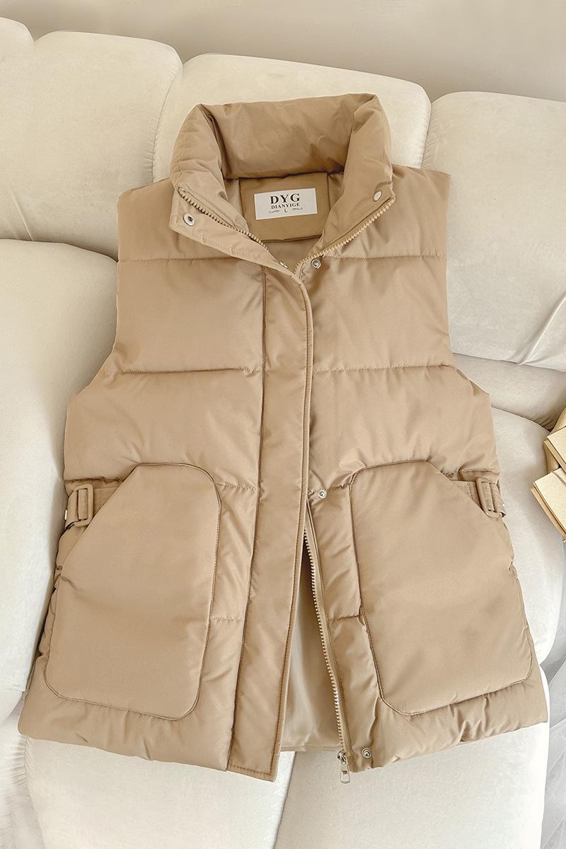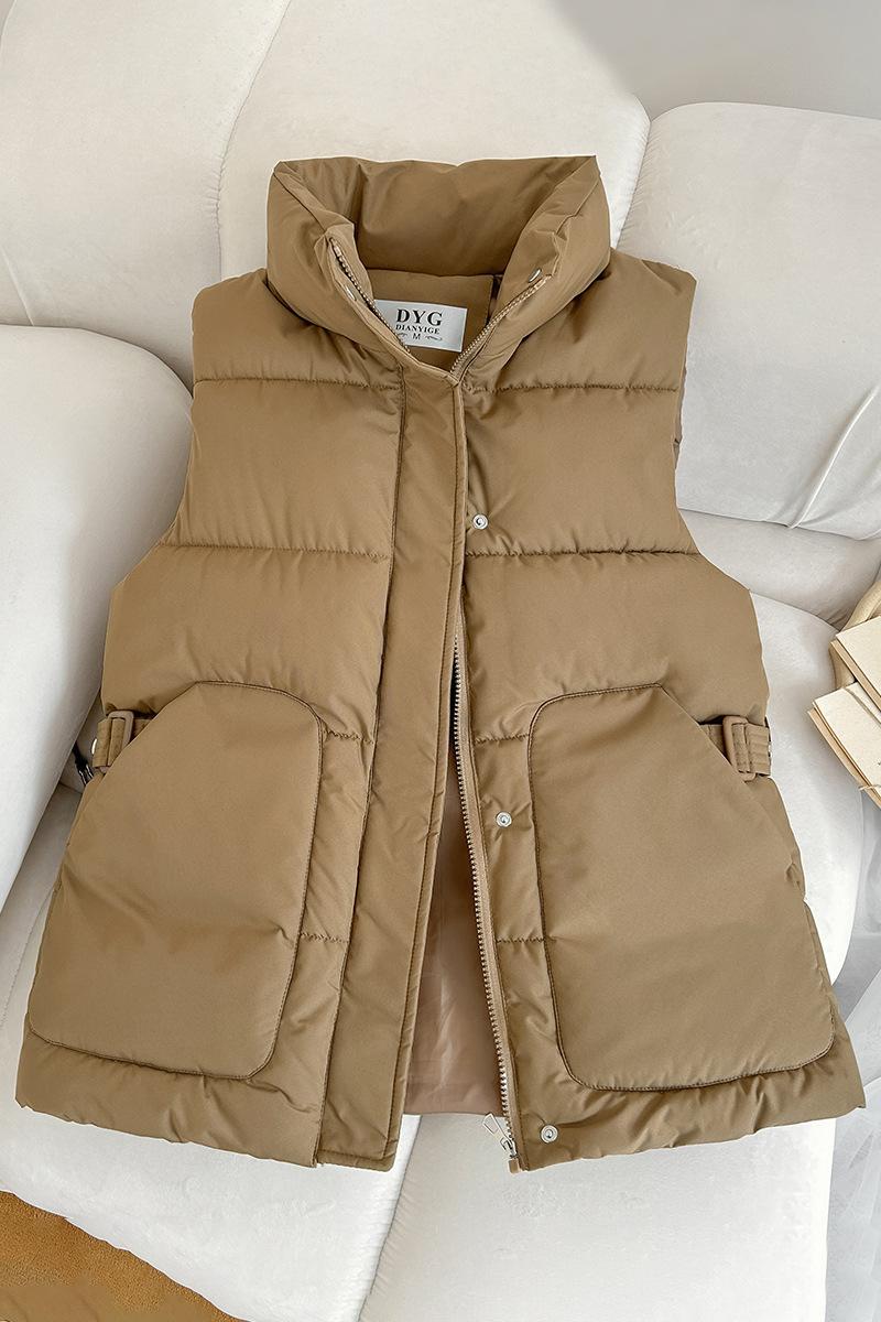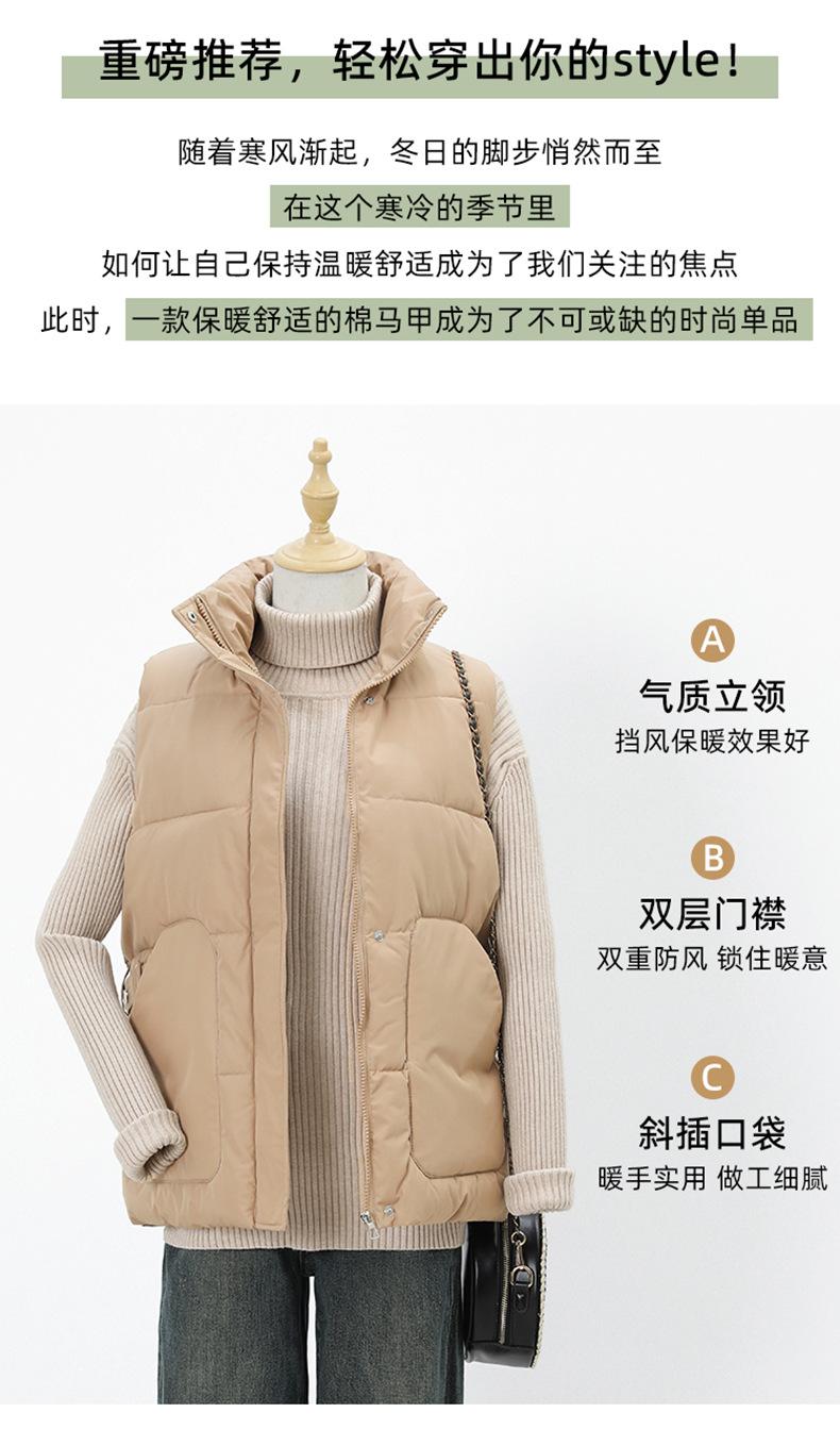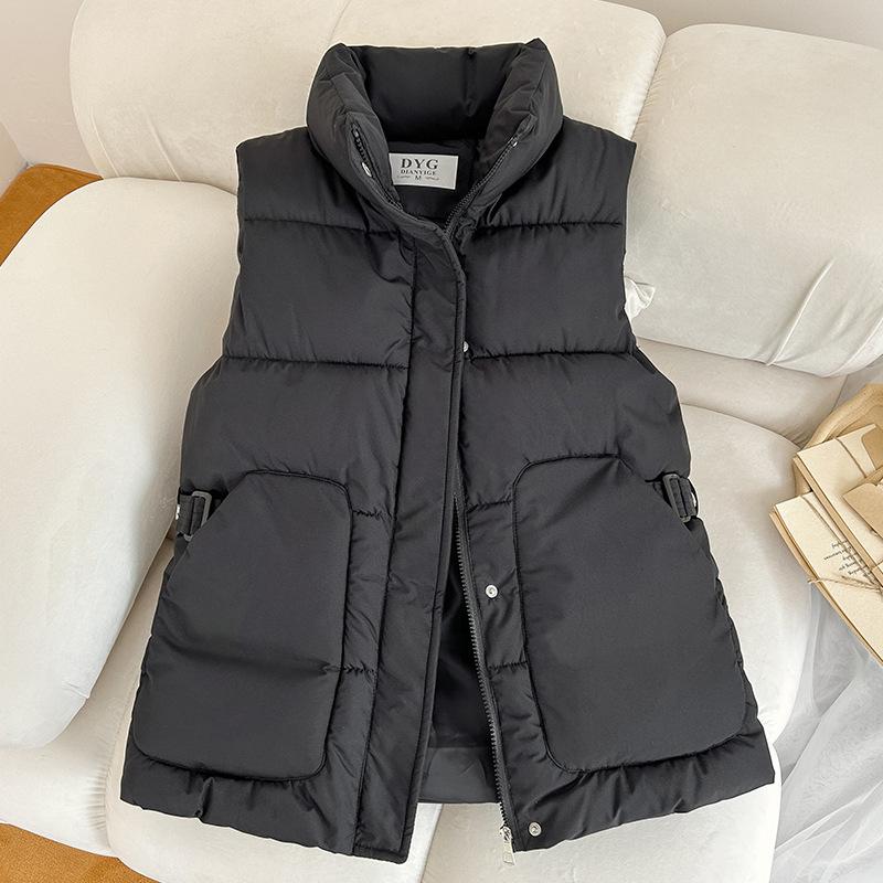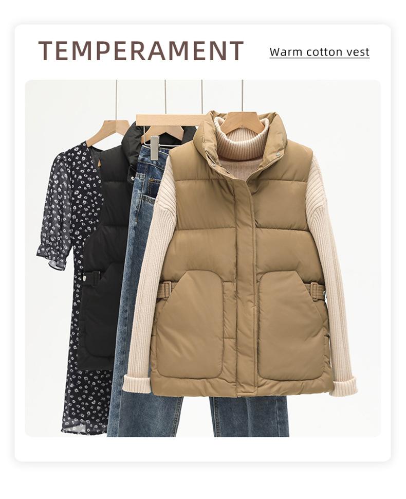 Chaleco de Algodón para Mujer 2025 Otoño e Invierno Nuevo Estilo Coreano Cuello Alto Holgado Ropa Exterior sin Mangas Ropa de Algodón Chaleco de Algodón Chaleco Trendy