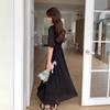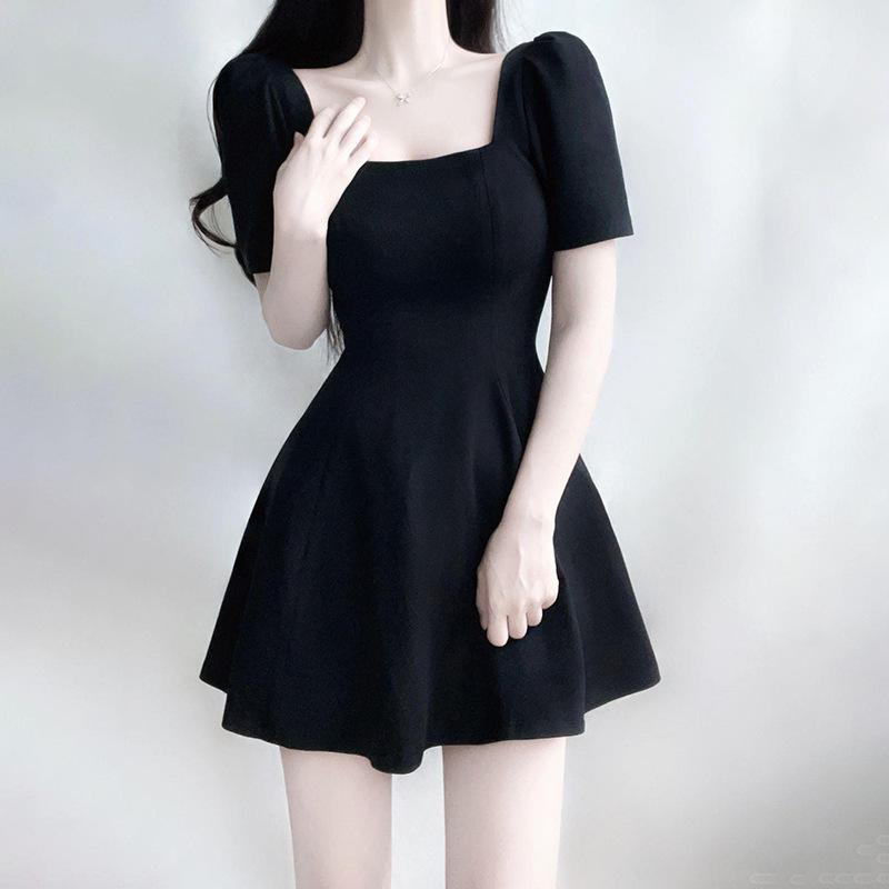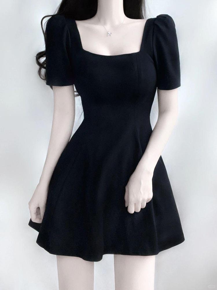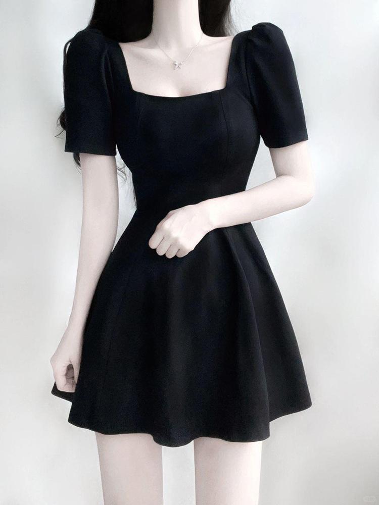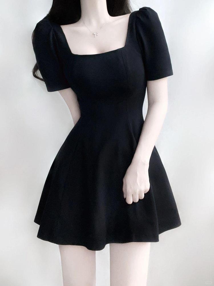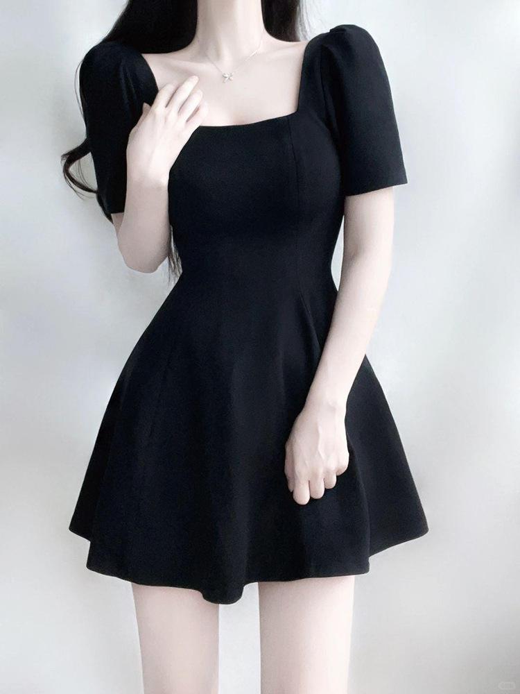 Vestido estilo Hepburn con cuello cuadrado negro para mujer, novedad de verano de 2024, falda negra pequeña elegante y adelgazante francesa.