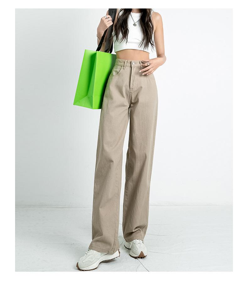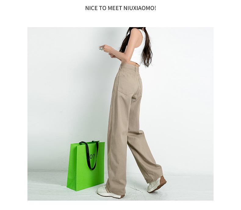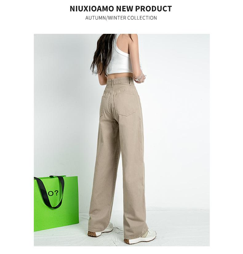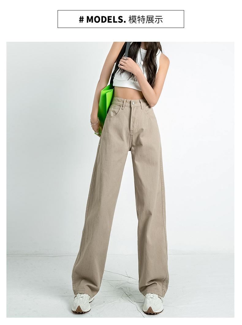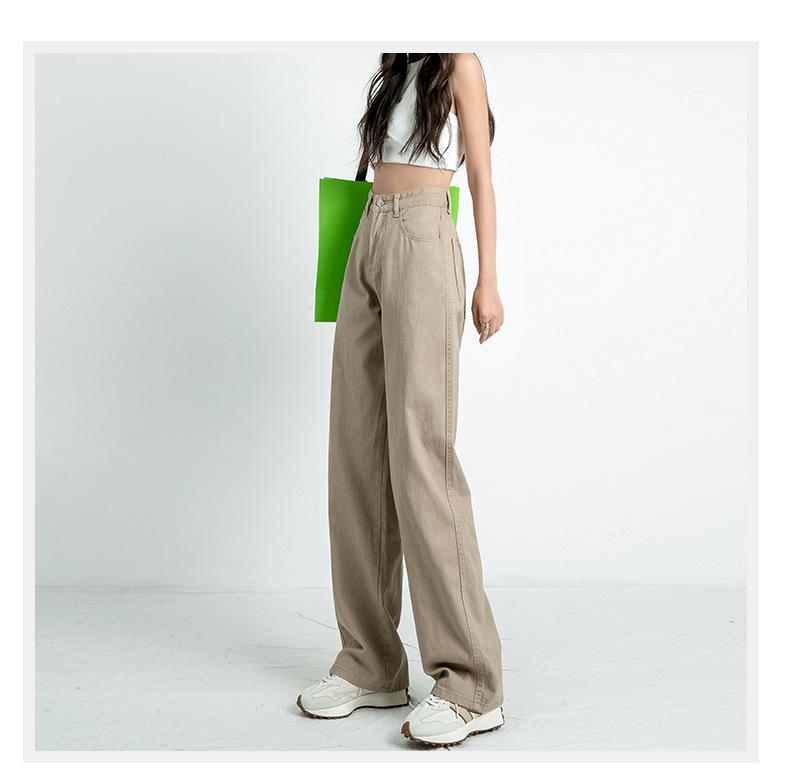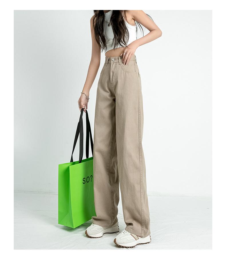 Pantalones vaqueros anchos de color caqui para mujer, rectos, holgados, de primavera, de cintura alta, para adelgazar, para hombres pequeños.