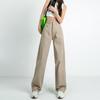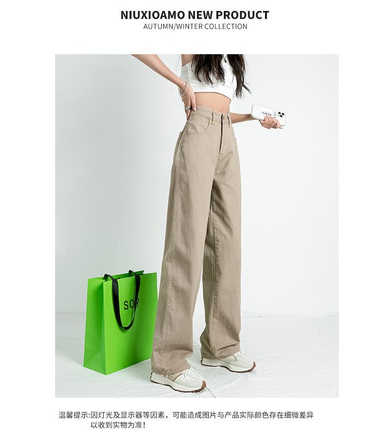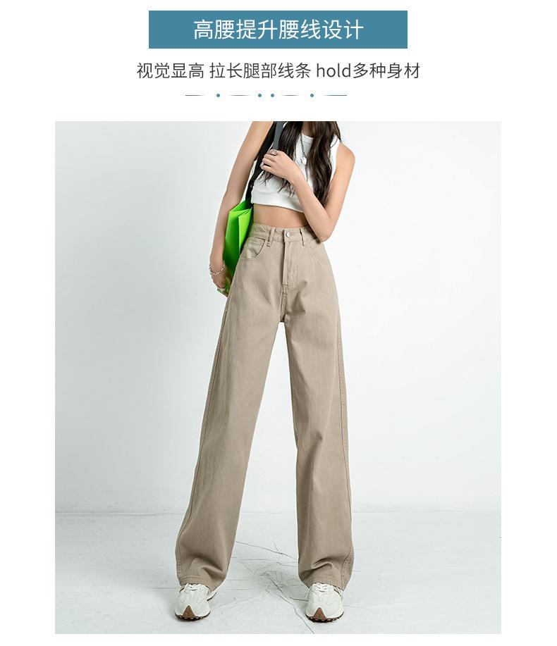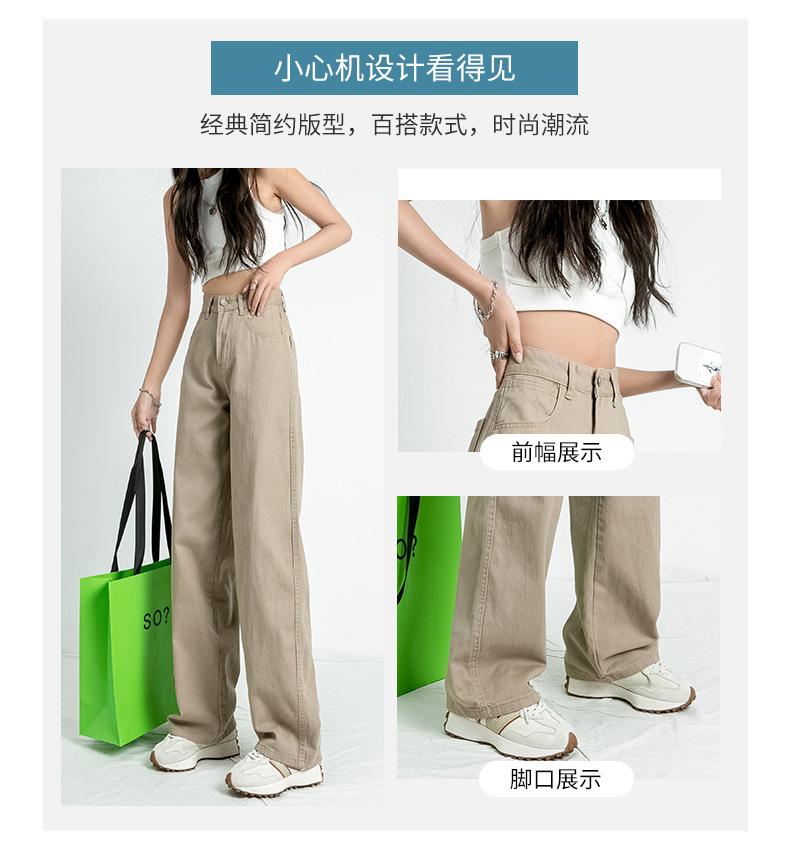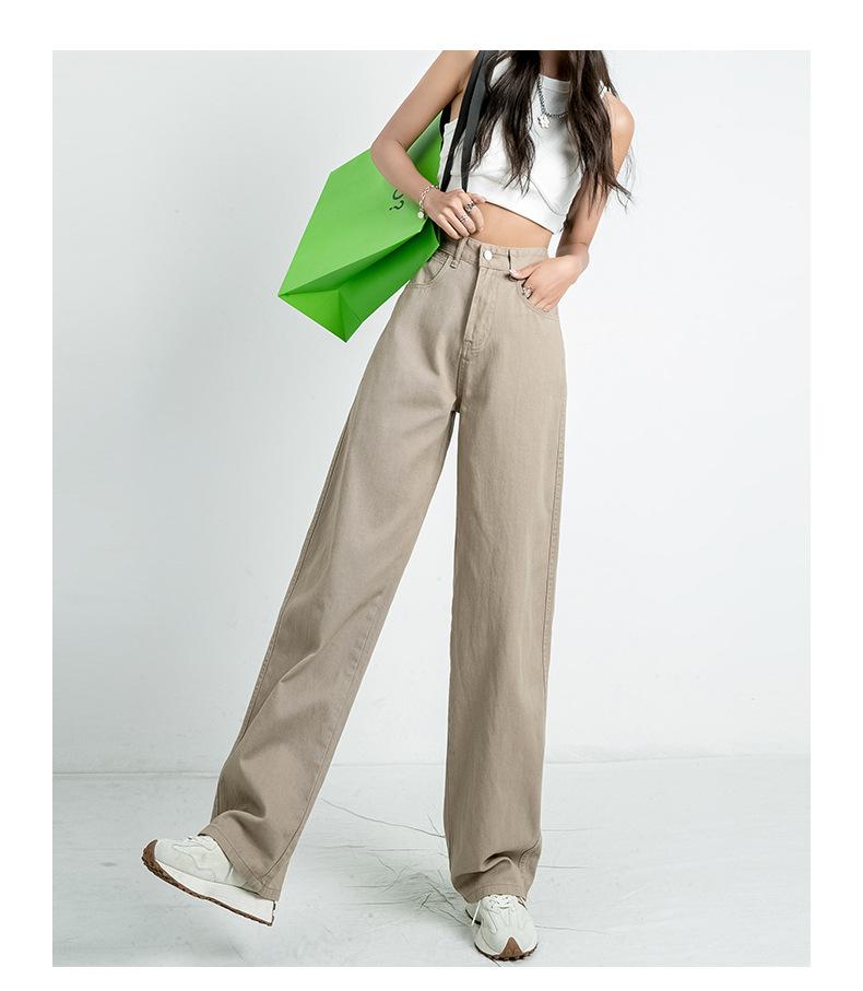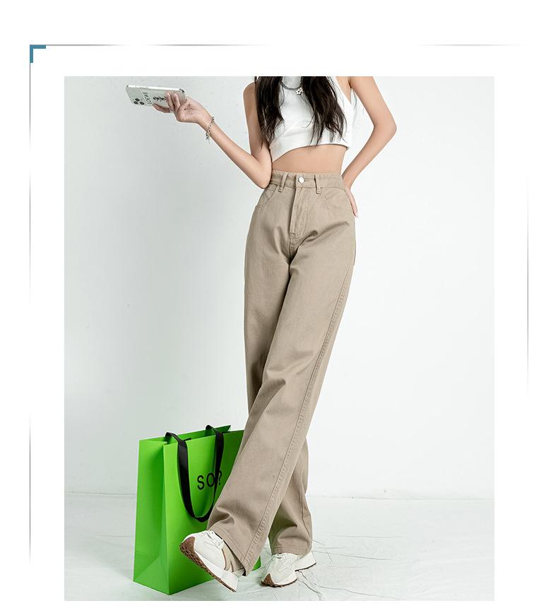 Pantalones vaqueros anchos de color caqui para mujer, rectos, holgados, de primavera, de cintura alta, para adelgazar, para hombres pequeños.