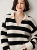 Suéter holgado de lana de cachemira con cuello polo a rayas para mujer, otoño e invierno 2024