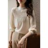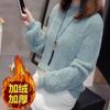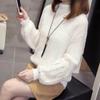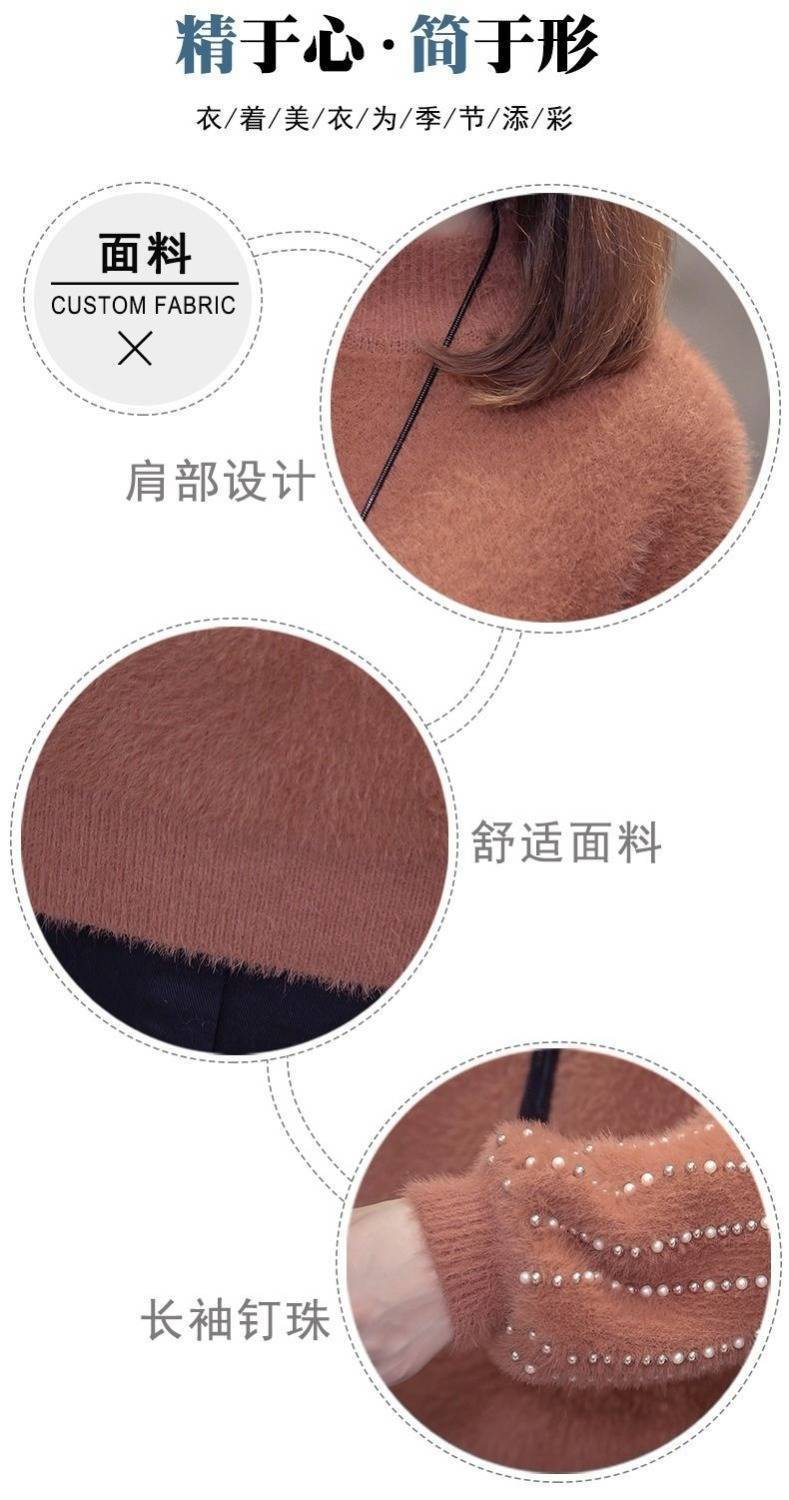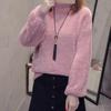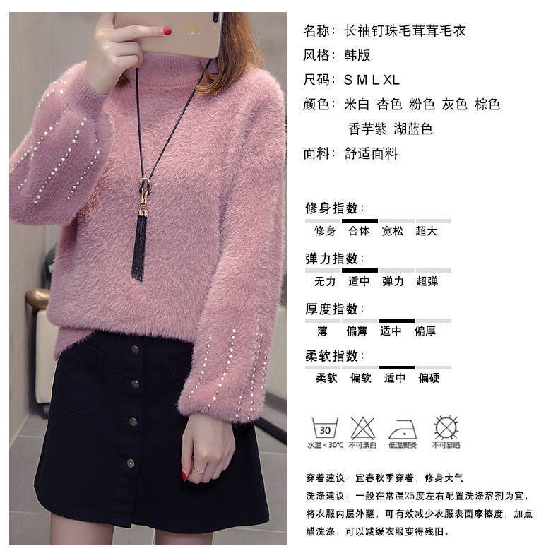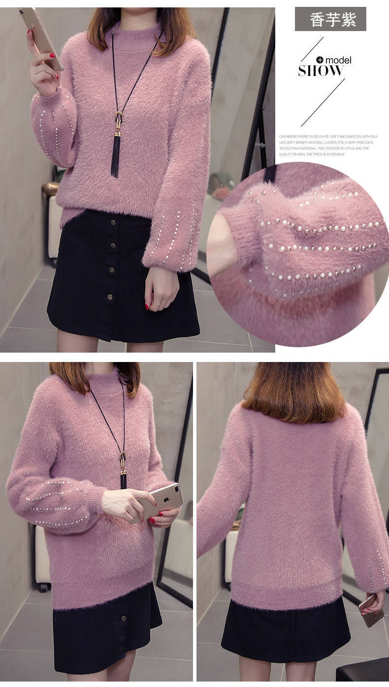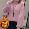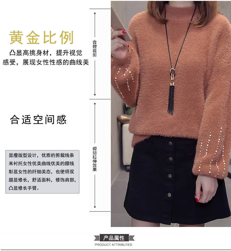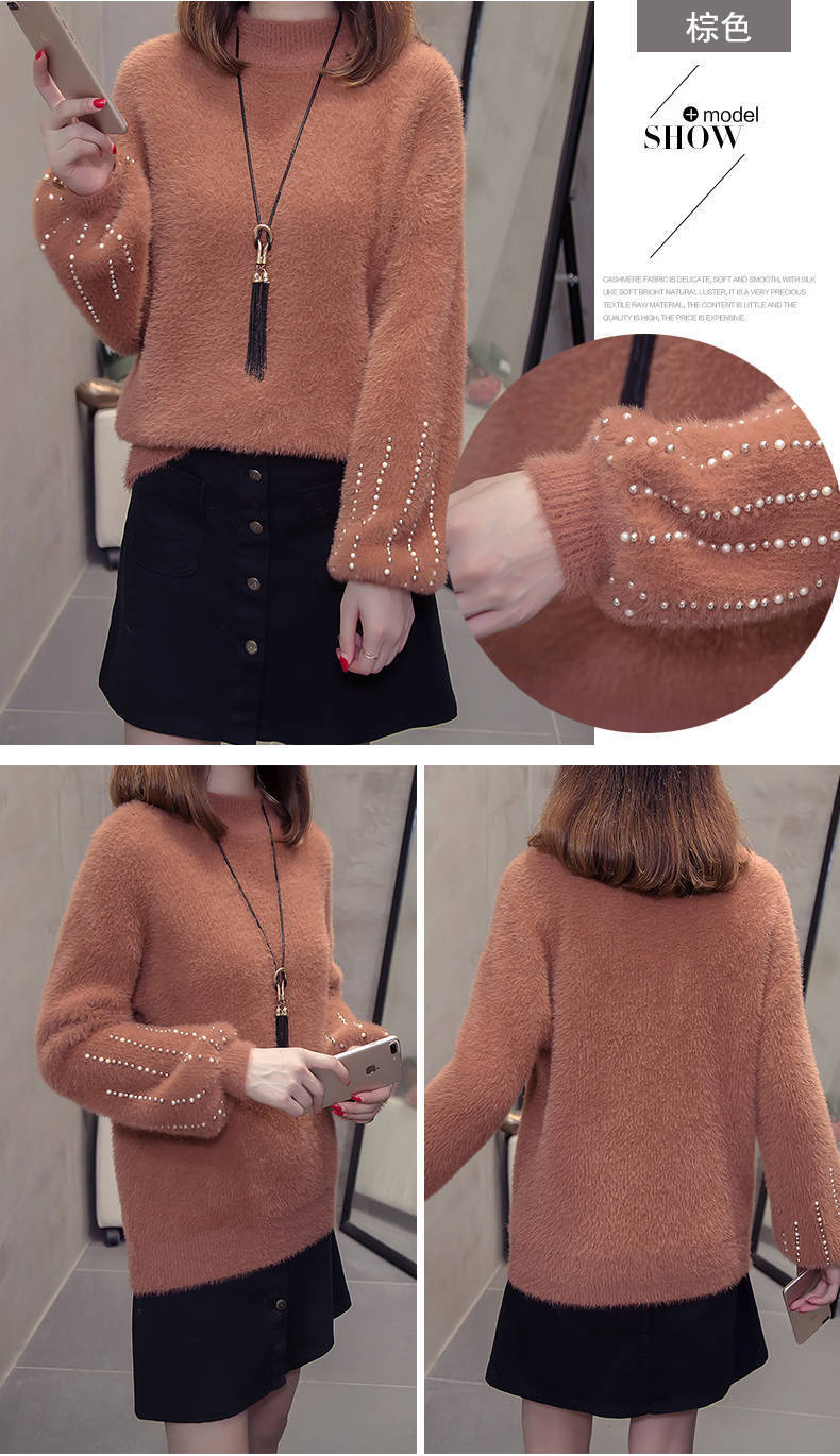 Suéter de Otoño e Invierno de Terciopelo de Visón Imitación Blanco para Mujer Estilo Coreano Holgado Manga Farol Color Base Camisa Suéter Grueso con Cuentas