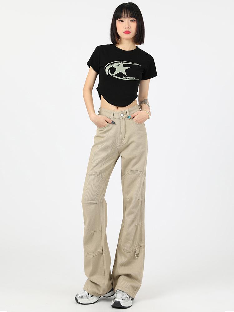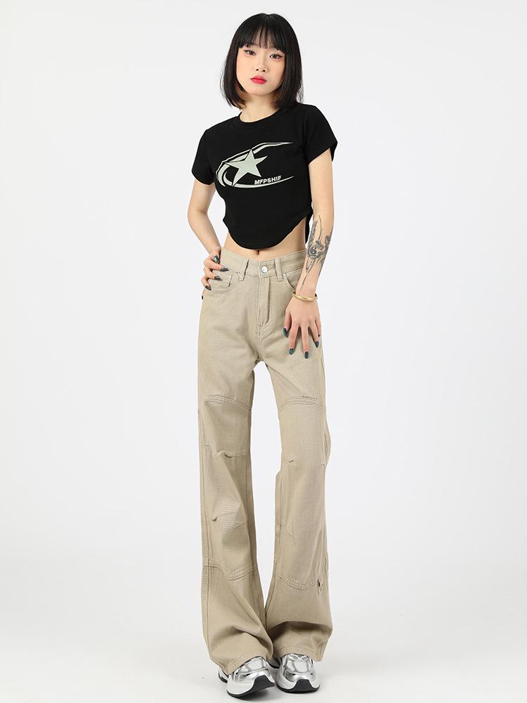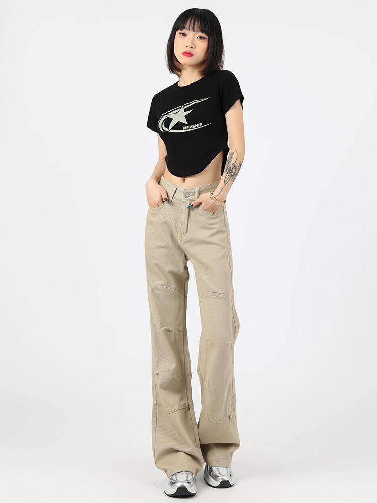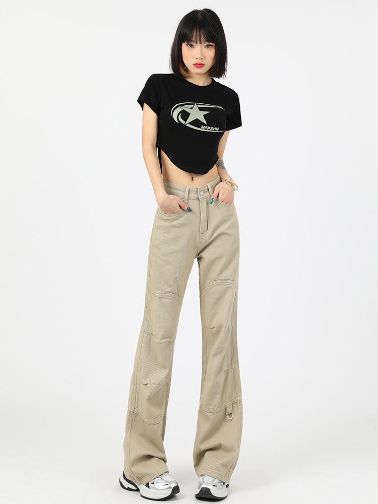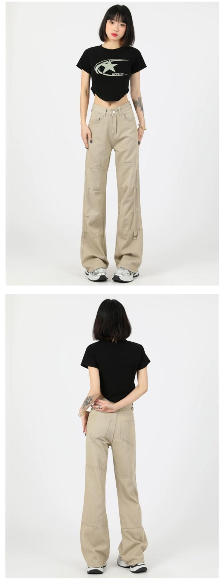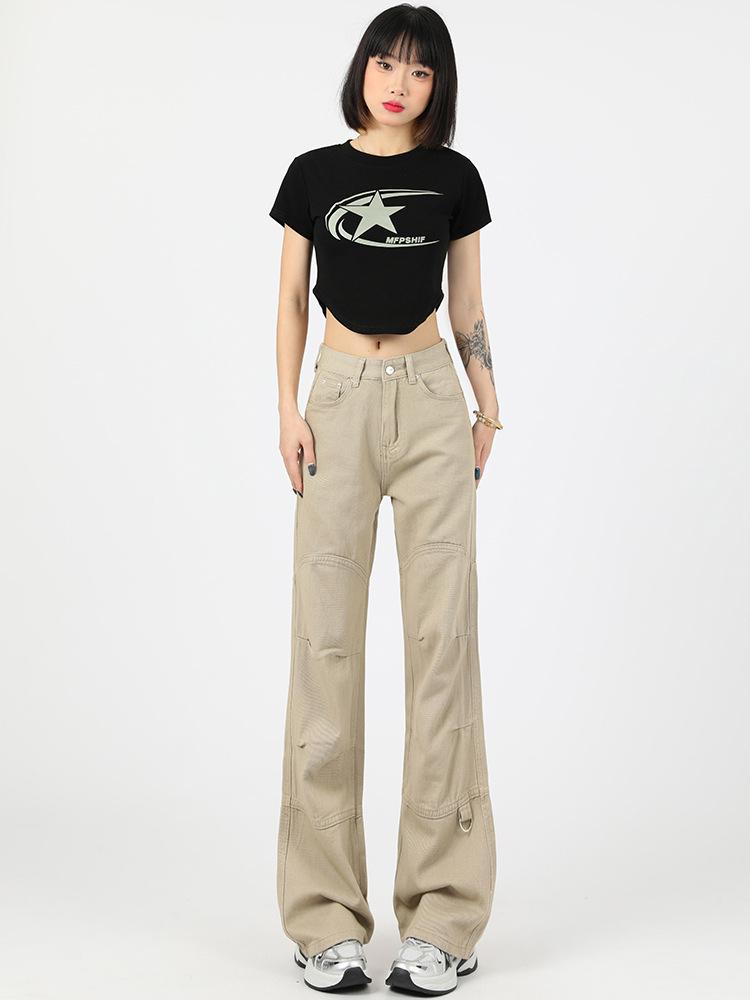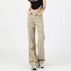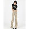 Otoño 2024 Nuevo estilo americano, pantalones casuales de trabajo de color caqui de cintura alta para mujer, vaqueros ajustados que combinan con todo, a la moda