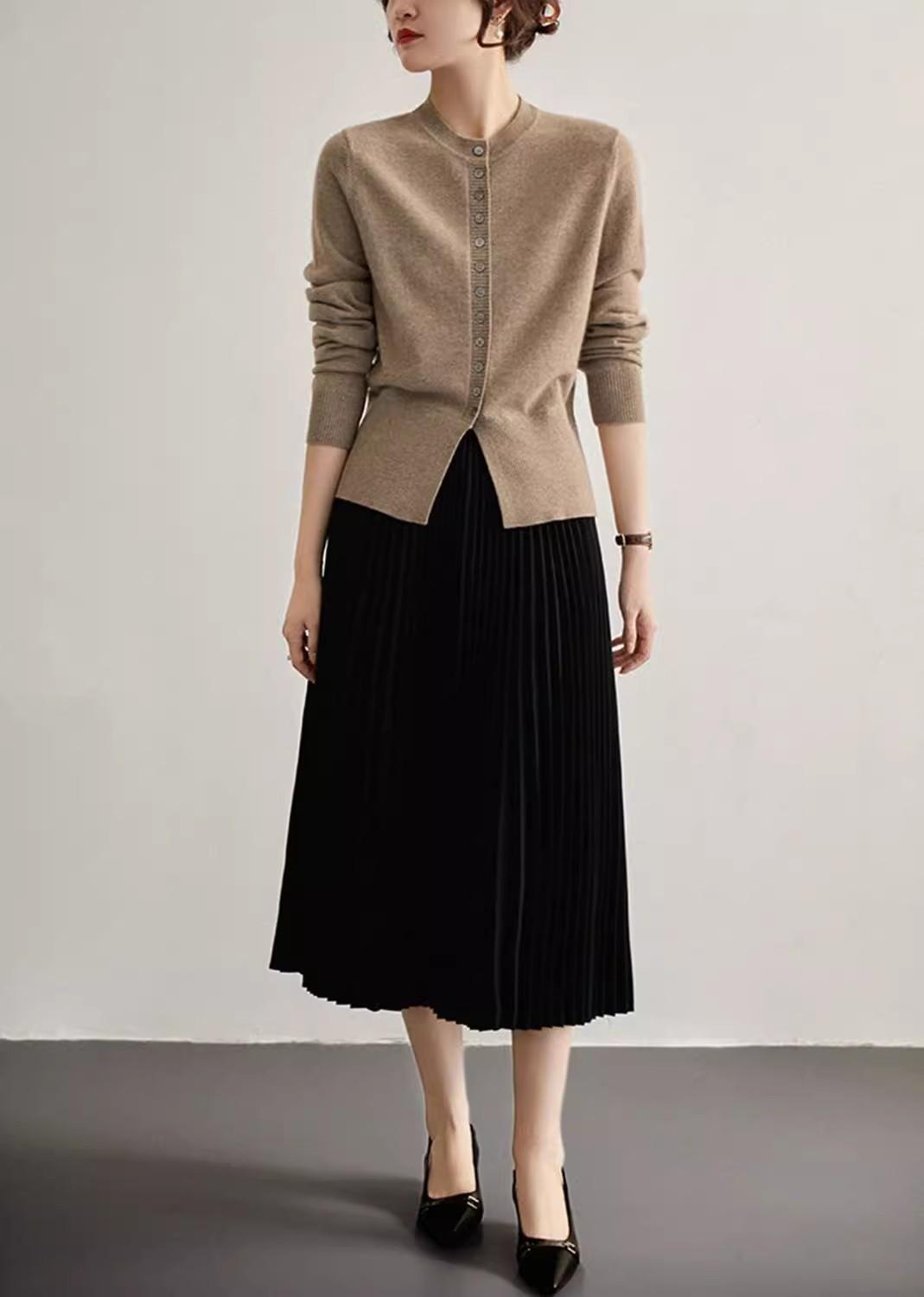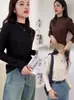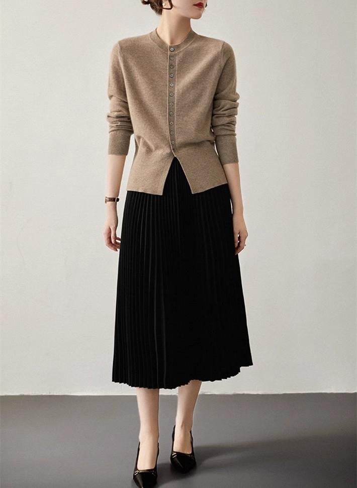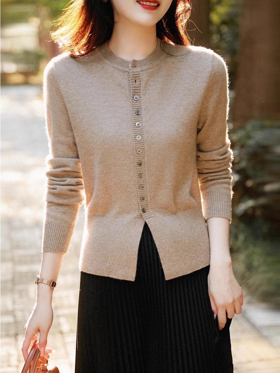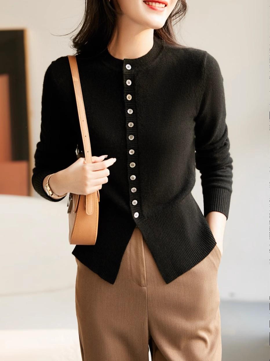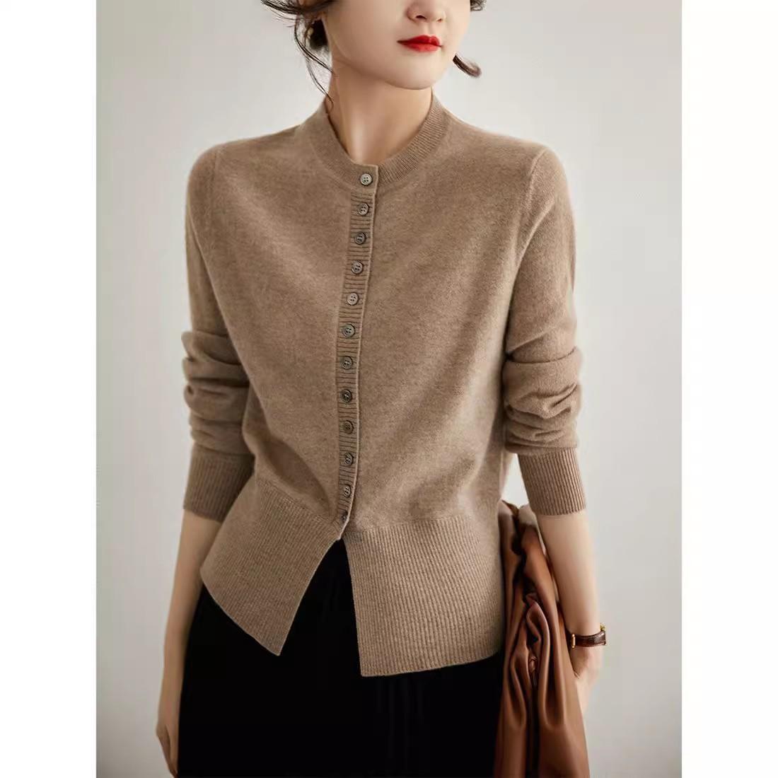 Suéter de cachemira adelgazante de corte entallado para otoño e invierno de 2024, cárdigan de punto de manga larga con parte superior corta para mujer
