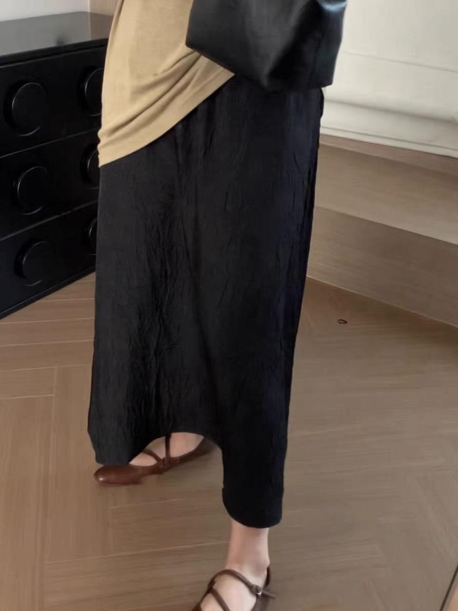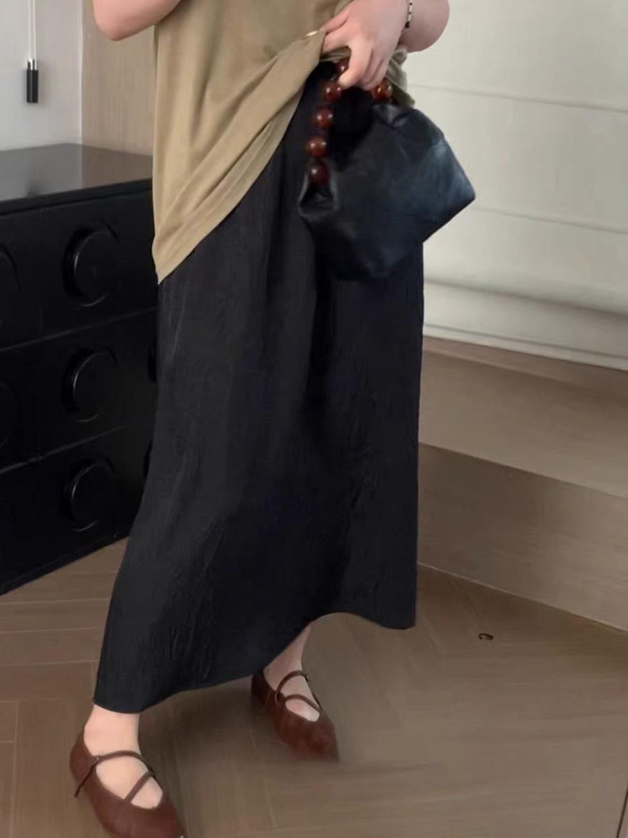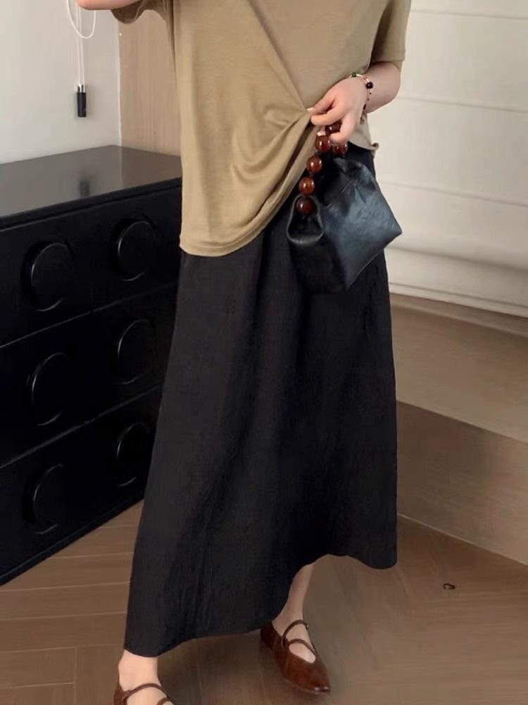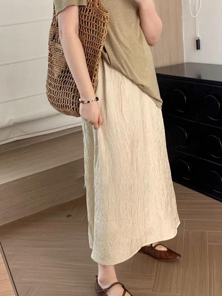 Falda drapeada elástica estilo coreano con textura plisada para mujer, verano, nueva moda, elegante, cintura alta, adelgazante, falda larga
