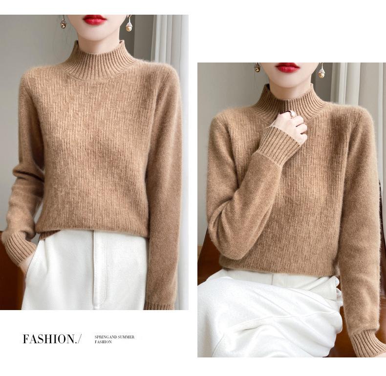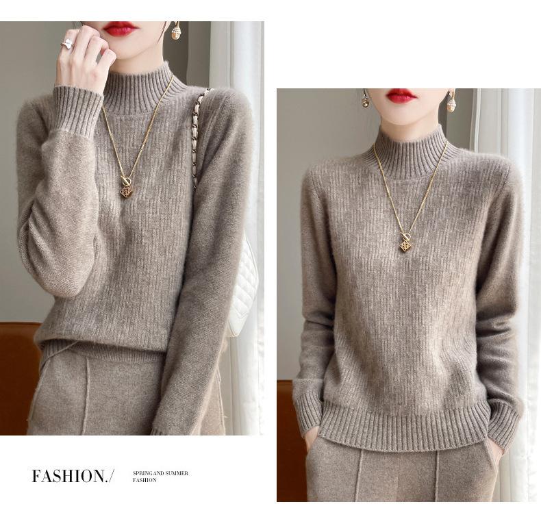 Suéter de cuello alto medio de otoño e invierno con nueva base de suéter grueso, camisa de temperamento, suéter de estilo extranjero al por mayor
