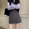 Falda Corta Gris Estilo Coreano para Mujer 2024 Nuevo Traje de Primavera y Verano Pequeña Cintura Alta Look Adelgazante Falda Línea A