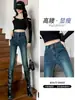 Jeans de Mujer de Cintura Alta Ajustados 2024 Primavera y Otoño con Terciopelo Adelgazantes Elásticos Cubre Cadera Casual Más Fácil de Combinar Pies Pequeños Dirigen