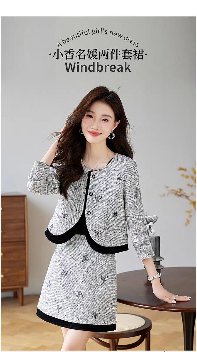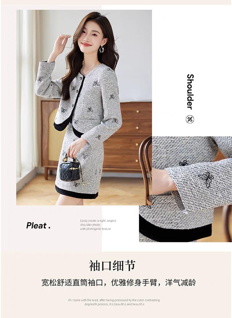 Falda de abrigo estilo Xiaoxiang, ropa de mujer de dos piezas, otoño 2024, nuevo temperamento, traje de estilo extranjero de alta sociedad