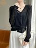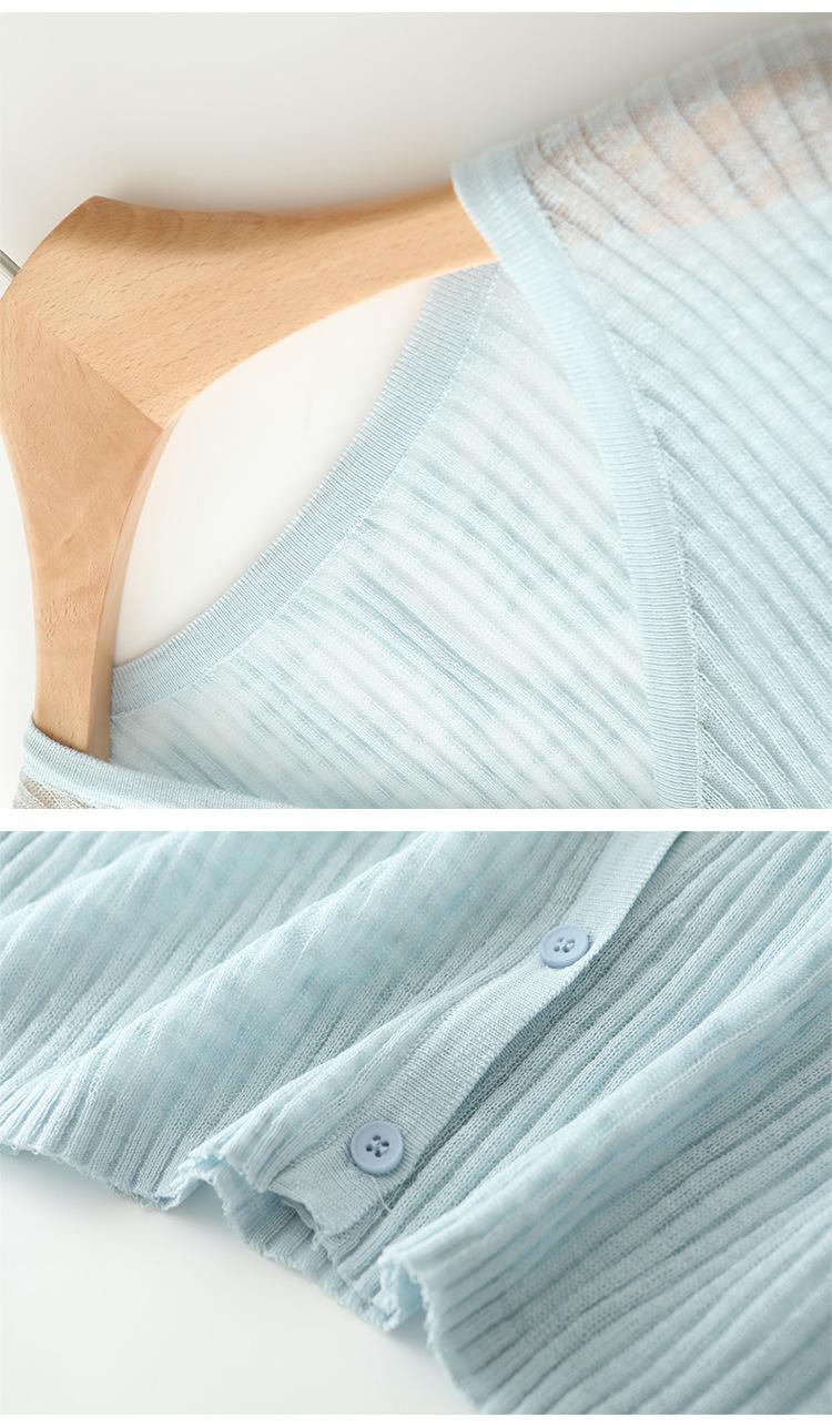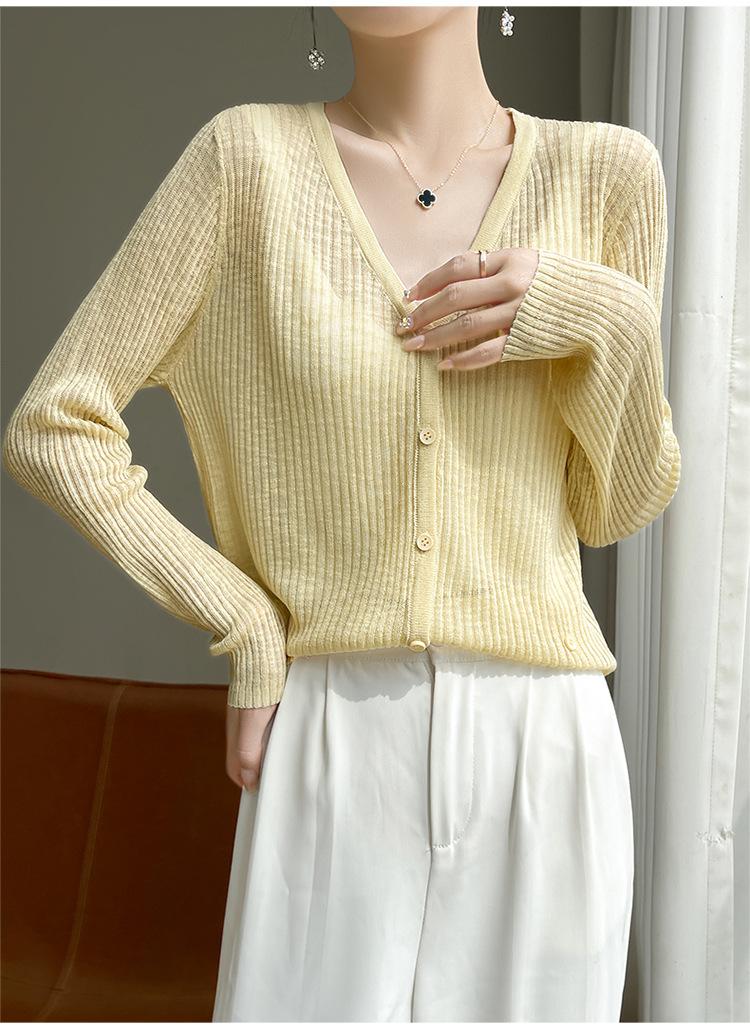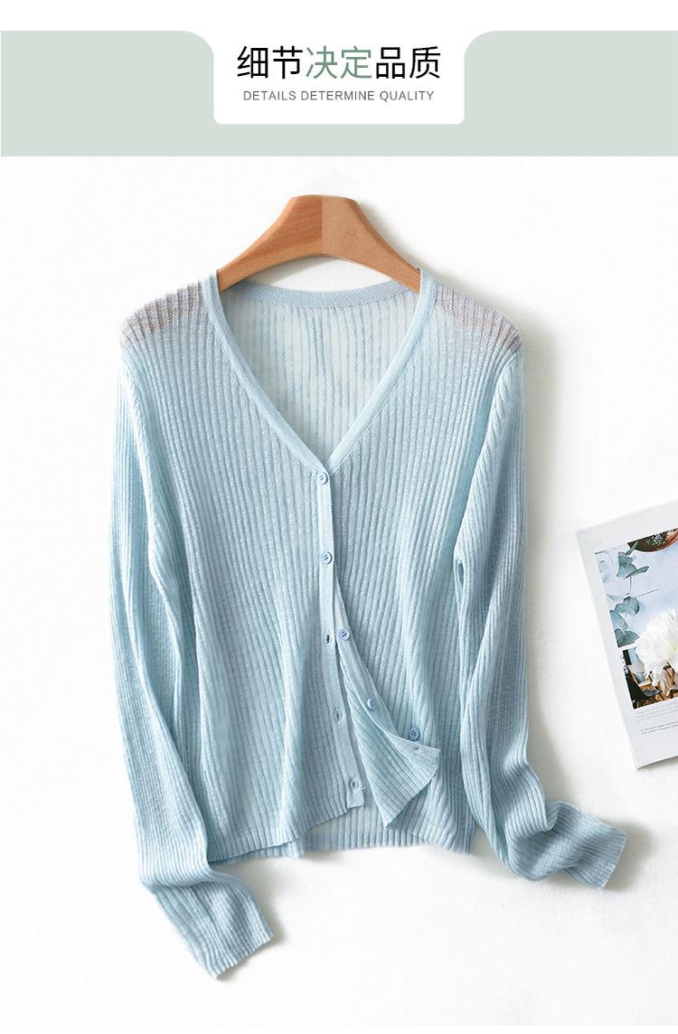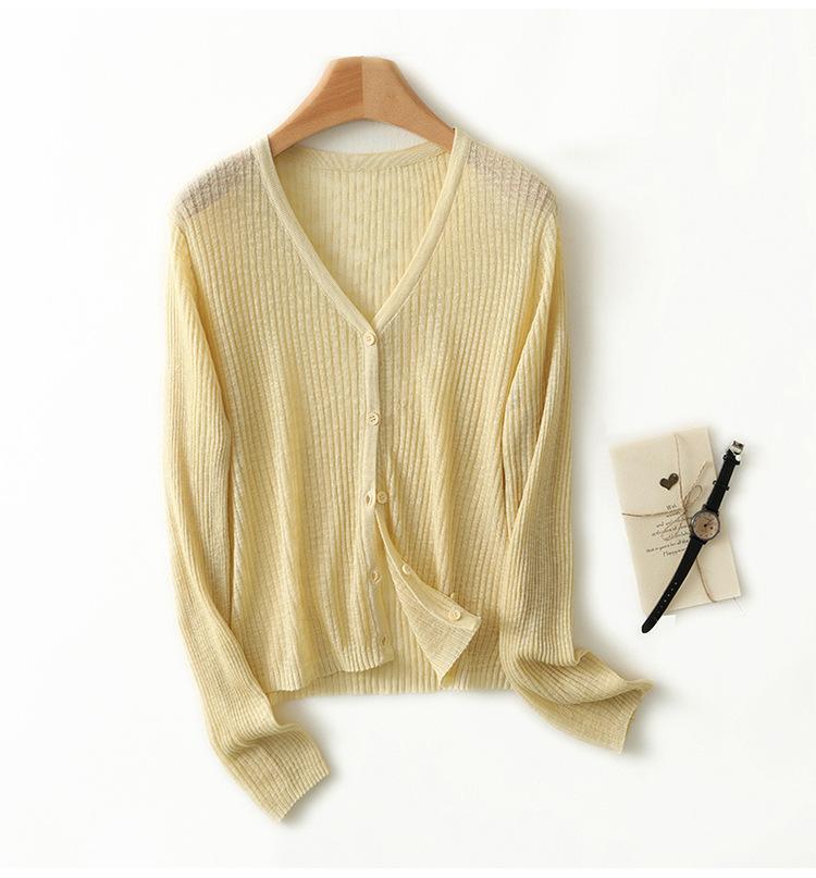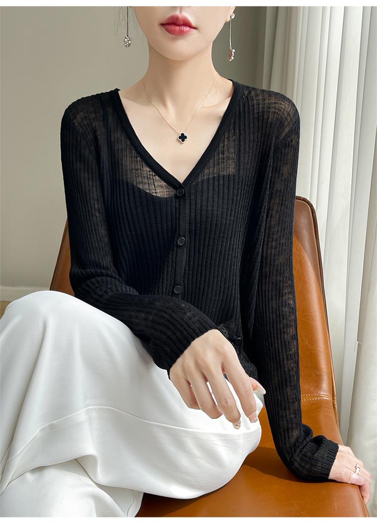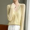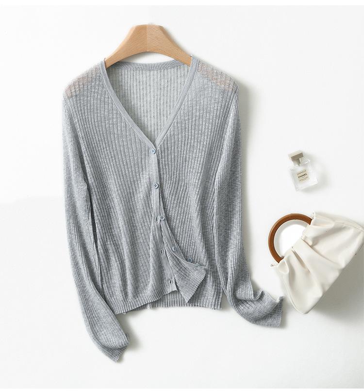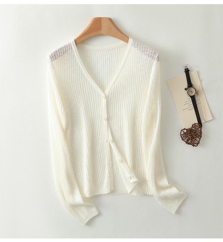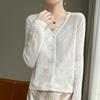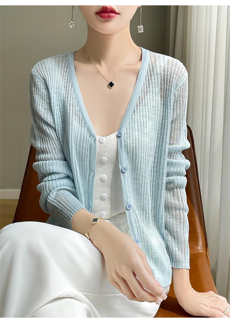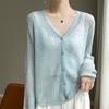 Cárdigan de punto con cuello en V para mujer, chaqueta de manga larga, camisa con aire acondicionado, blusa holgada y fina con protección solar, novedad de verano