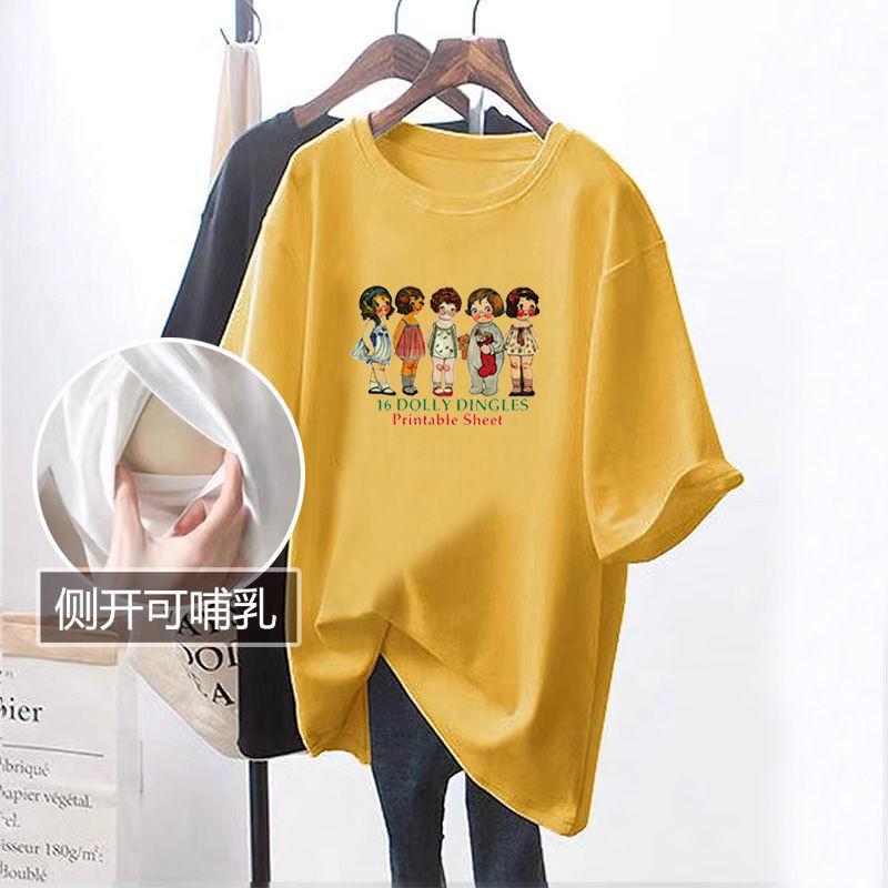 Top de lactancia de verano, top de lactancia posparto, ropa de lactancia, prenda exterior adelgazante de moda, manga corta, abertura lateral.