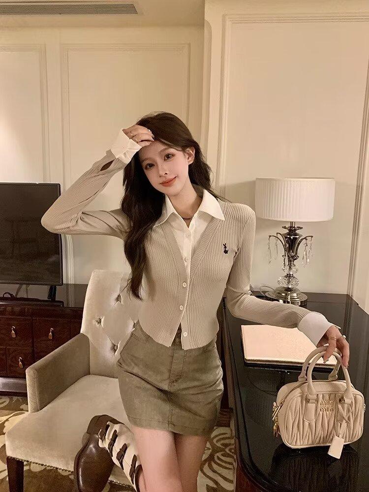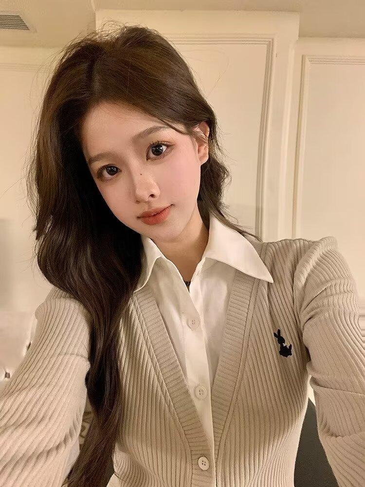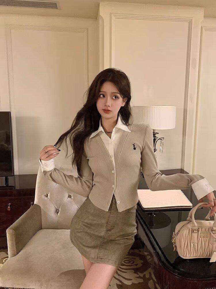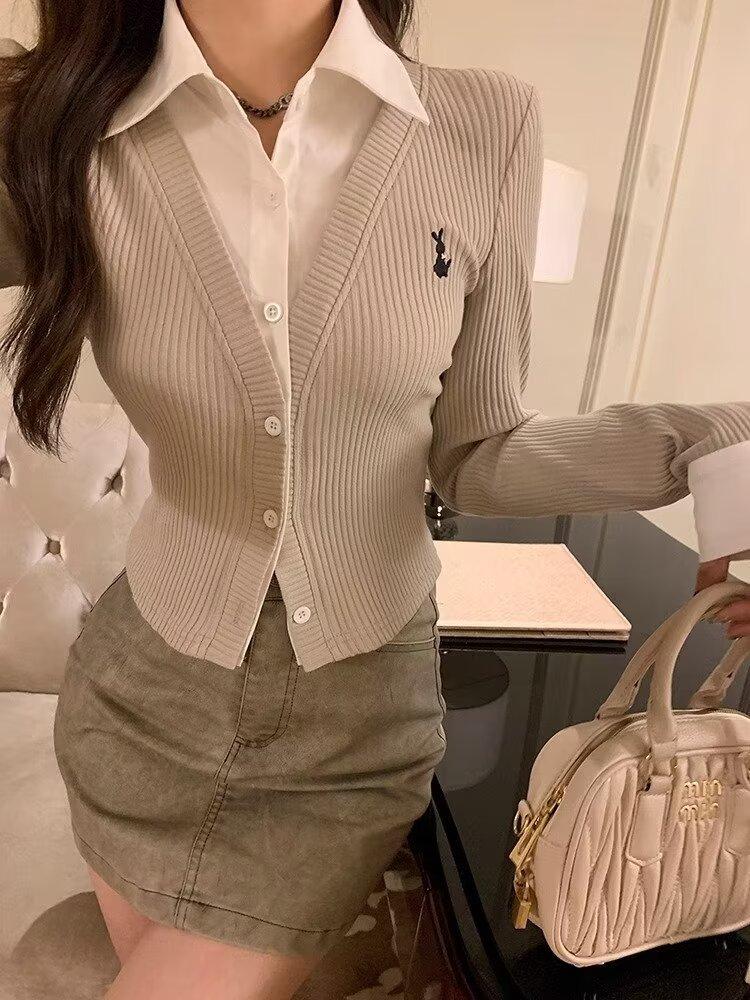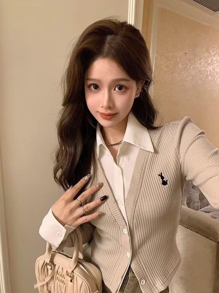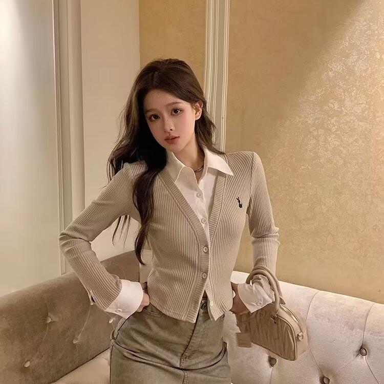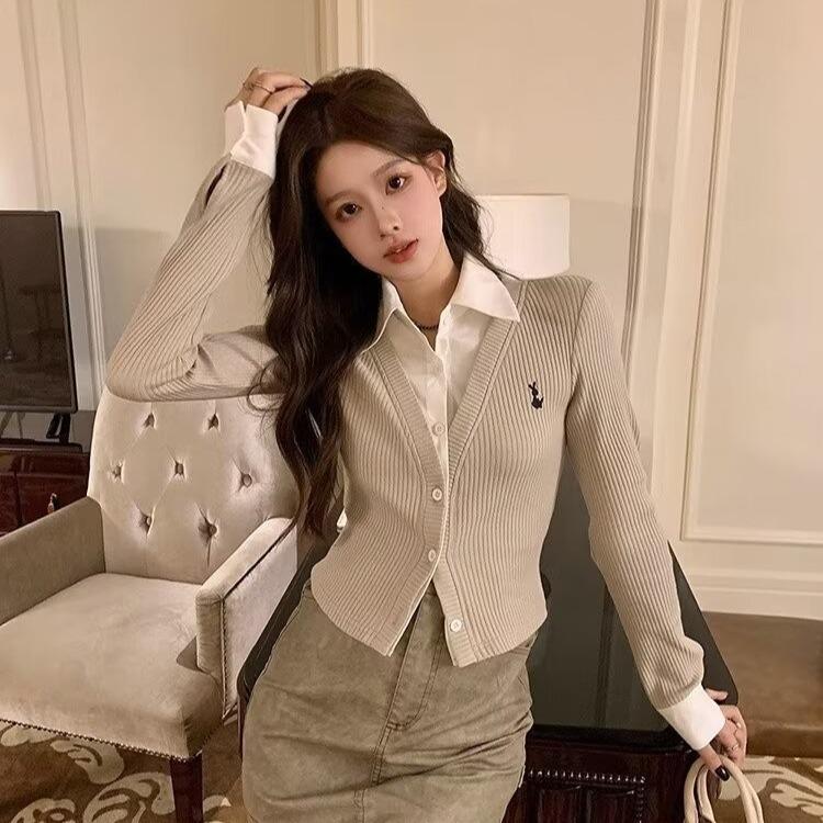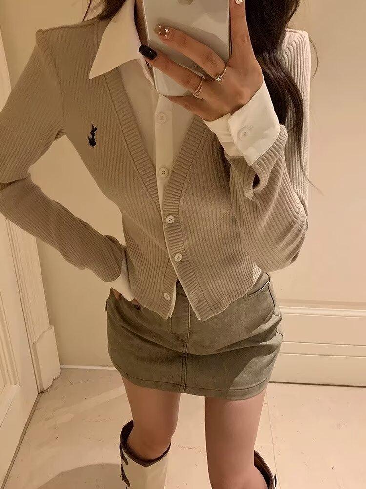 Tendencia de Moda Cárdigan de Punto Nuevo de Primavera y Otoño para Mujer Estilo Coreano Ajustado Casual Distintivo Bordado Suéter Top para Mujer