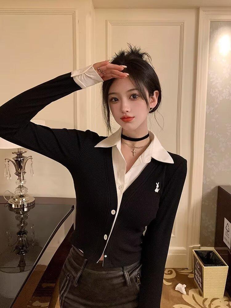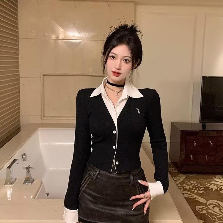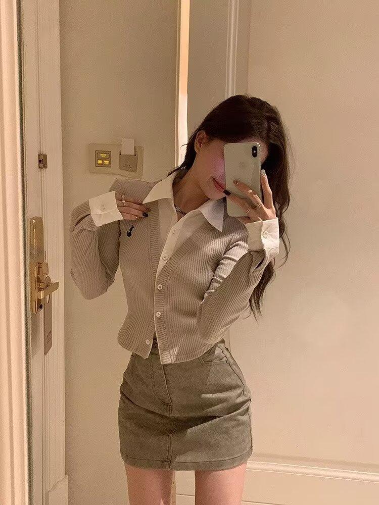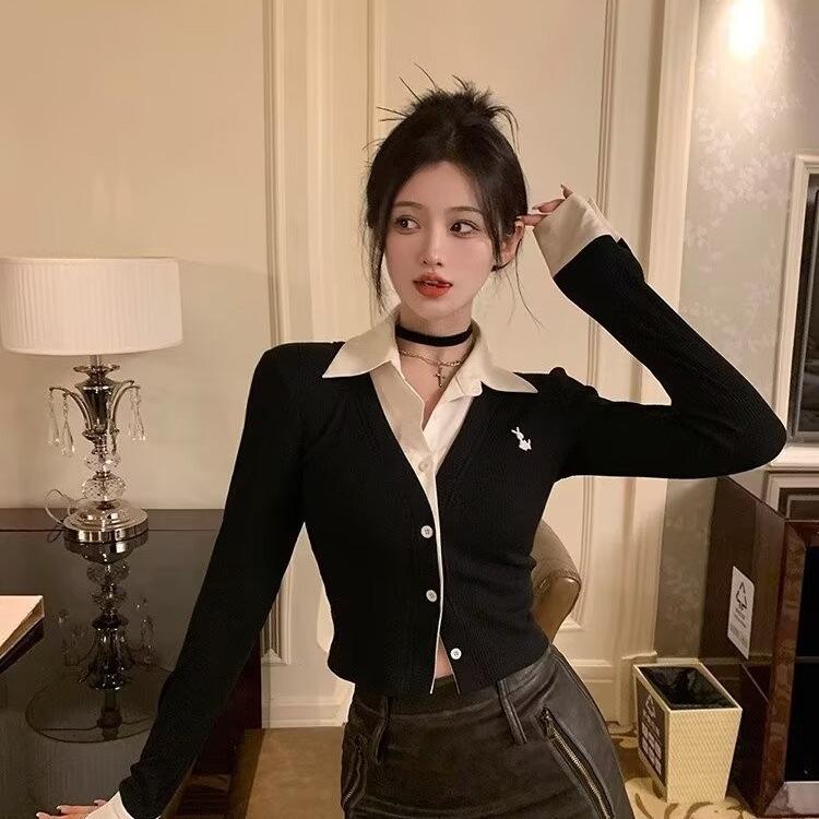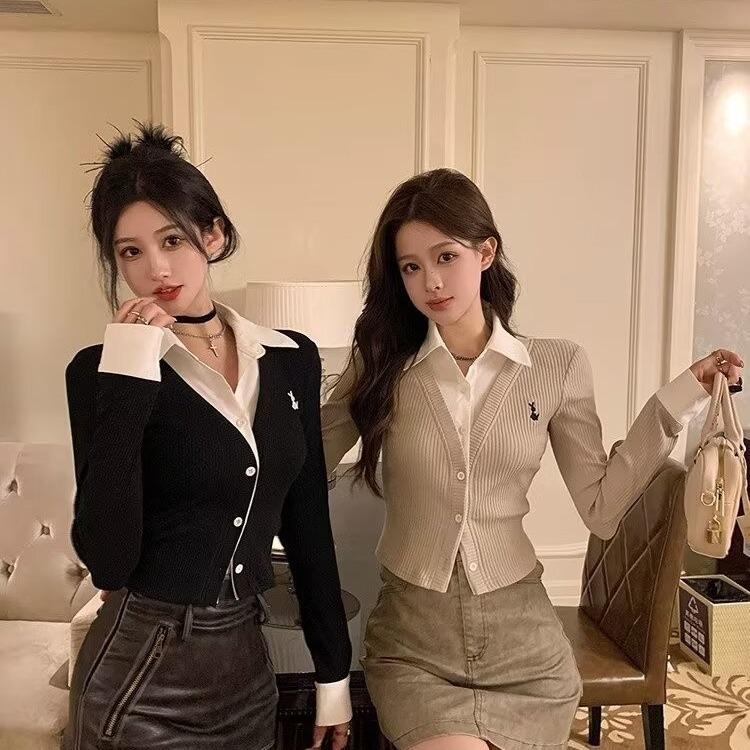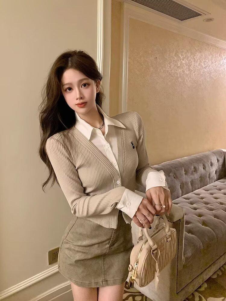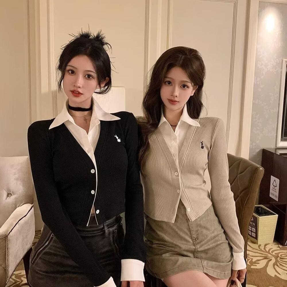 Tendencia de Moda Cárdigan de Punto Nuevo de Primavera y Otoño para Mujer Estilo Coreano Ajustado Casual Distintivo Bordado Suéter Top para Mujer