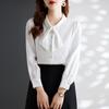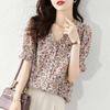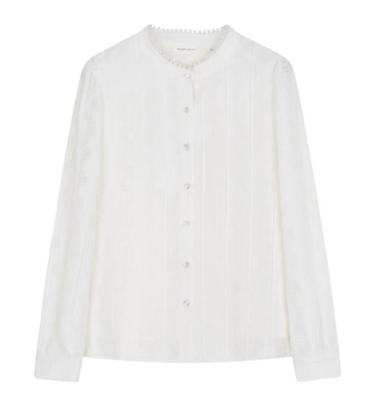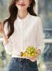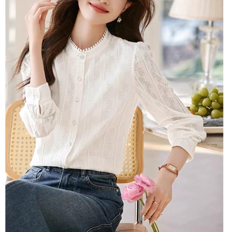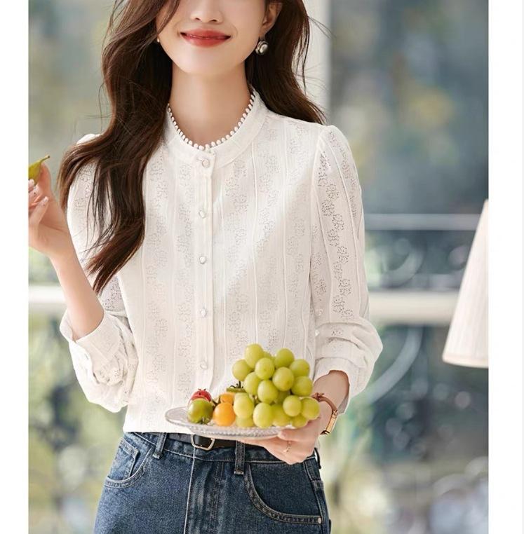 Camisa Básica de Textura para Desplazamiento al Trabajo Reductora de Edad 2024 Primavera Nueva Elegante Francesa Manga Abullonada Calada Estampada Camisa de Mujer