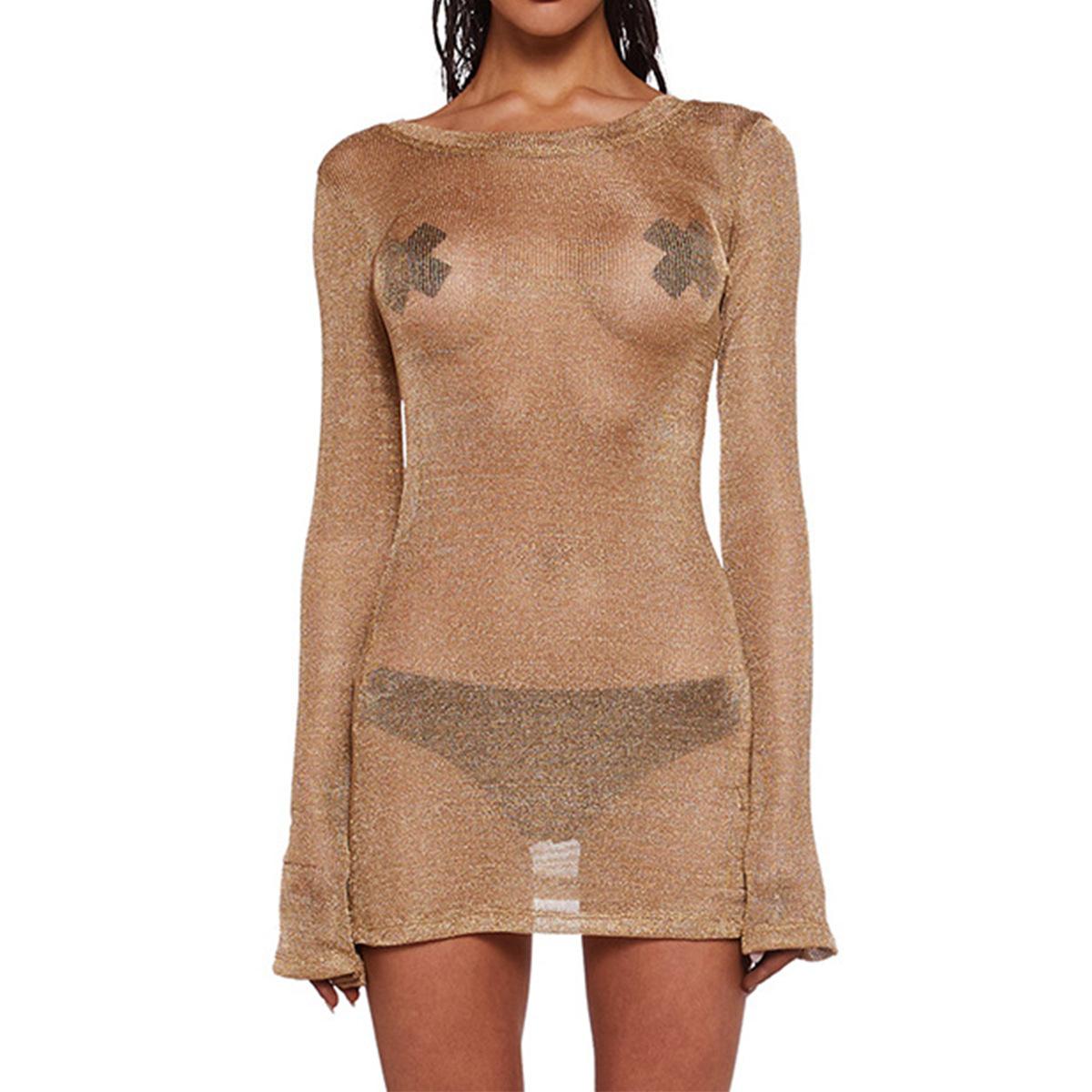 2024 Comercio Exterior Transfronterizo para Mujer Americano Sexy Transparente Hottie Vestido Cubreplayas de Manga Larga Estilo Corto en Stock