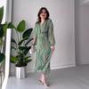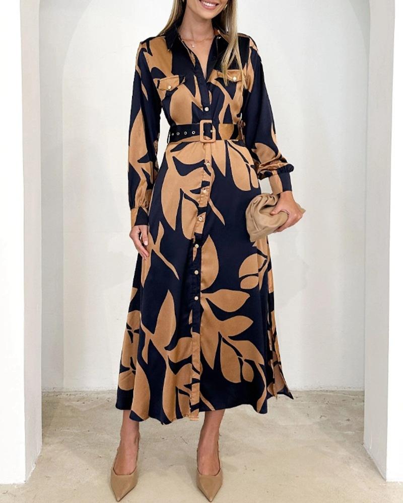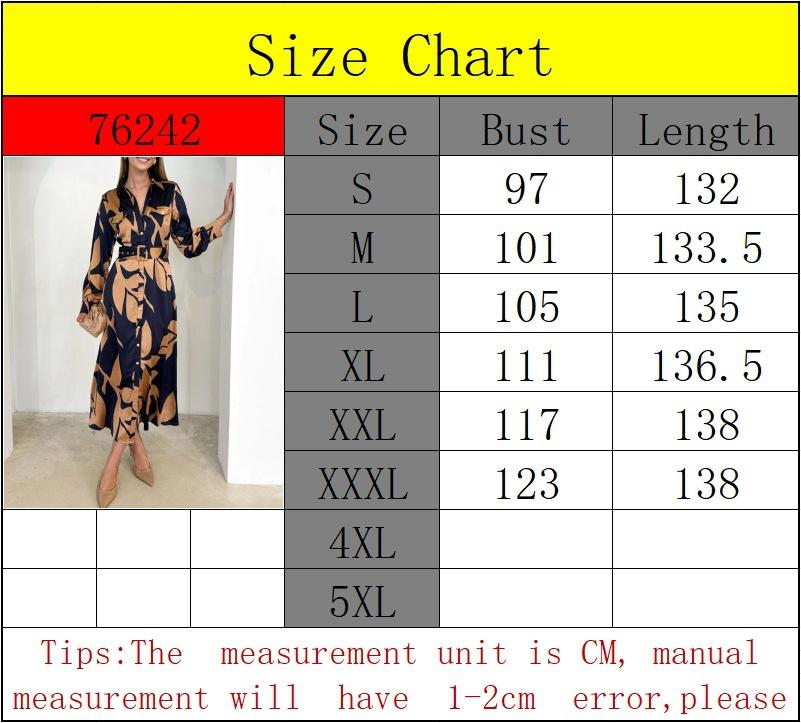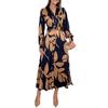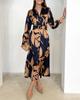 Otoño 2024 Nuevo Amazon Transfronterizo Europeo y Americano Impresión Cuello en V Manga Larga Elegante Vestido de Cintura Retro Ropa de Mujer