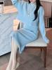 Traje de Suéter de Punto, Ropa de Otoño e Invierno para Mujer, Nuevo Estilo, Elegante y a la Moda, Diseño de Borde Deshilachado, Conjunto de Dos Piezas Falda Midi
