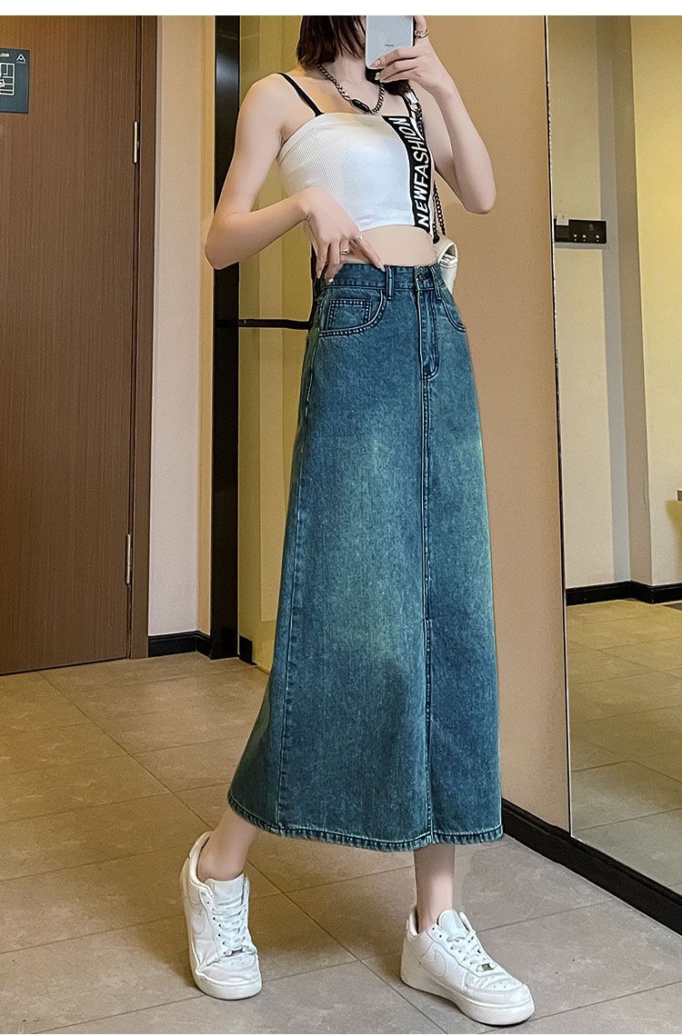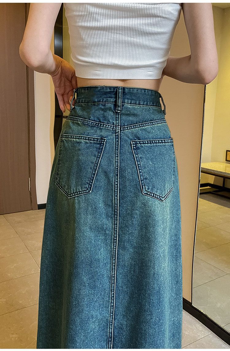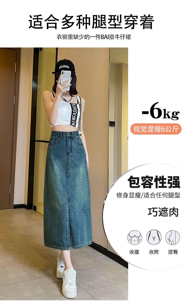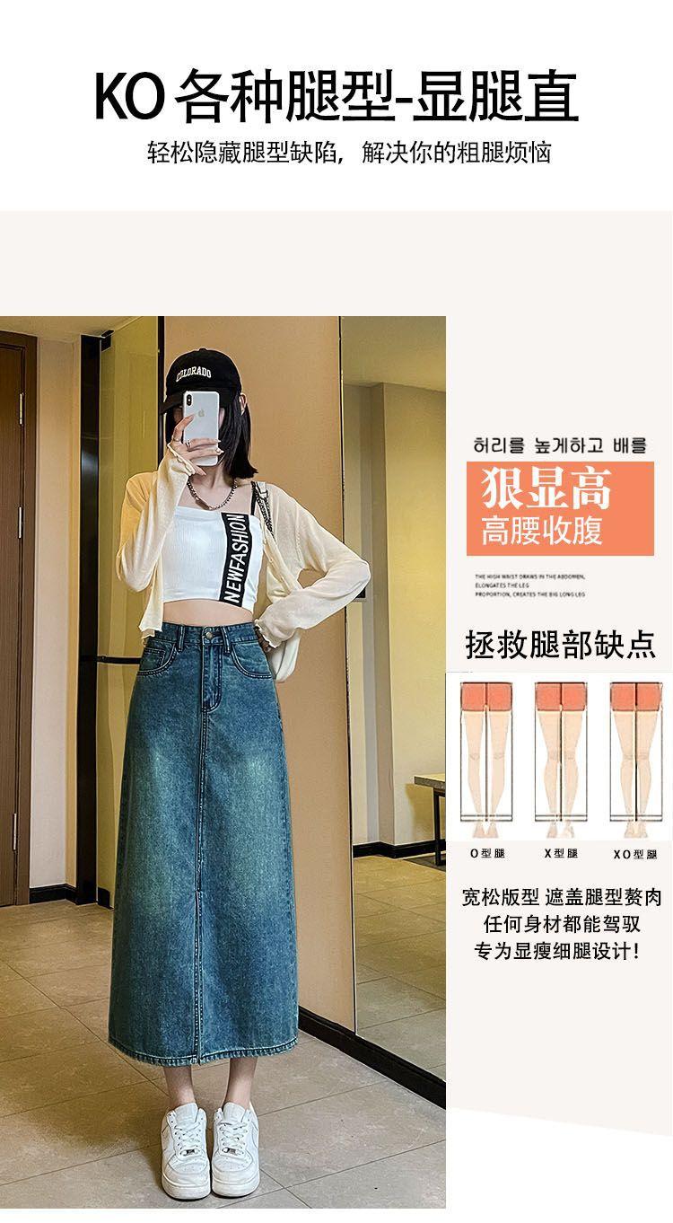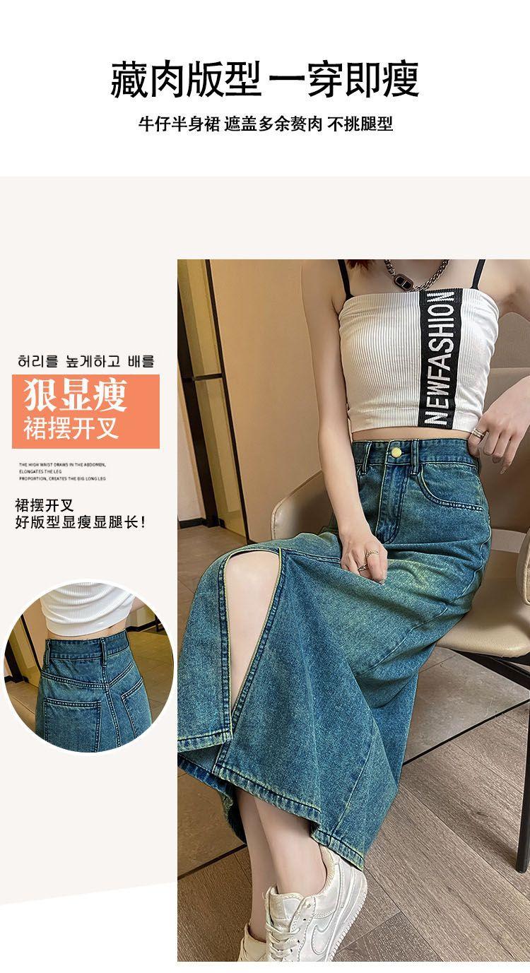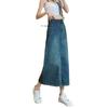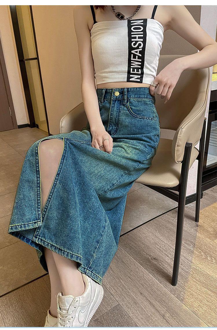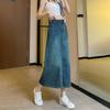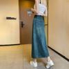 Falda de Mezclilla Dulce con Abertura Media para Mujer 2024 Nueva Cintura Alta Slim Larga Recta Suelta Cadera Falda Azul Retro