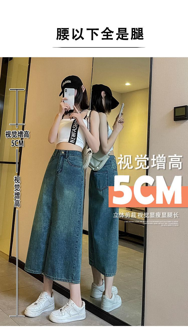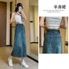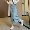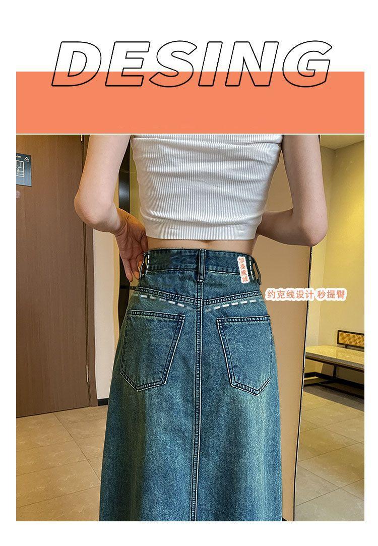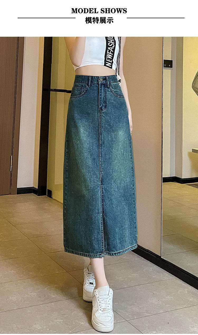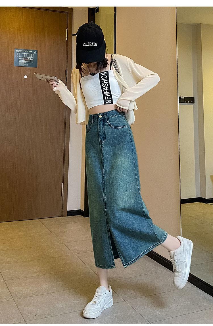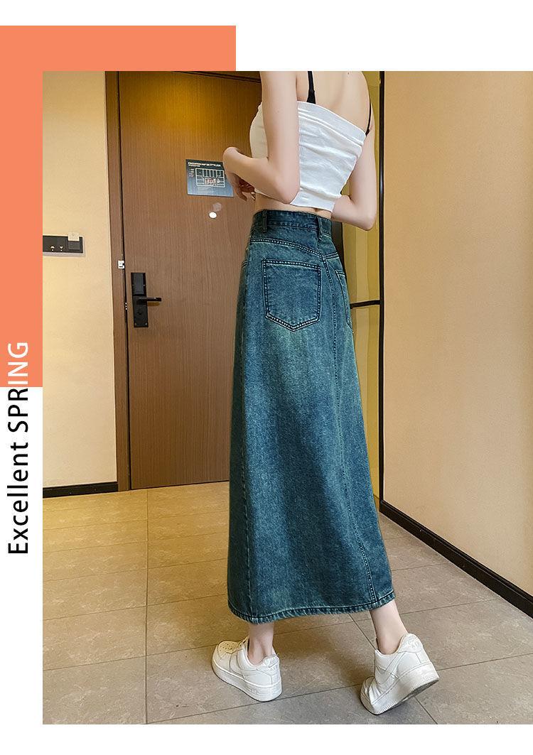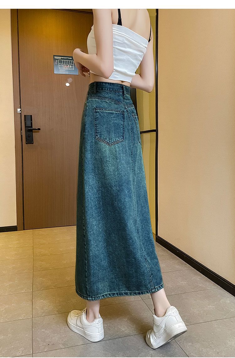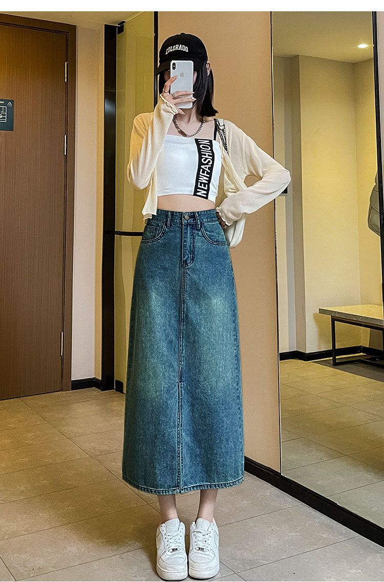 Falda de Mezclilla Dulce con Abertura Media para Mujer 2024 Nueva Cintura Alta Slim Larga Recta Suelta Cadera Falda Azul Retro