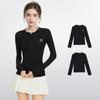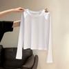 Camiseta de manga larga a rayas para mujer, primavera y otoño de 2024, nueva y popular camiseta de corte entallado con hombros descubiertos y elegante de principios de primavera con camisa de fondo.