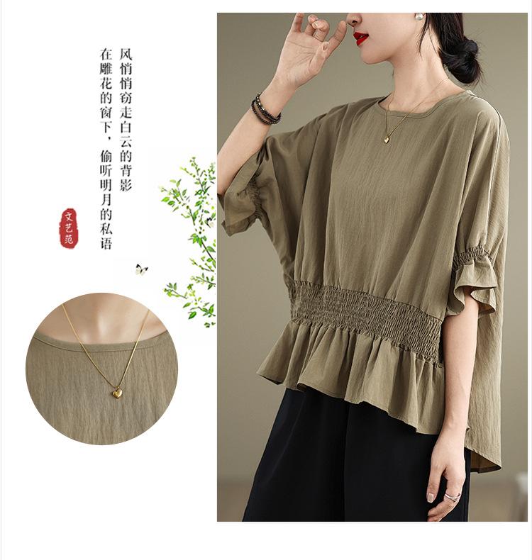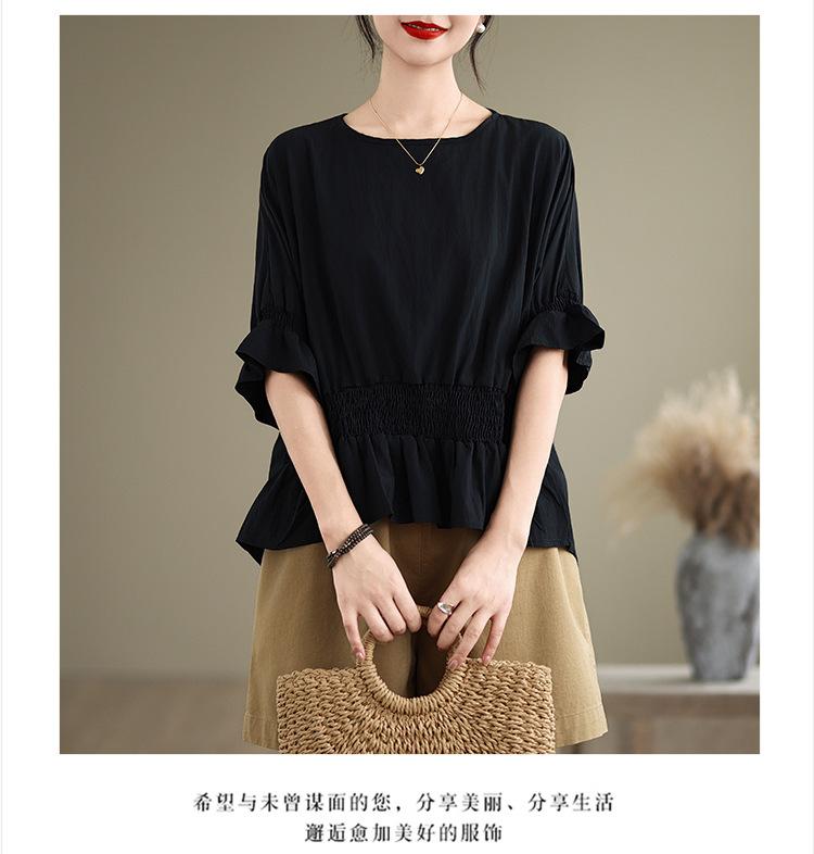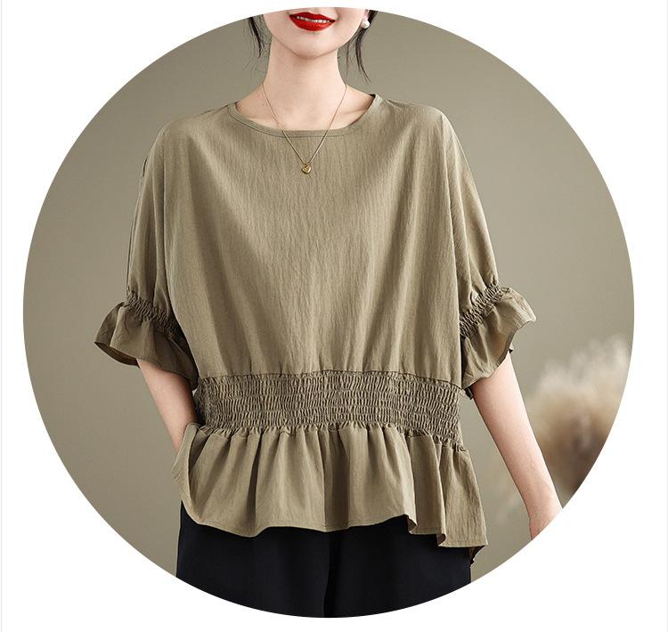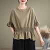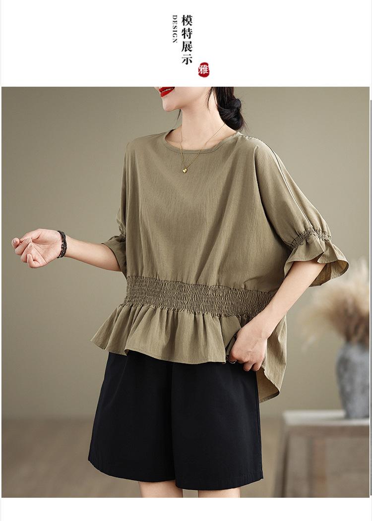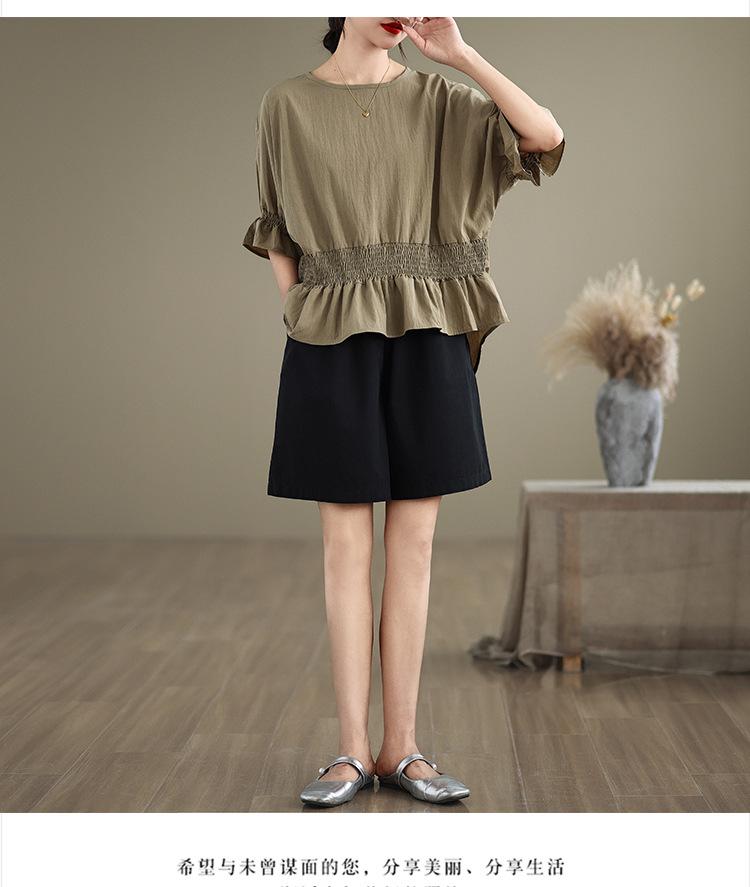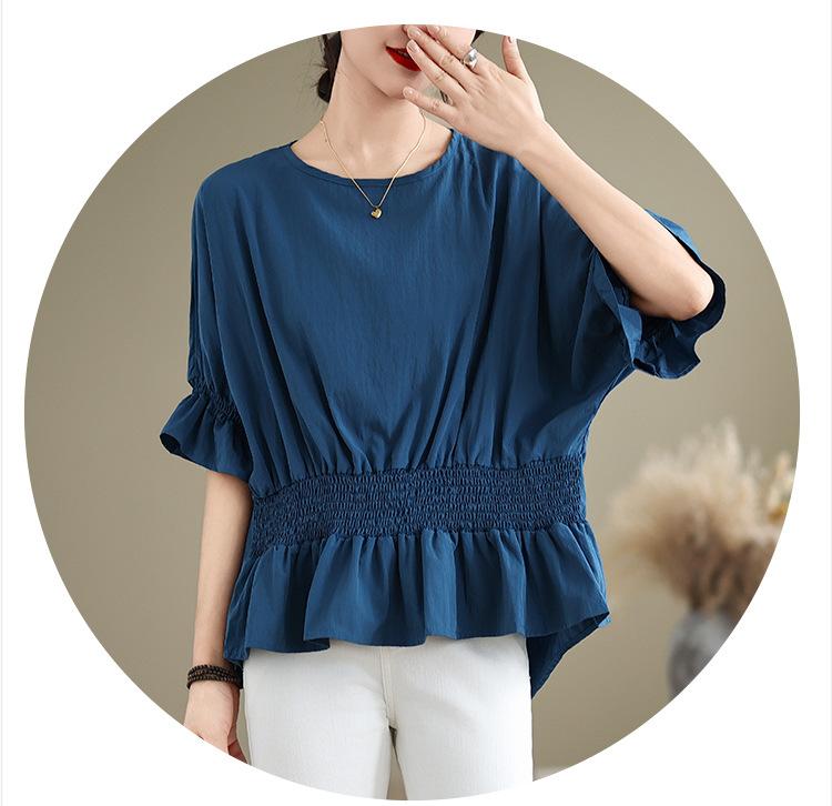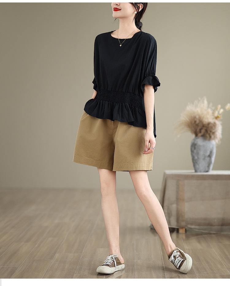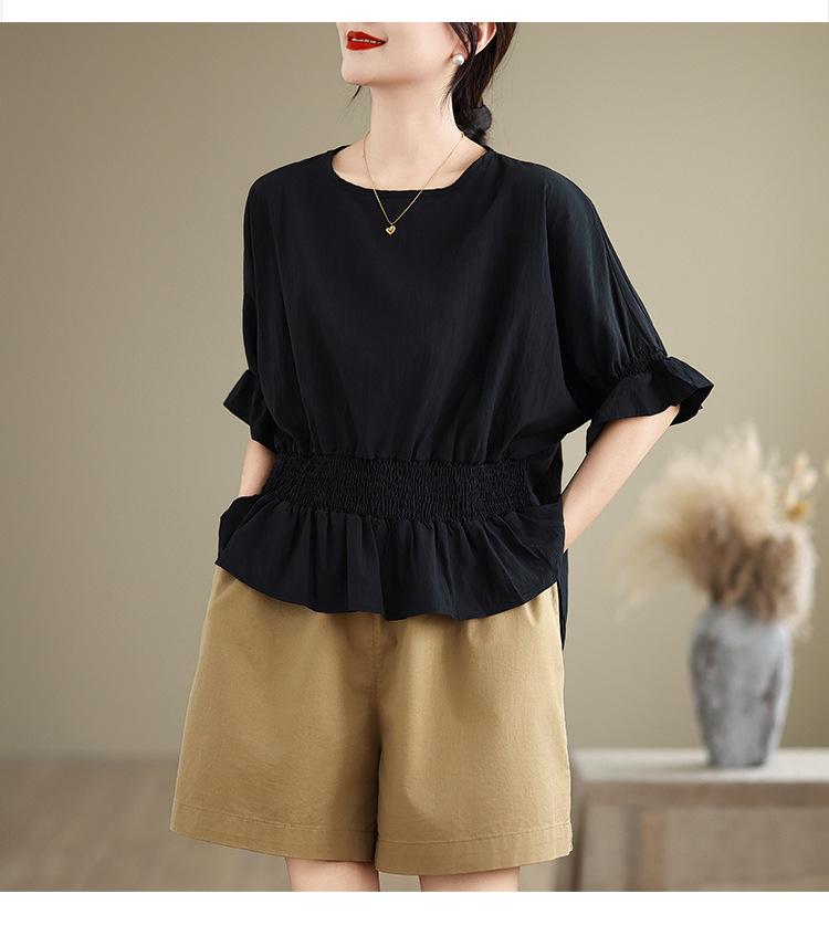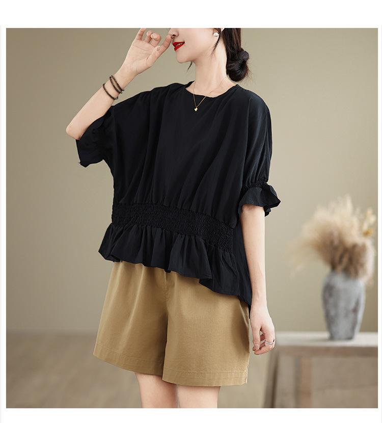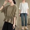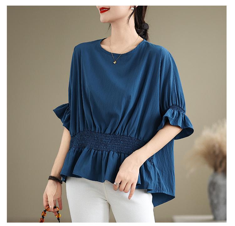 Verano 2025 Nuevo Estilo Jersey Versátil Top de Manga Campana con Frente Corto y Espalda Larga