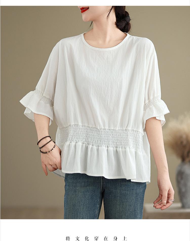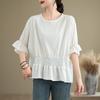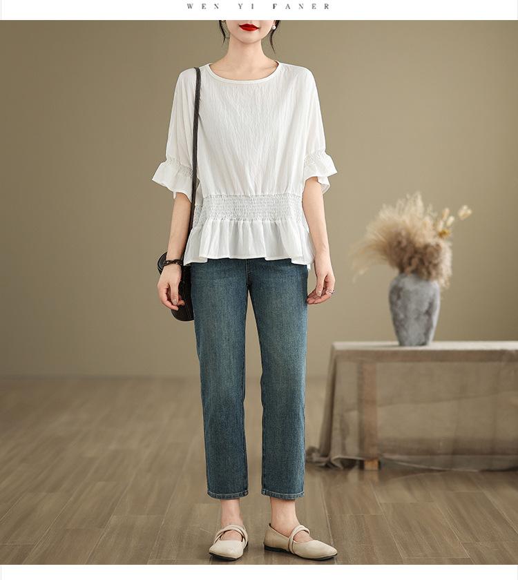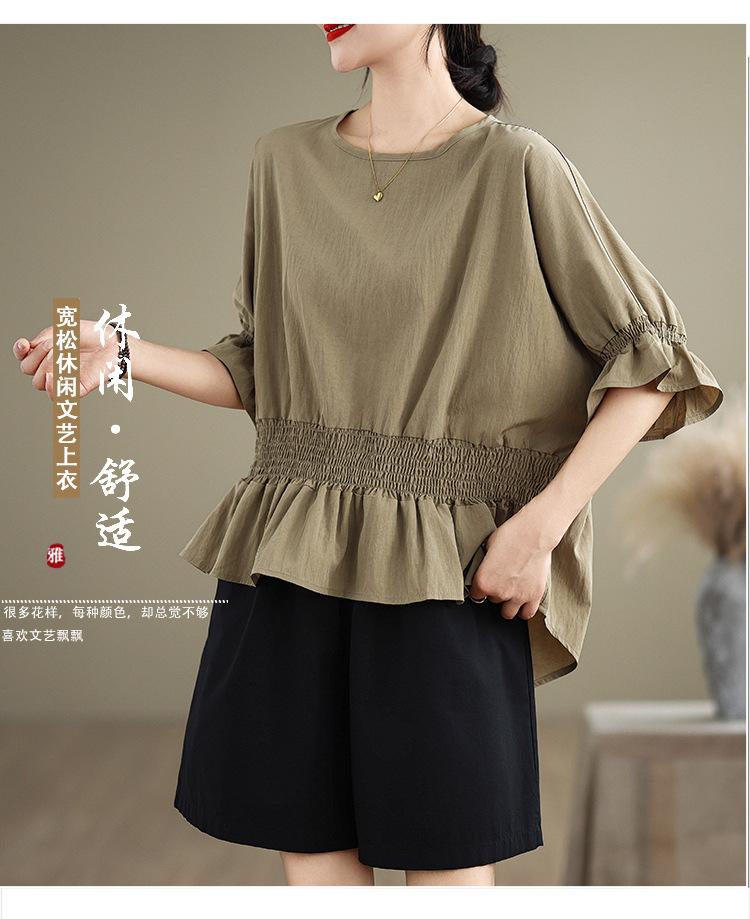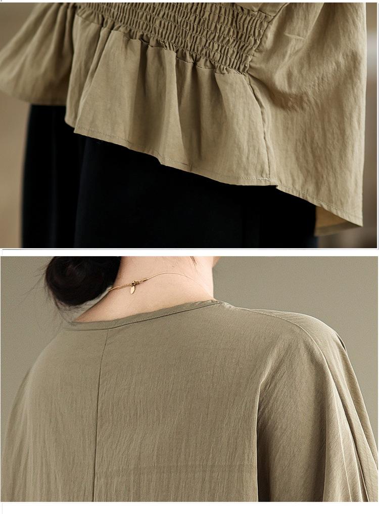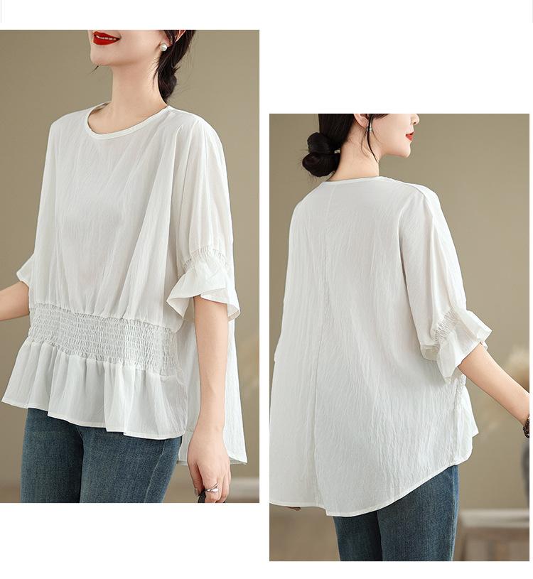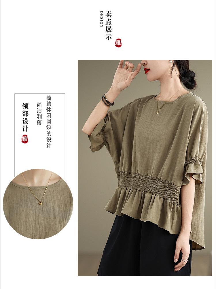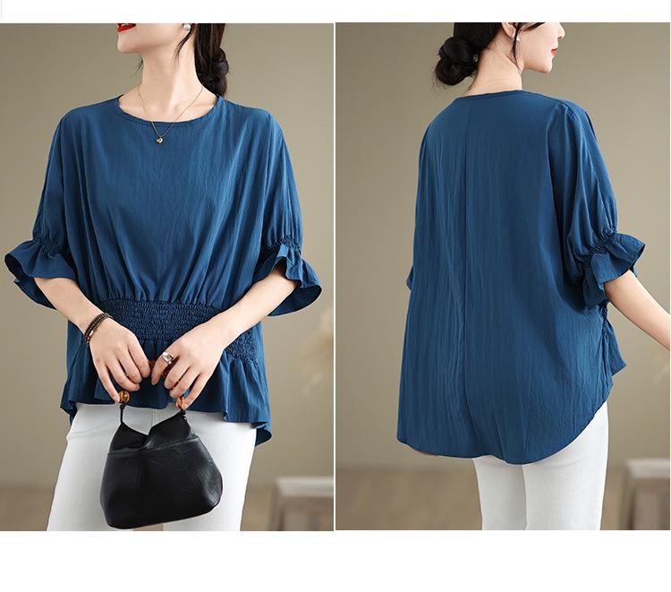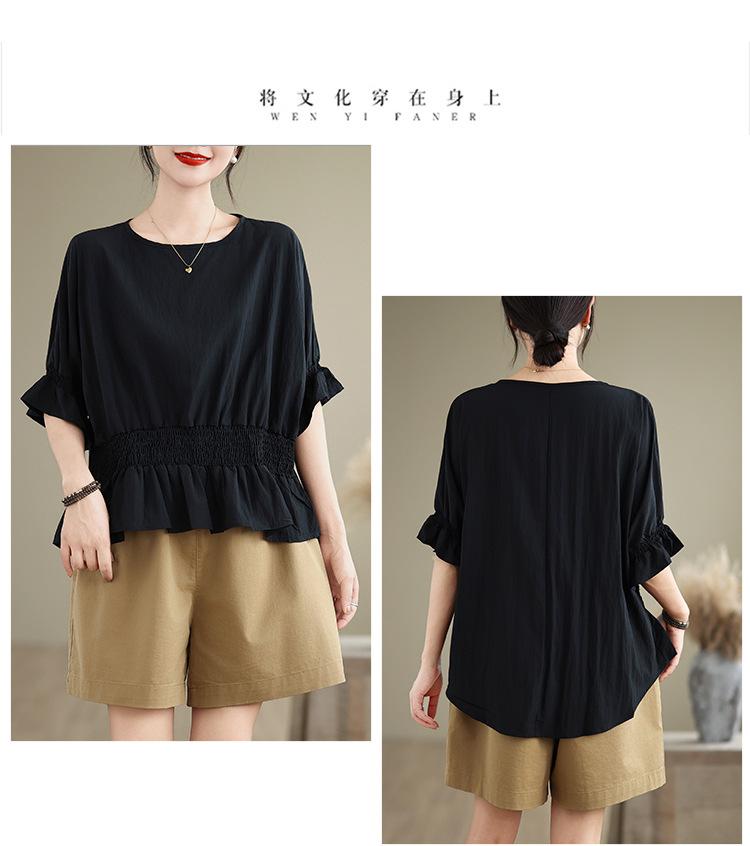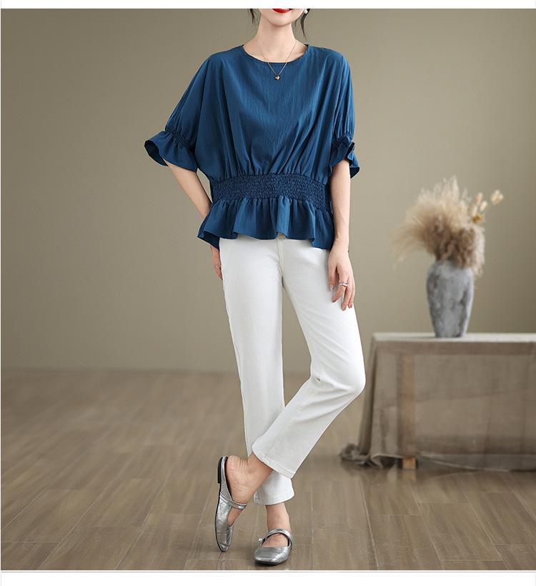 Verano 2025 Nuevo Estilo Jersey Versátil Top de Manga Campana con Frente Corto y Espalda Larga