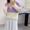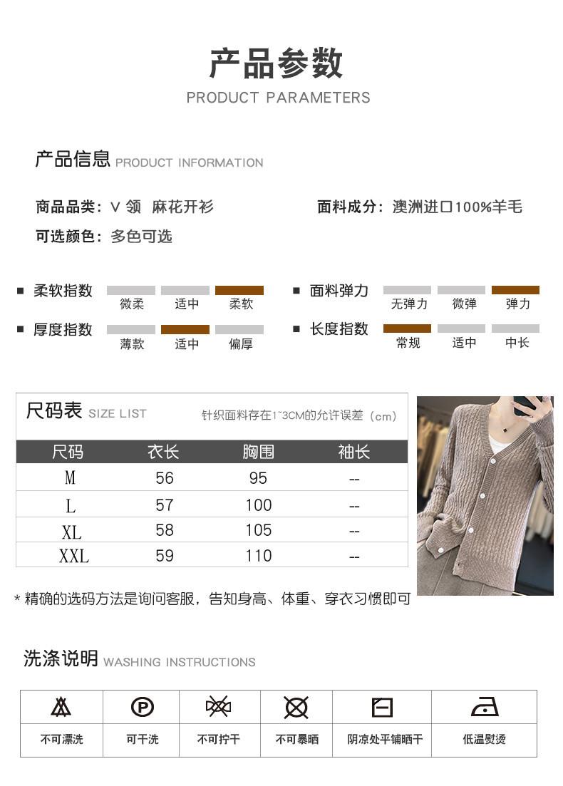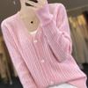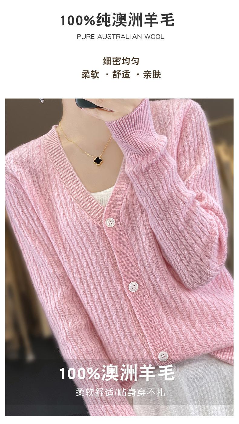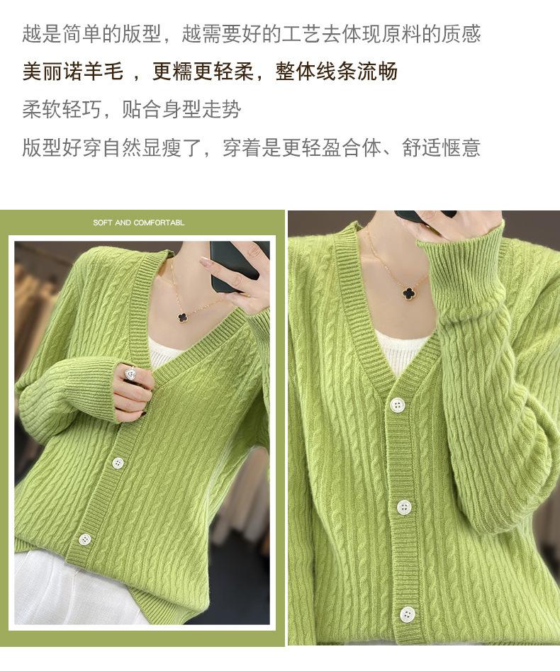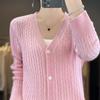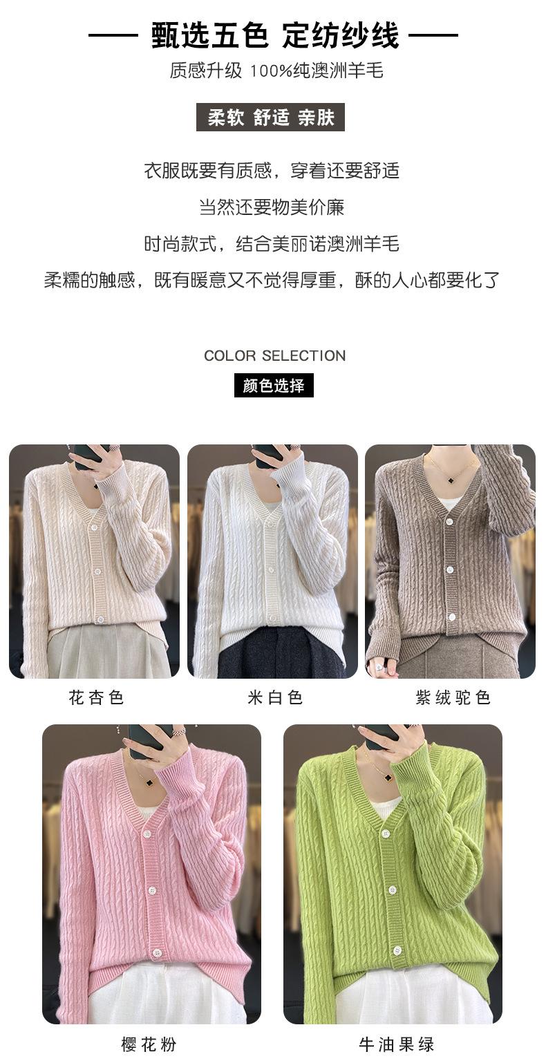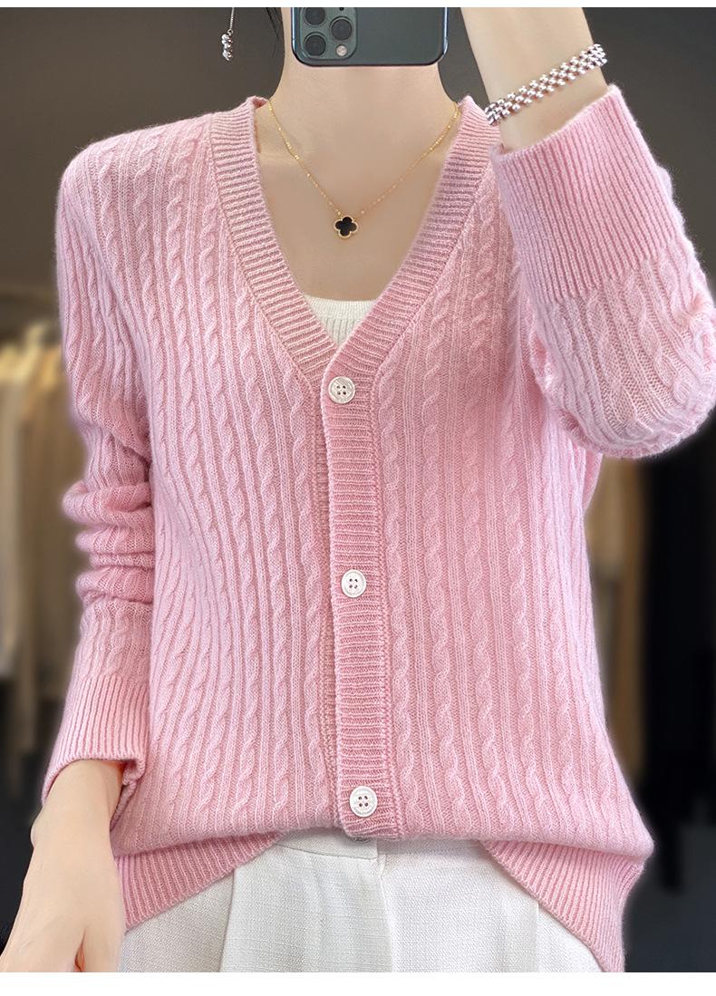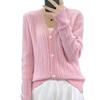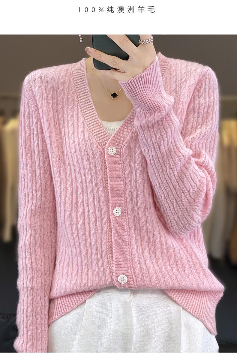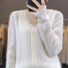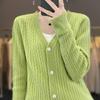 Otoño Nuevo Cárdigan de Flores Trenzadas para Mujer Cuello en V Elegante Color Sólido Combinable Suelto Tejido de Lana Pura Suéter Chaqueta