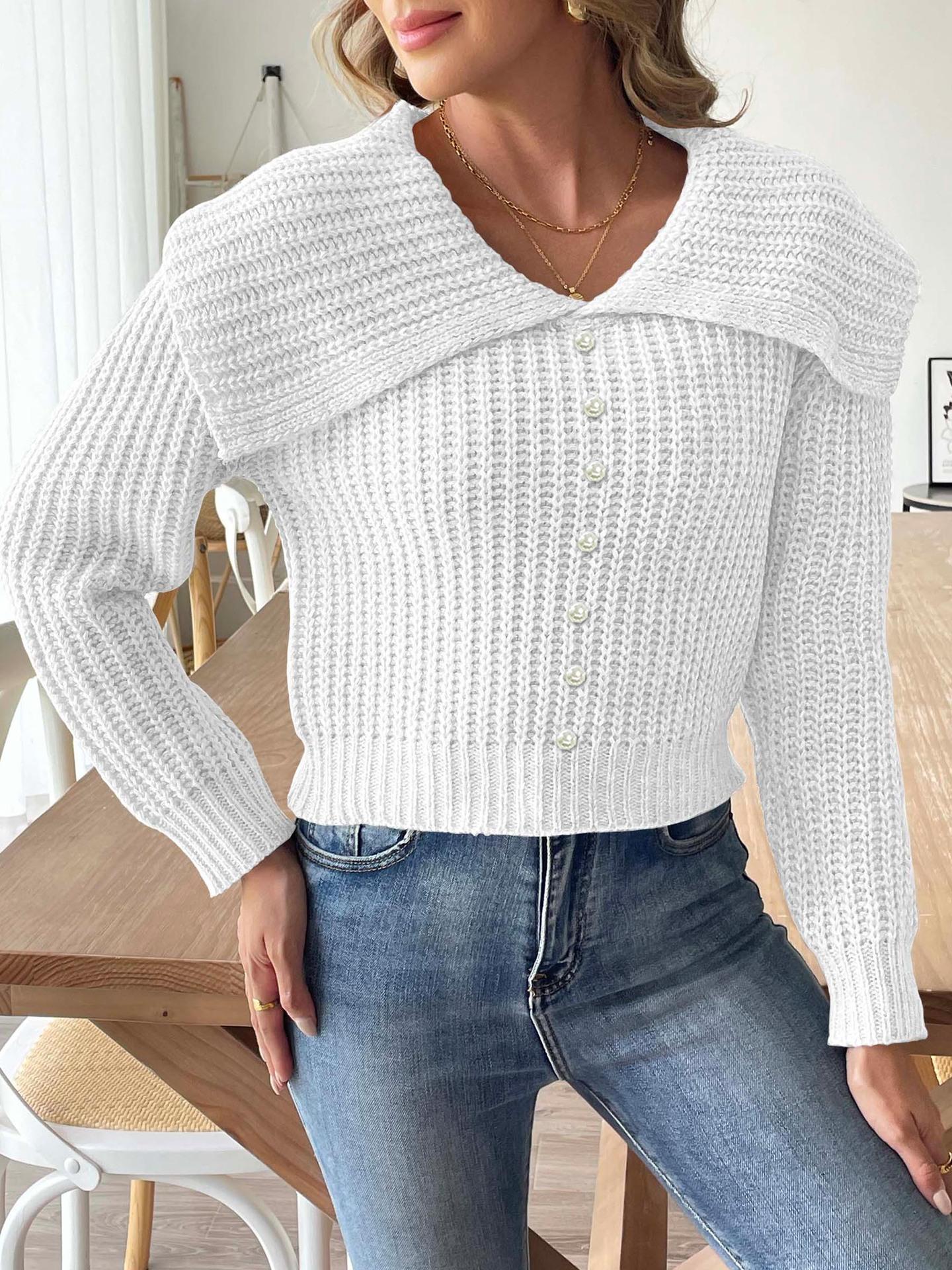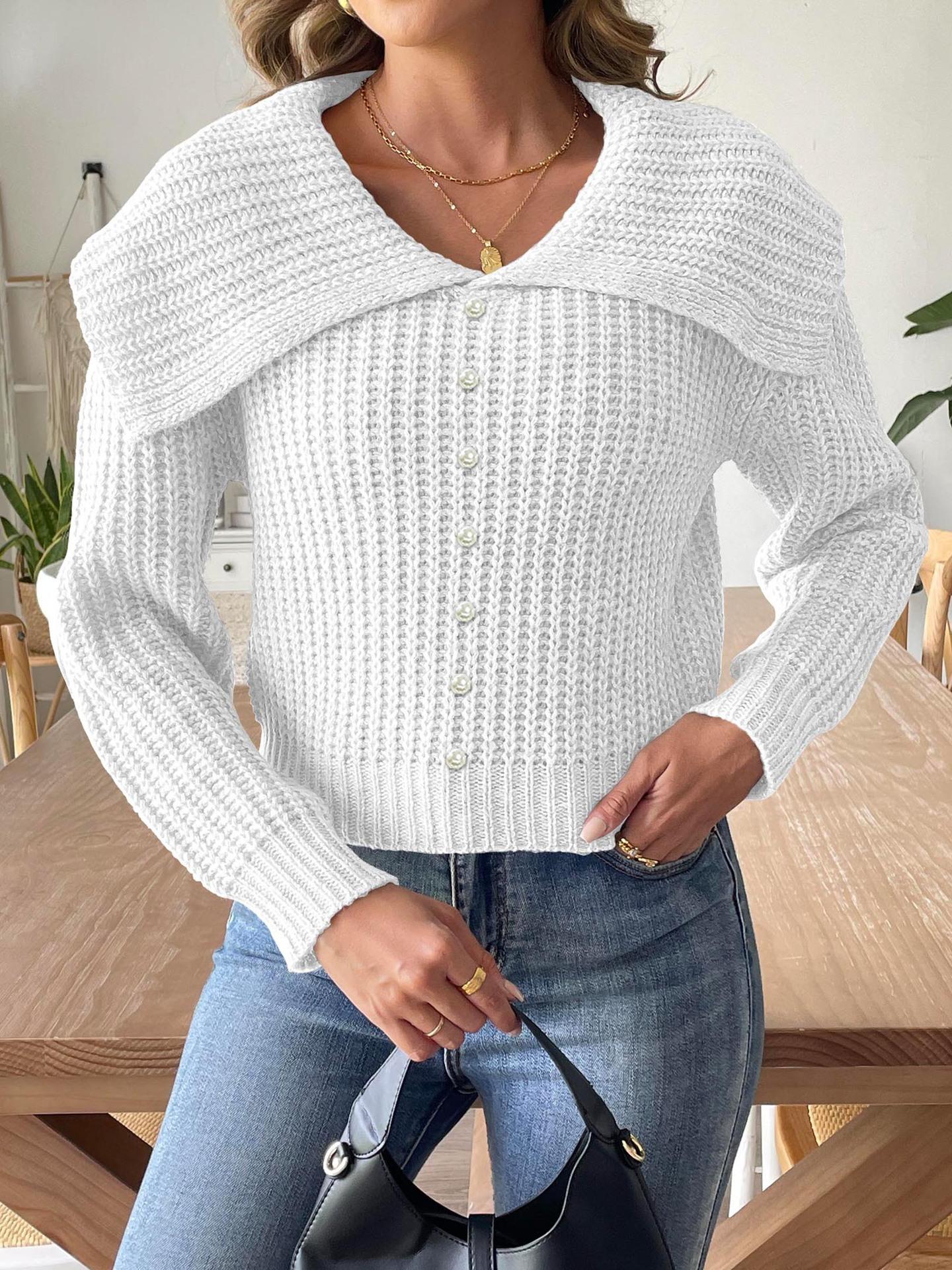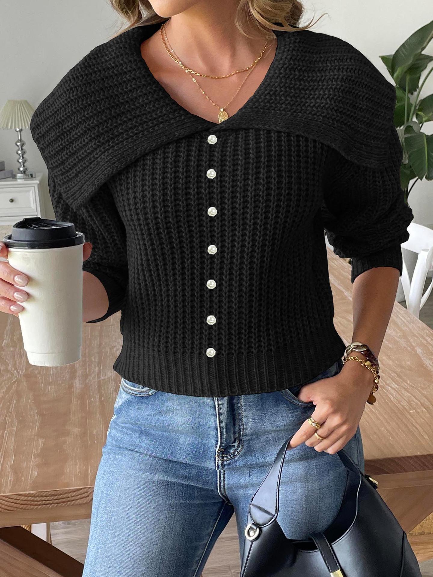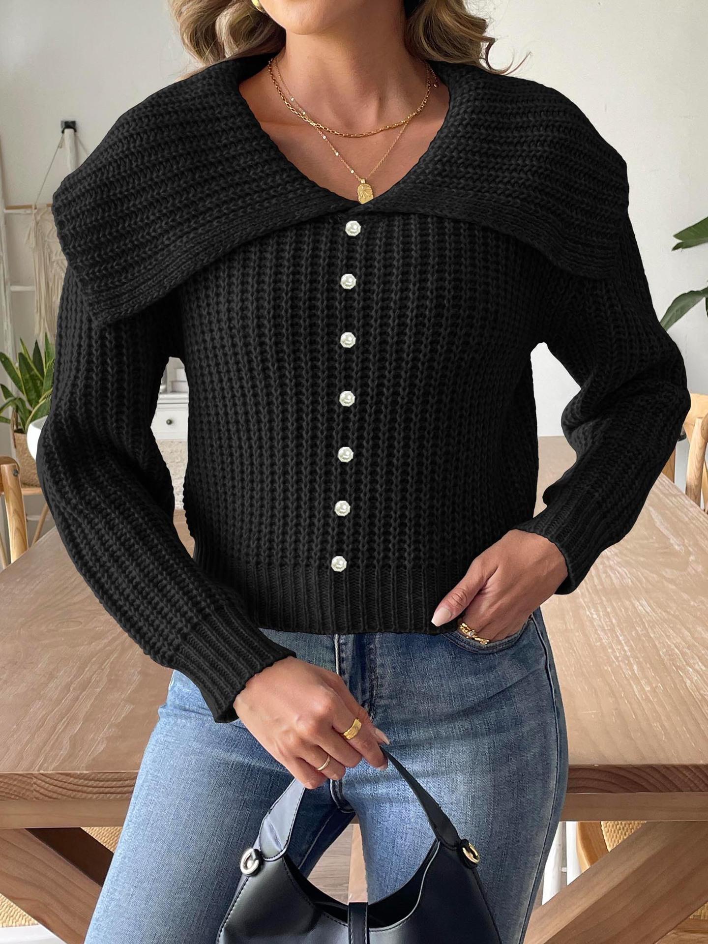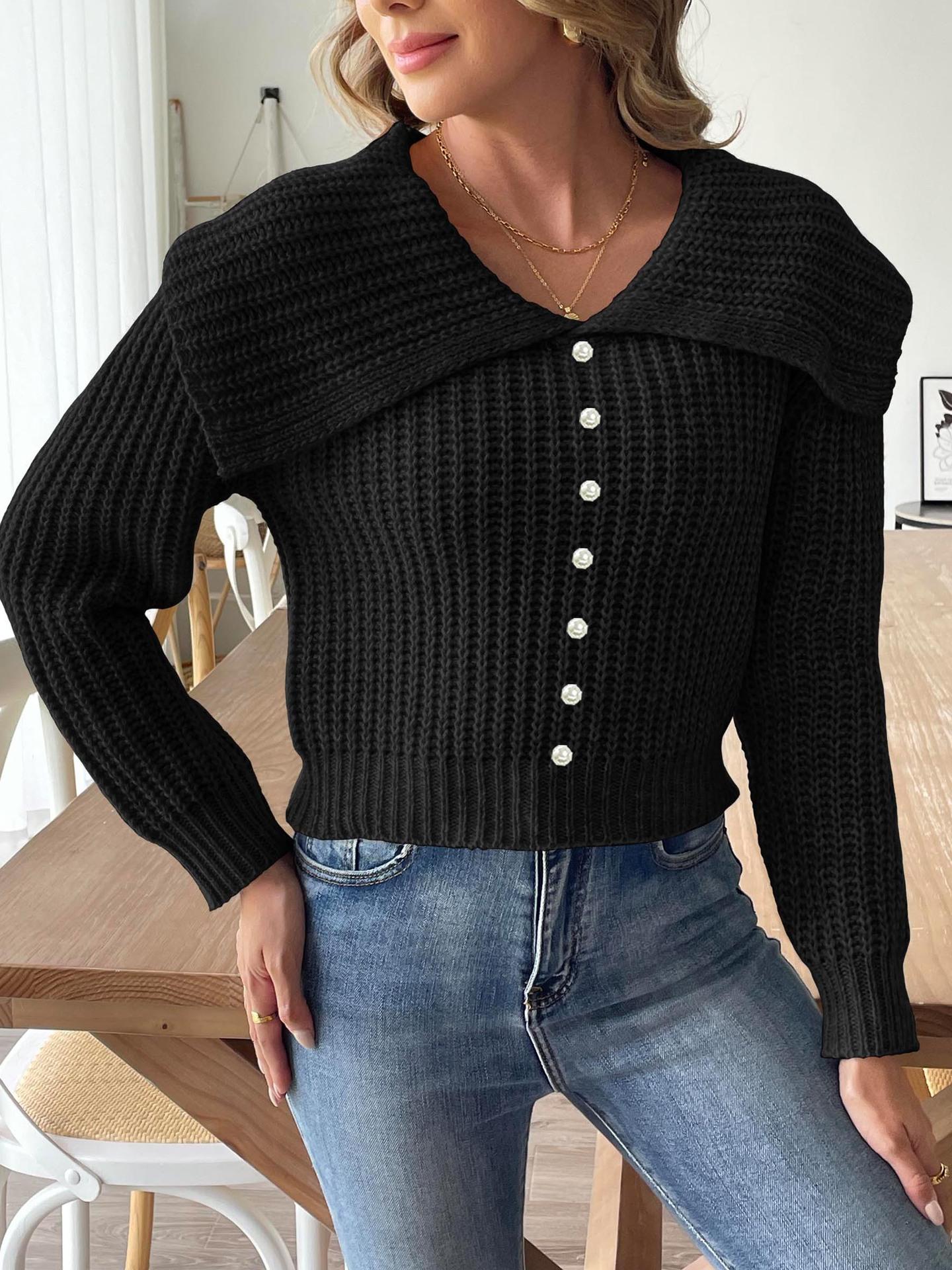 Top Corto para Mujer Suéter con Cuentas de Perlas Transfronterizo Europeo y Americano para Mujer Otoño e Invierno Nuevo Suéter Pulóver con Solapa Grande
