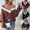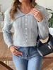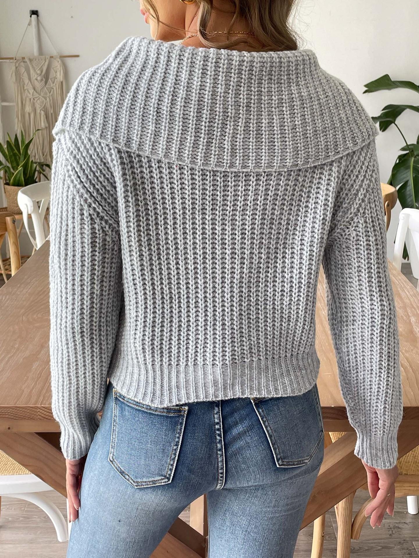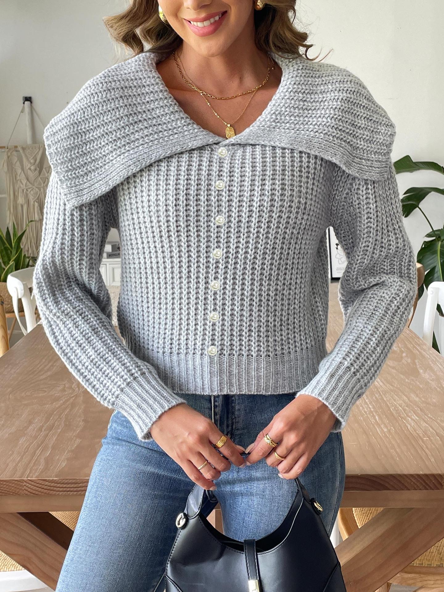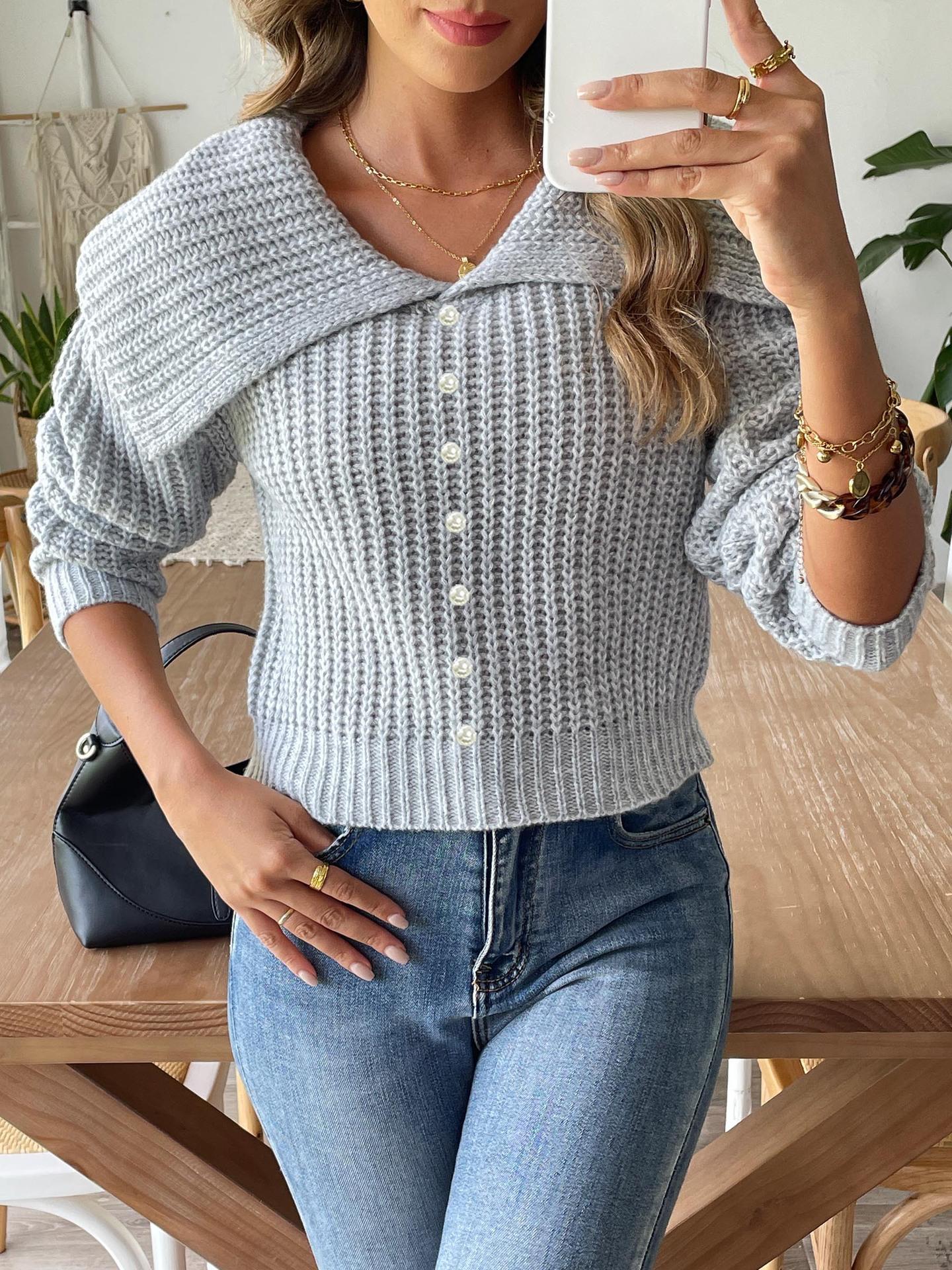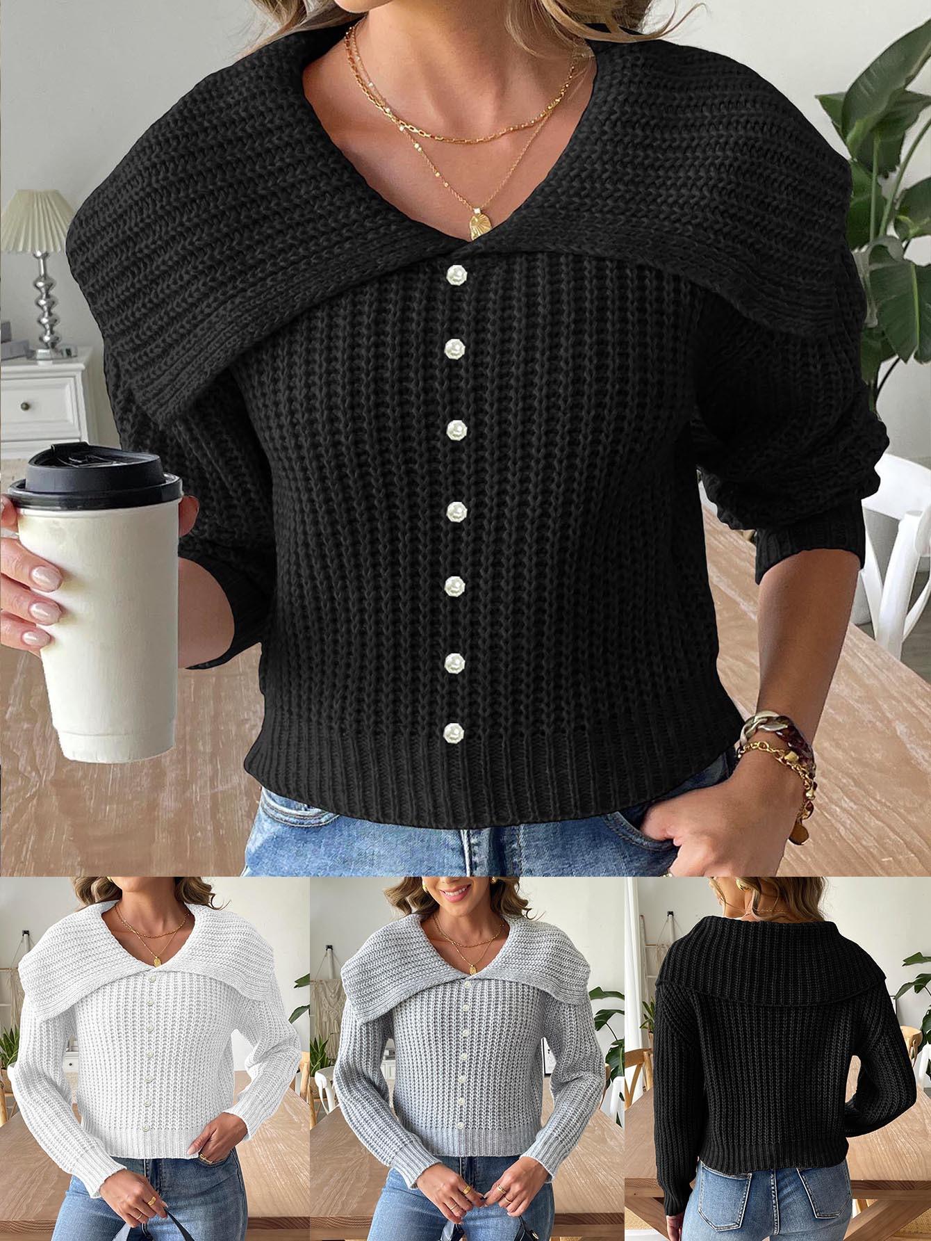Top Corto para Mujer Suéter con Cuentas de Perlas Transfronterizo Europeo y Americano para Mujer Otoño e Invierno Nuevo Suéter Pulóver con Solapa Grande