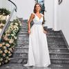 Nuevo vestido de noche de gasa para banquete, elegante, ajustado, sin espalda, con escote en V y lentejuelas de color liso, estilo europeo y americano.