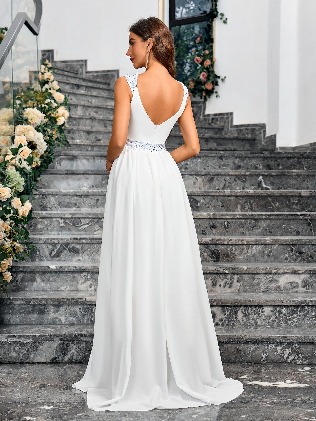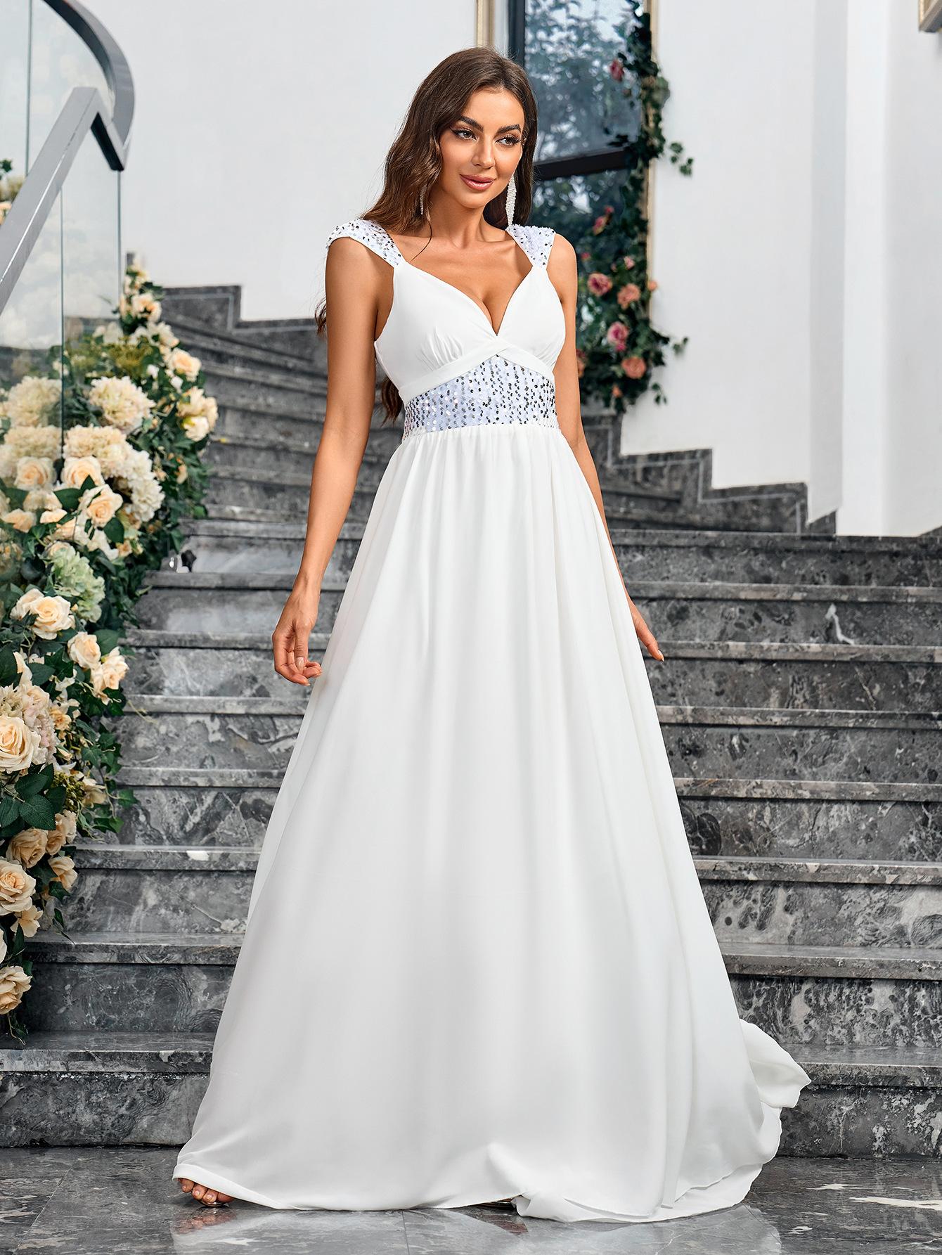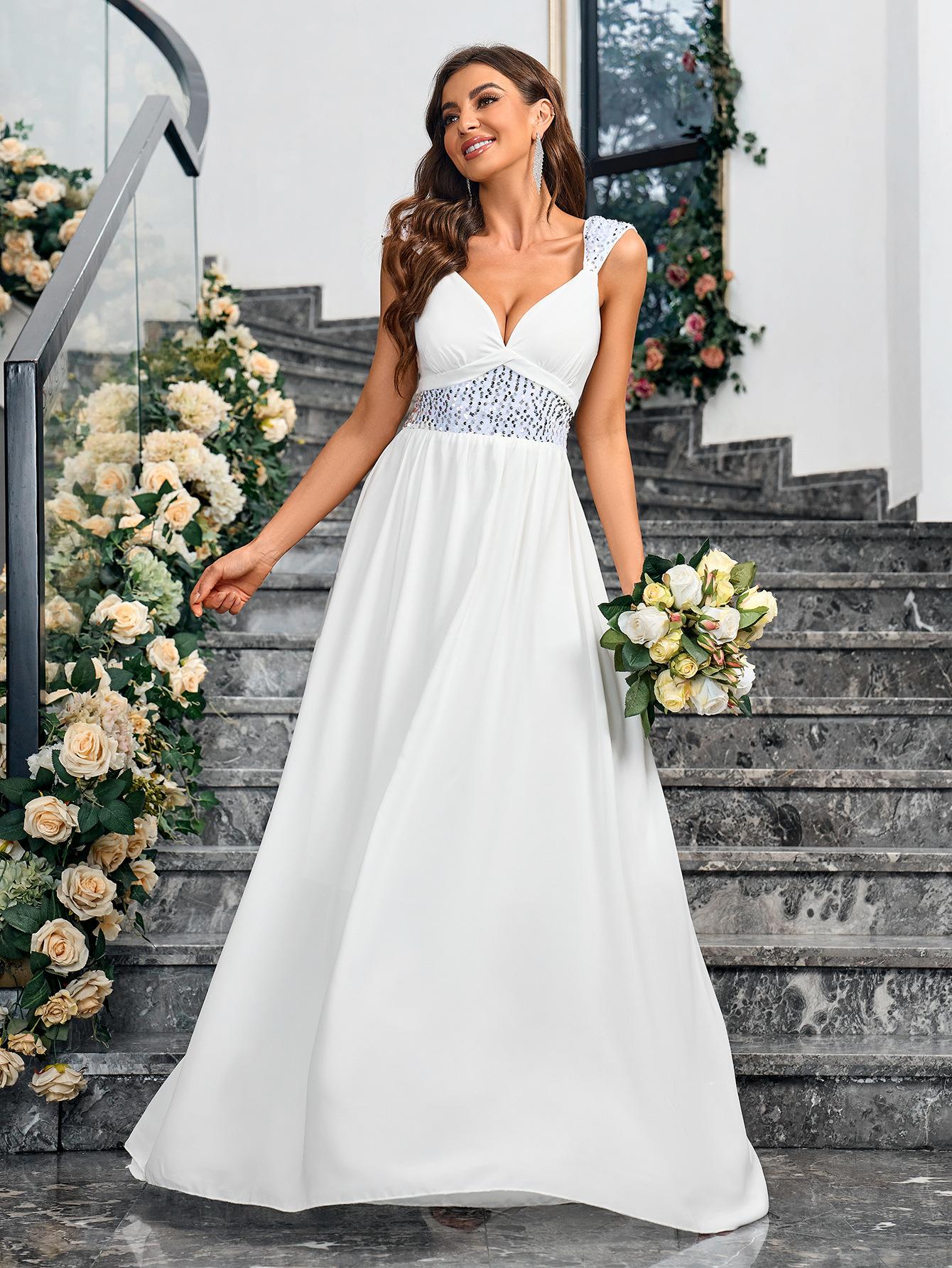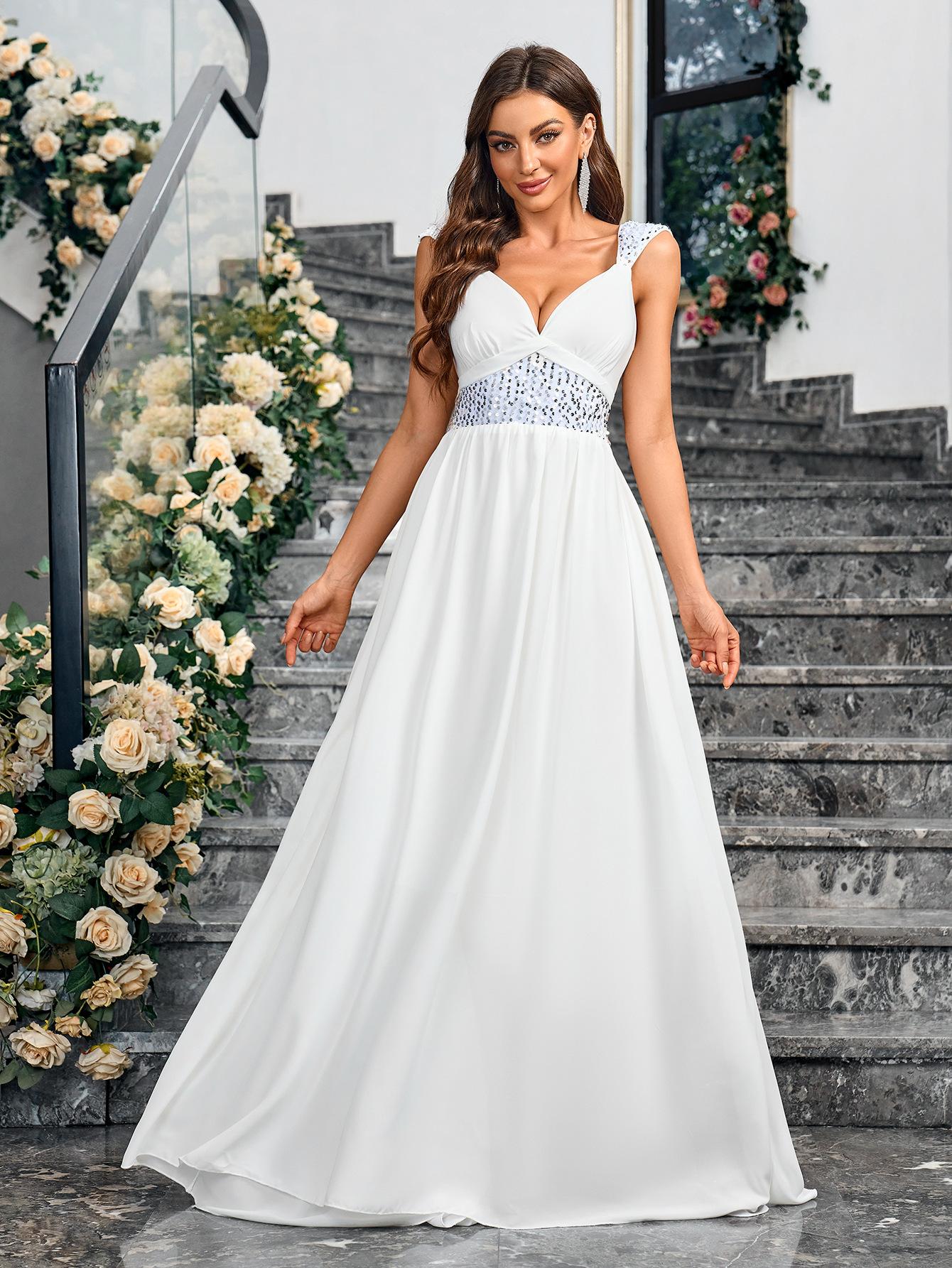 Compra Nuevo vestido de noche de gasa para banquete, elegante, ajustado, sin espalda, con escote en V y lentejuelas de color liso, estilo europeo y americano. al por mayor en Joom.pro