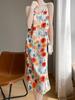 Vestido de playa con estampado tridimensional y falda midi de seda con ácido acético para mujer, novedad de verano 2024