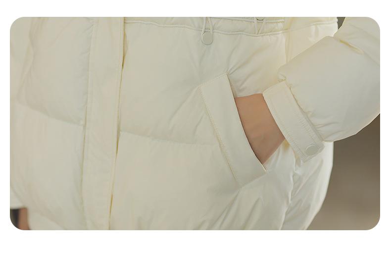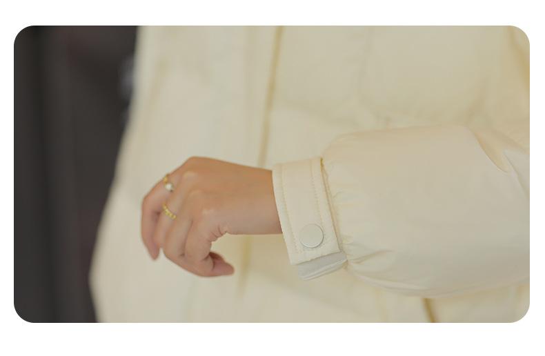 Chaqueta de plumón color crema de longitud media para mujer, chaqueta de invierno de alta gama para mujer, estilo coreano, plumón de pato blanco, fábrica de chaquetas de plumón Pinghuyenes120