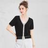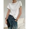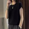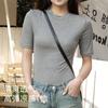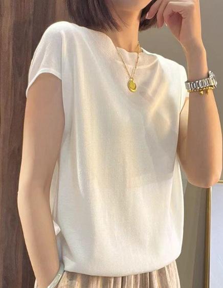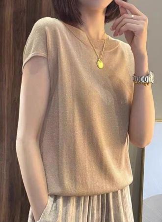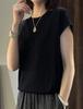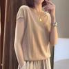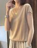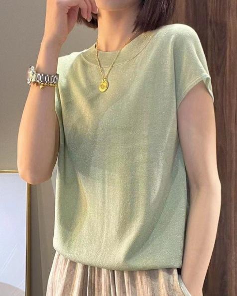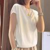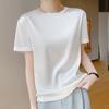 Verano Imitación Seda de Morera Delgada Hombro Corto Manga Corta Camiseta Mujer 2024 Nuevo Color Sólido Combinable Básico Top de Punto