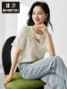 Zhen Xi Nueva Camiseta de Manga Corta con Cuello Redondo, Hebilla Hueca Bordada, Moda Recta de Encaje para Mujer SP362