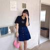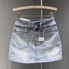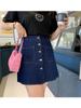 Falda corta vaquera para mujer, falda de corte A, falda de cintura alta con hebilla, otoño 2024, nuevo estilo coreano, corte ajustado, combina con todo.