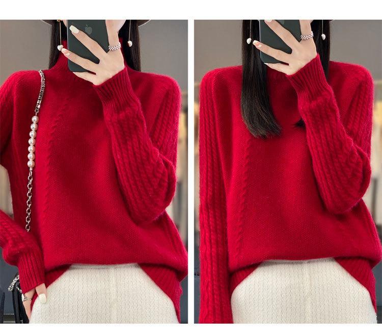 Cárdigan grueso de otoño e invierno para mujer, camisa de punto con cuello alto medio, jersey de manga larga, suéter grueso y holgado de moda