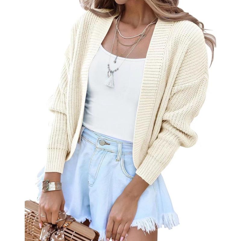 Chal de mujer, estilo transfronterizo europeo y americano, para otoño e invierno, nuevo estilo, informal, abrigo corto, cárdigan de color liso.