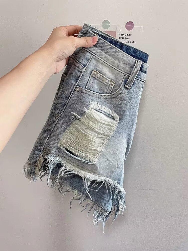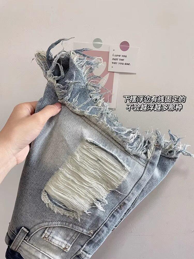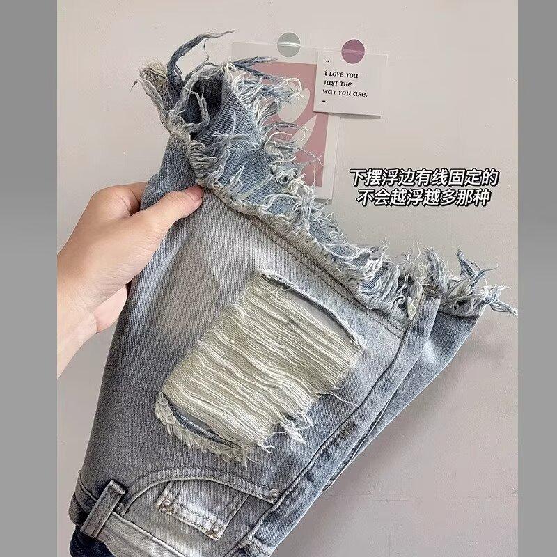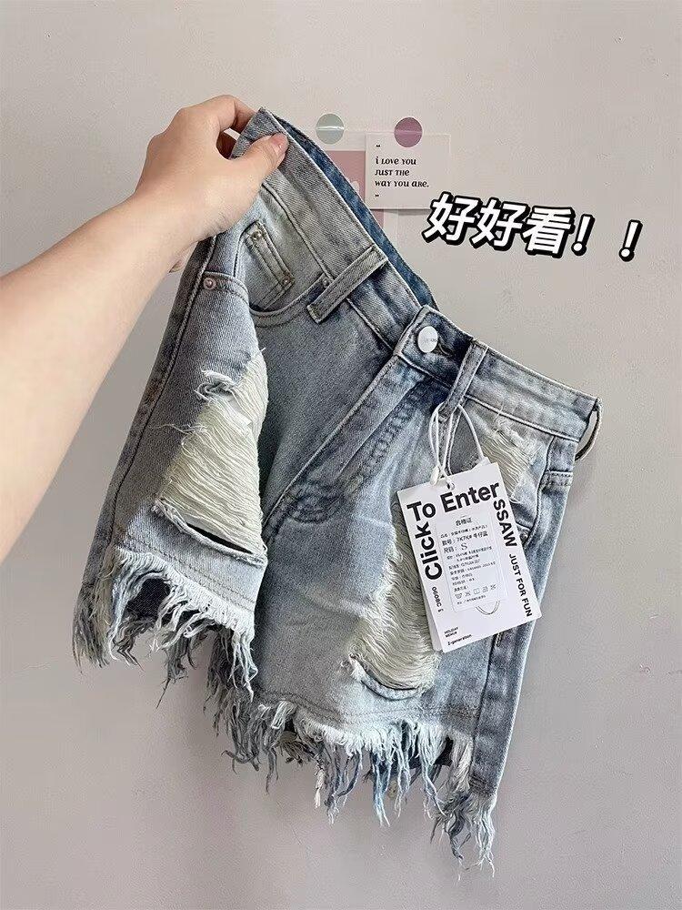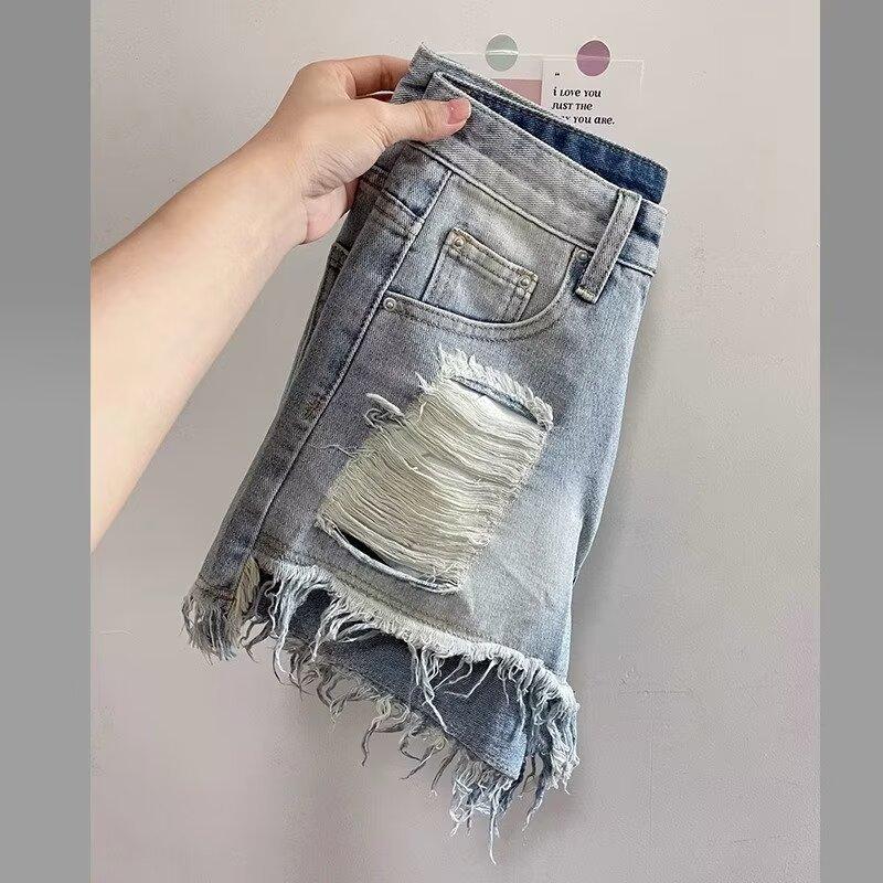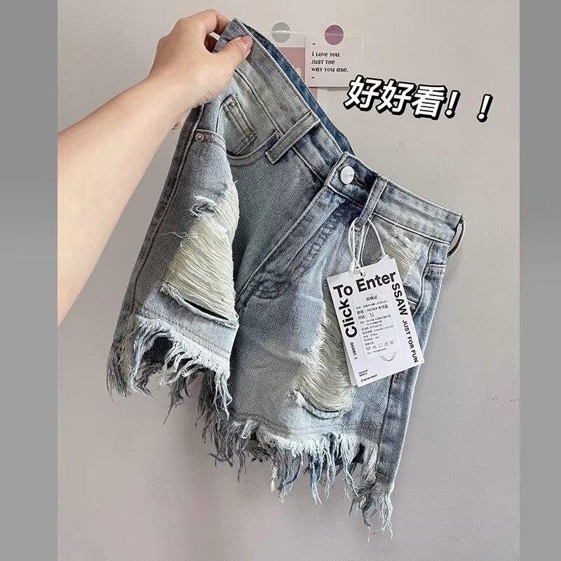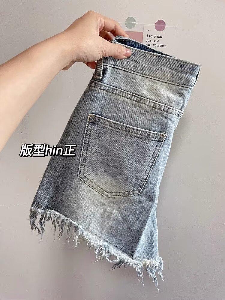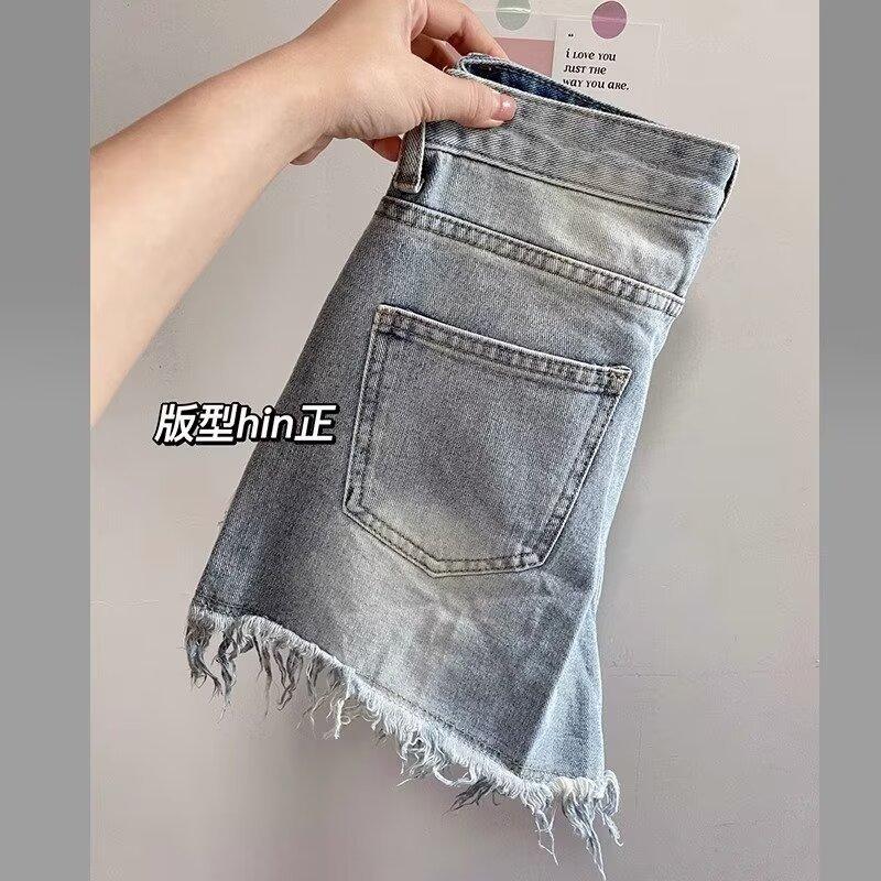 Shorts de Mezclilla Retro Americanos Desgastados 2024 para Mujer Verano Cintura Alta Shorts de Chica Caliente
