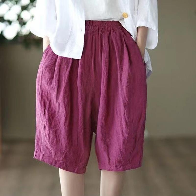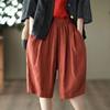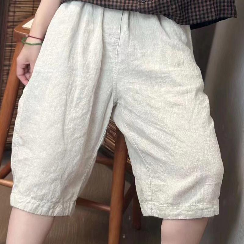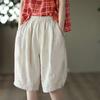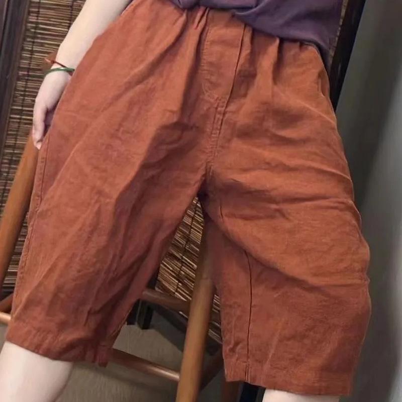 Shorts de Algodón Lino para Mujer Verano Nuevo Casual Color Sólido Cintura Alta Estilo Coreano Color Sólido Pantalones de Largo Medio Cintura Elástica Pierna Ancha