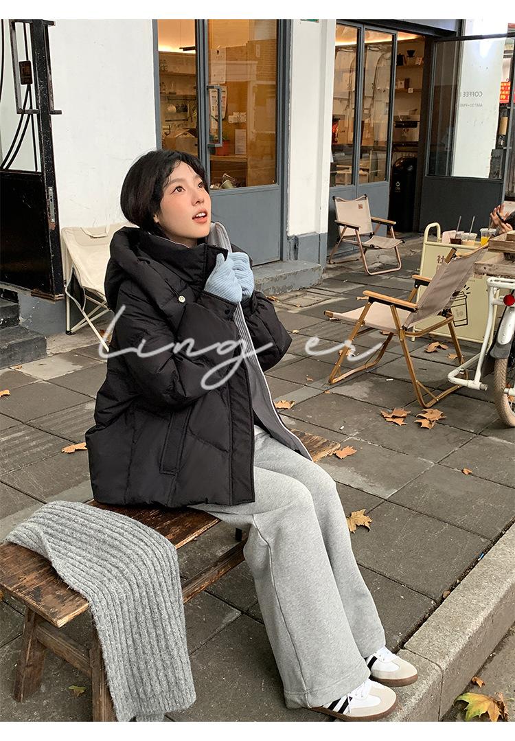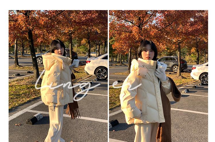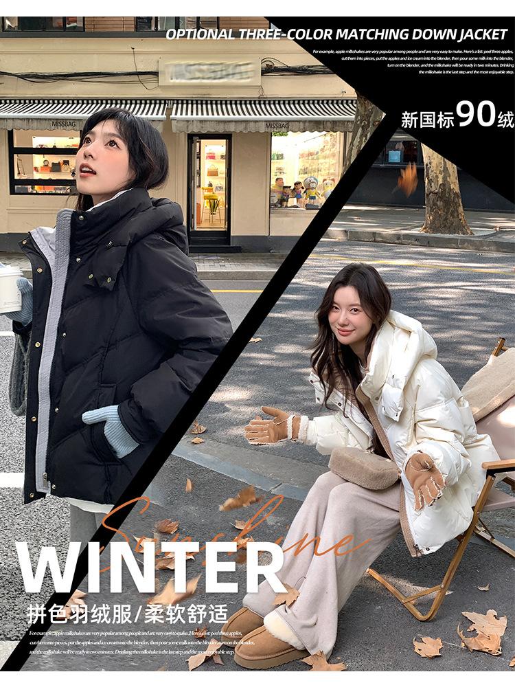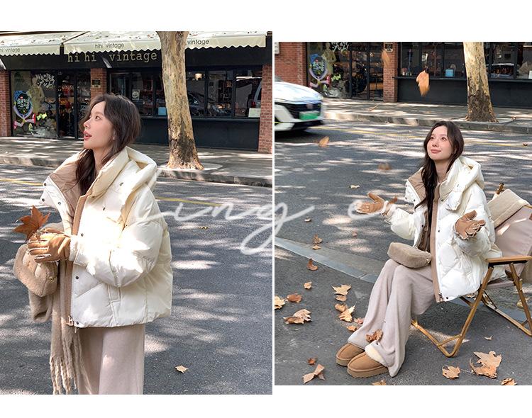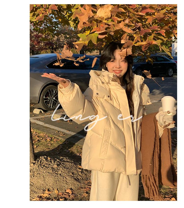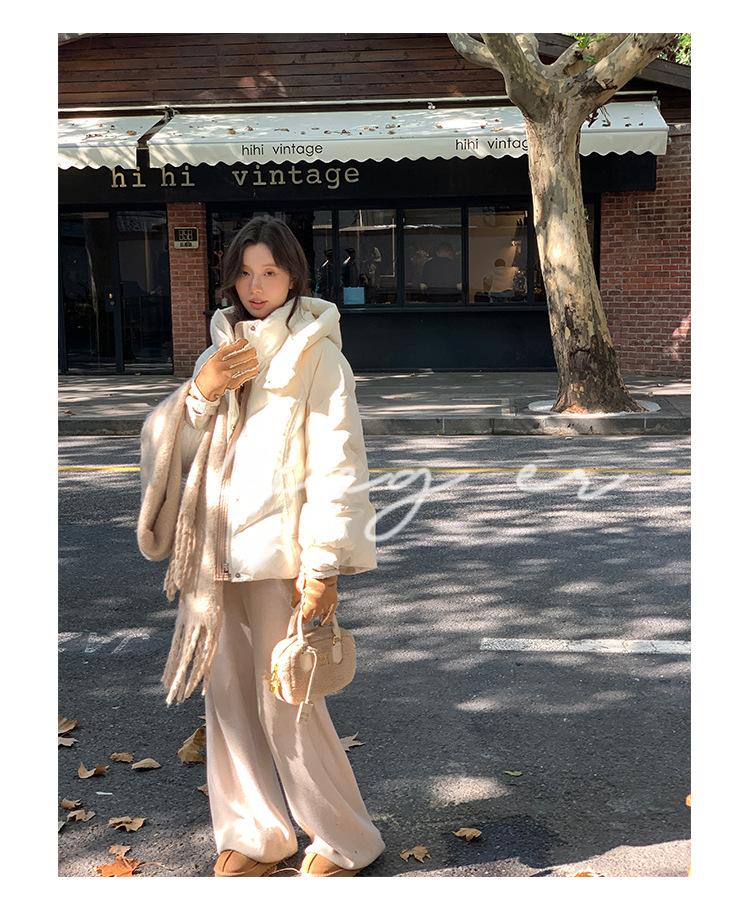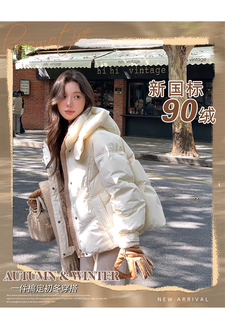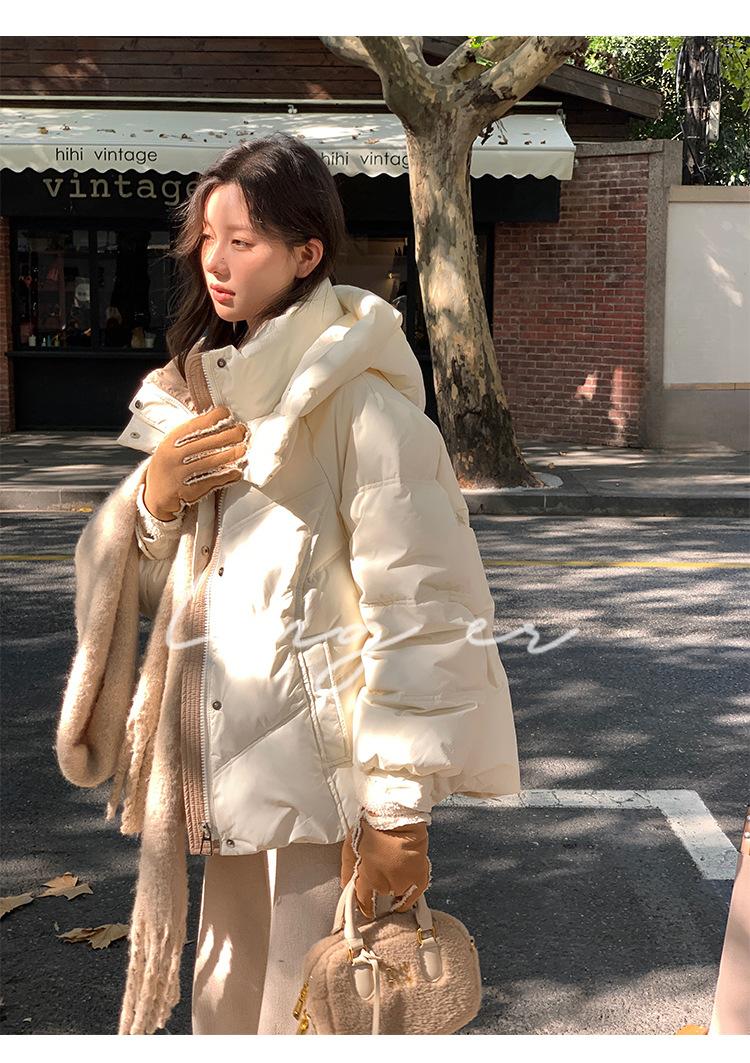 Chamarra de Plumón Blanca para Mujer Invierno 2024 Nueva Corta Pequeña Gruesa Moda de Alta Gama Estilo Occidental con Capucha