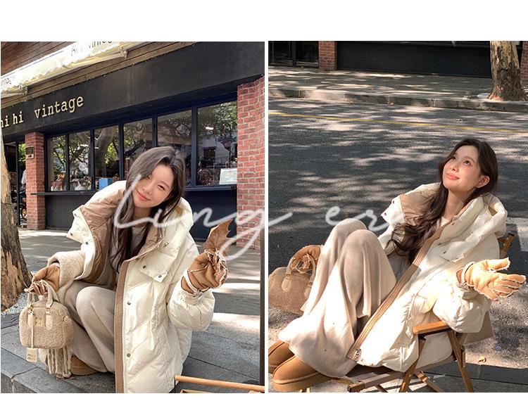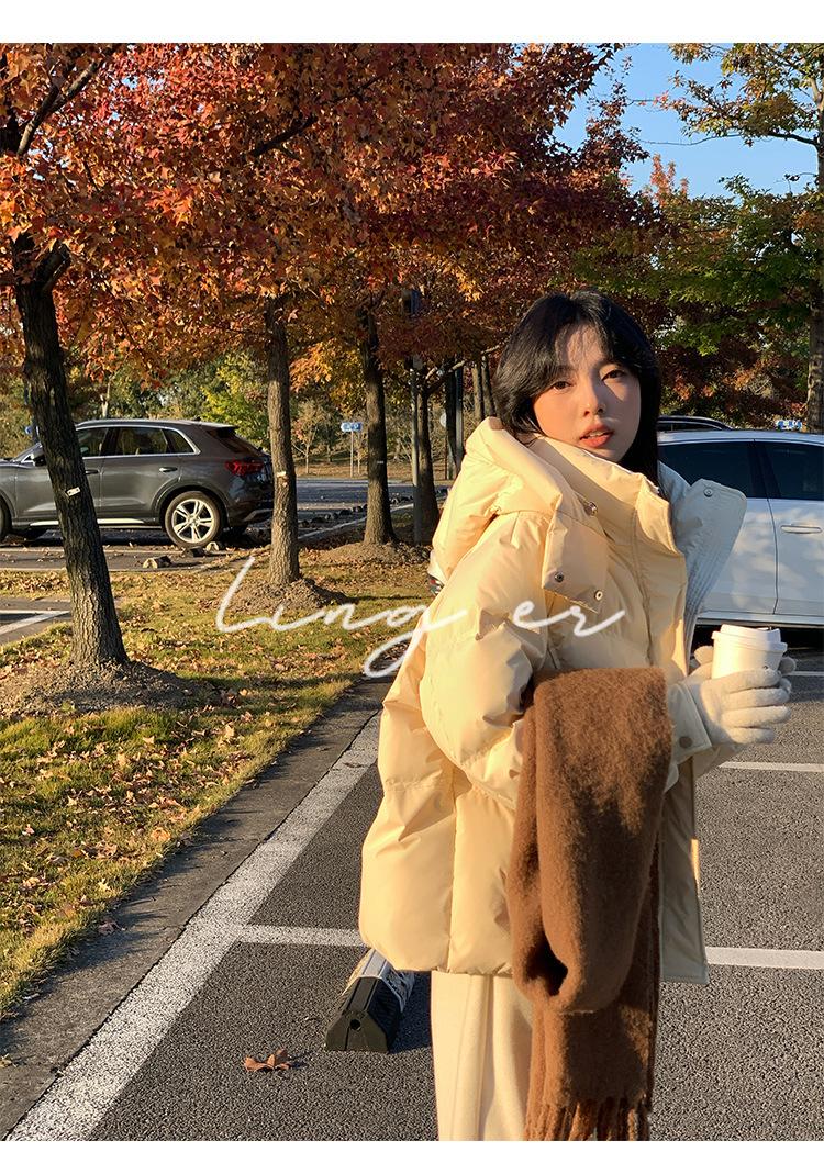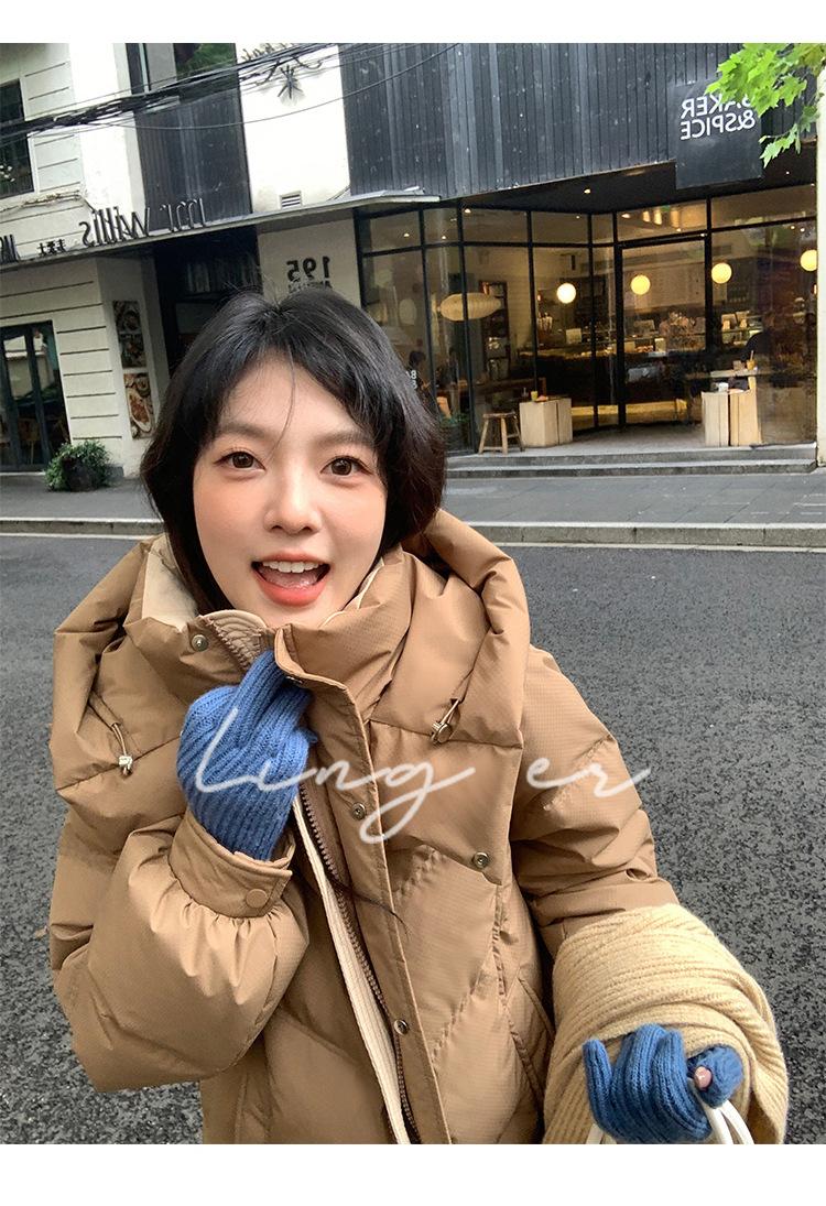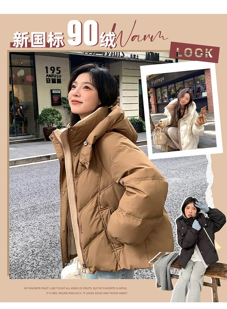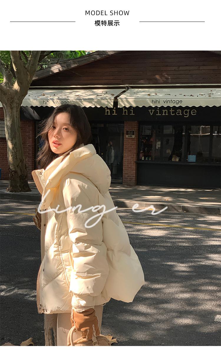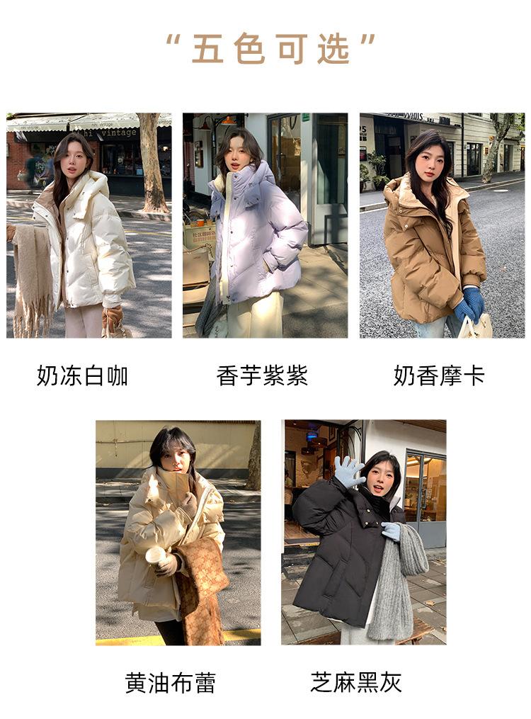 Chamarra de Plumón Blanca para Mujer Invierno 2024 Nueva Corta Pequeña Gruesa Moda de Alta Gama Estilo Occidental con Capucha