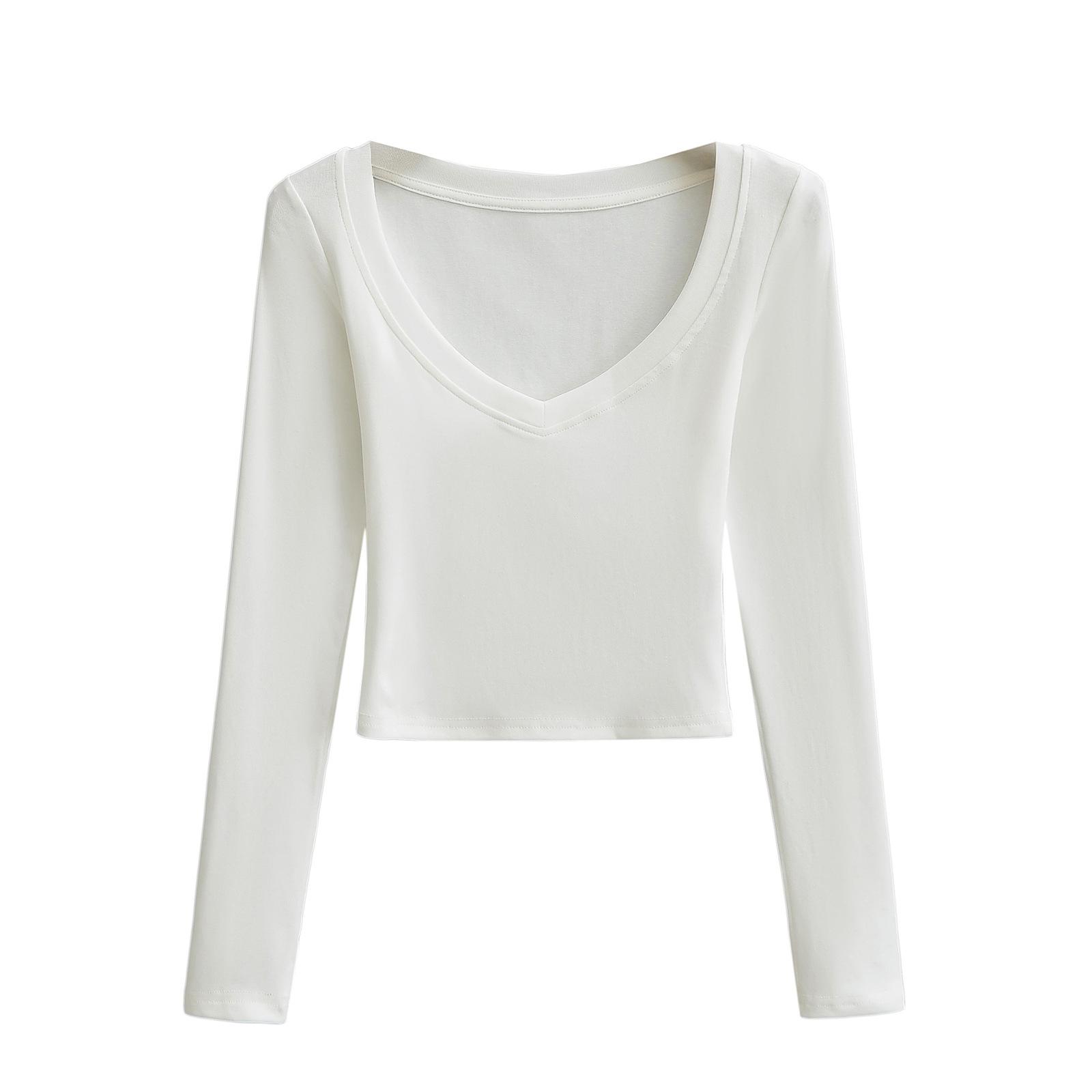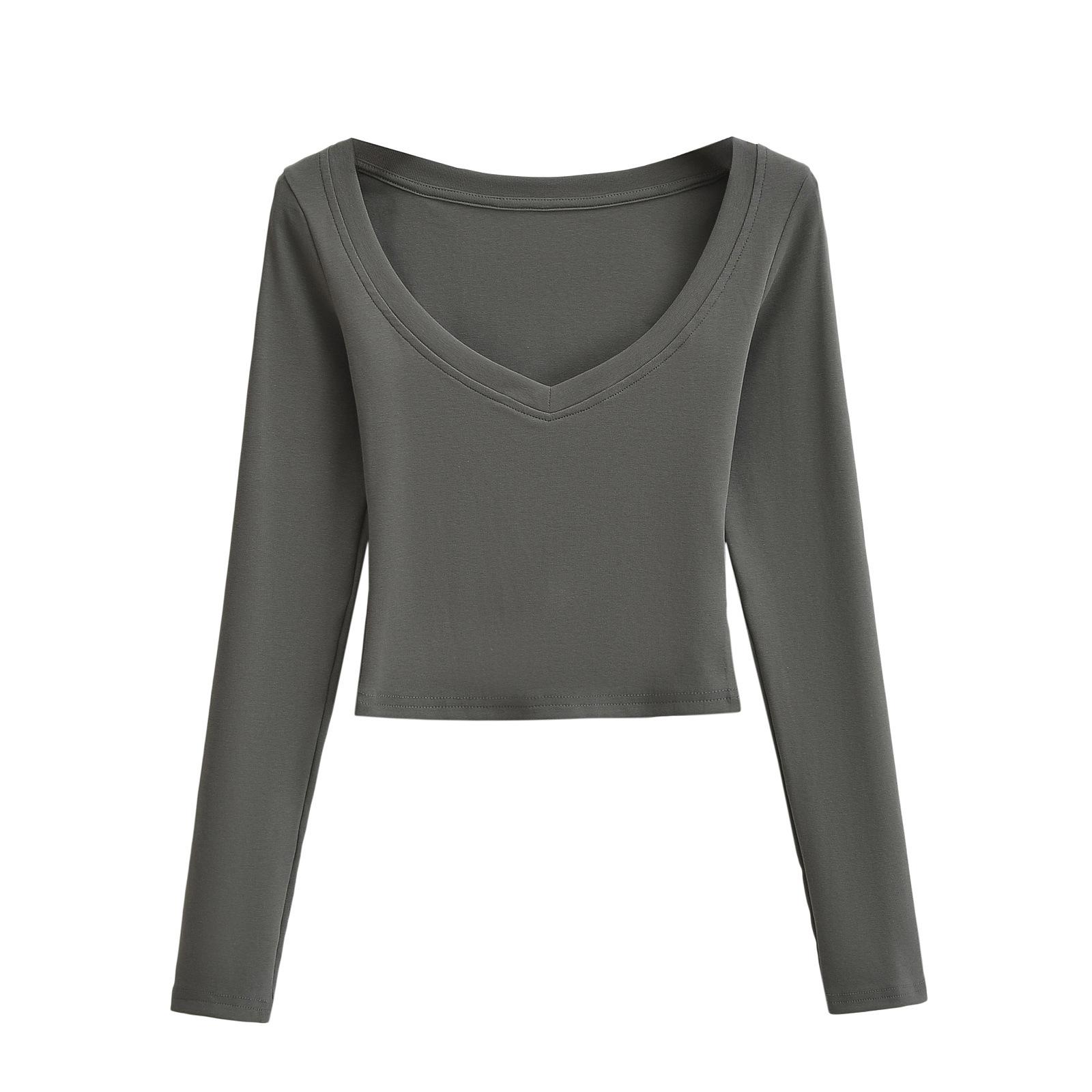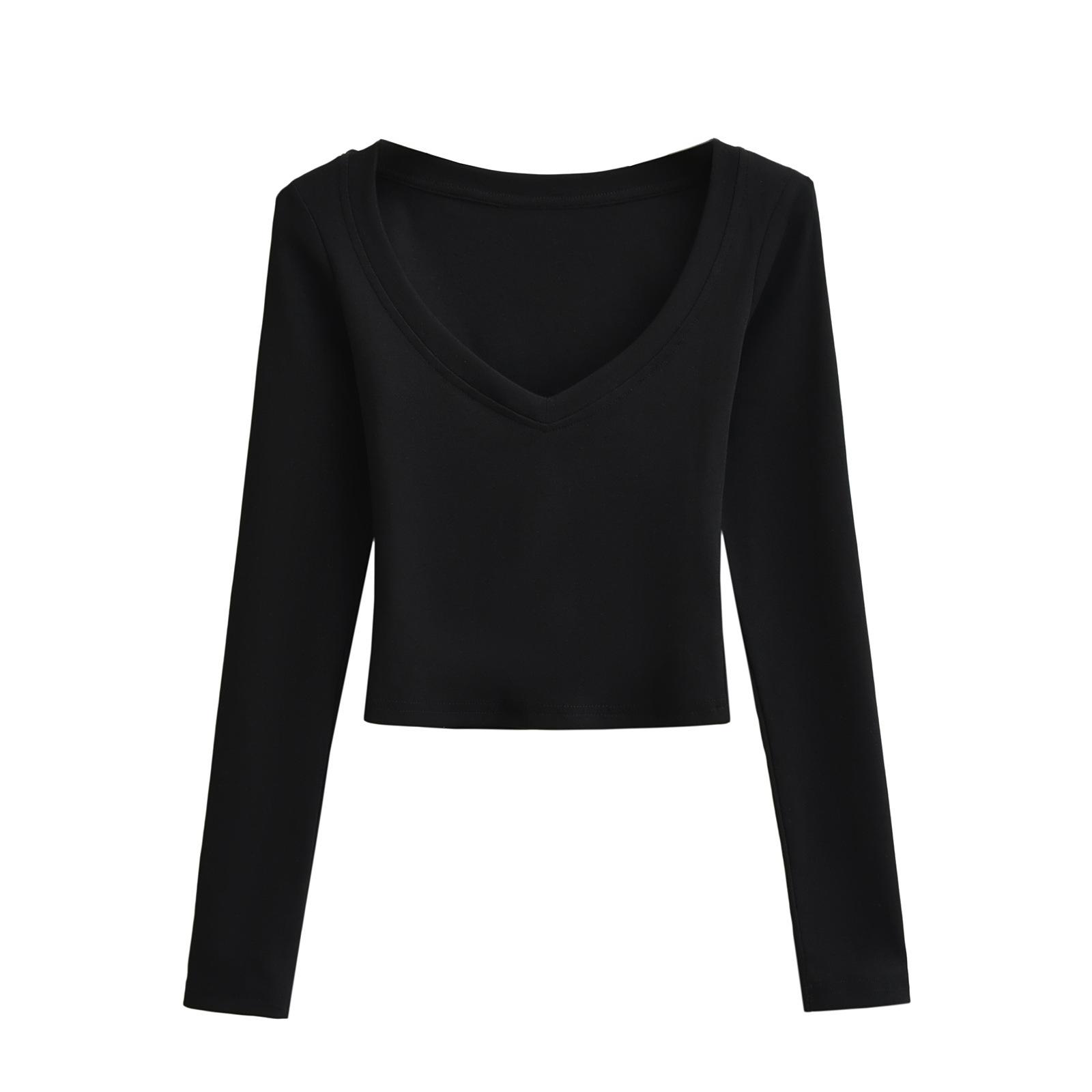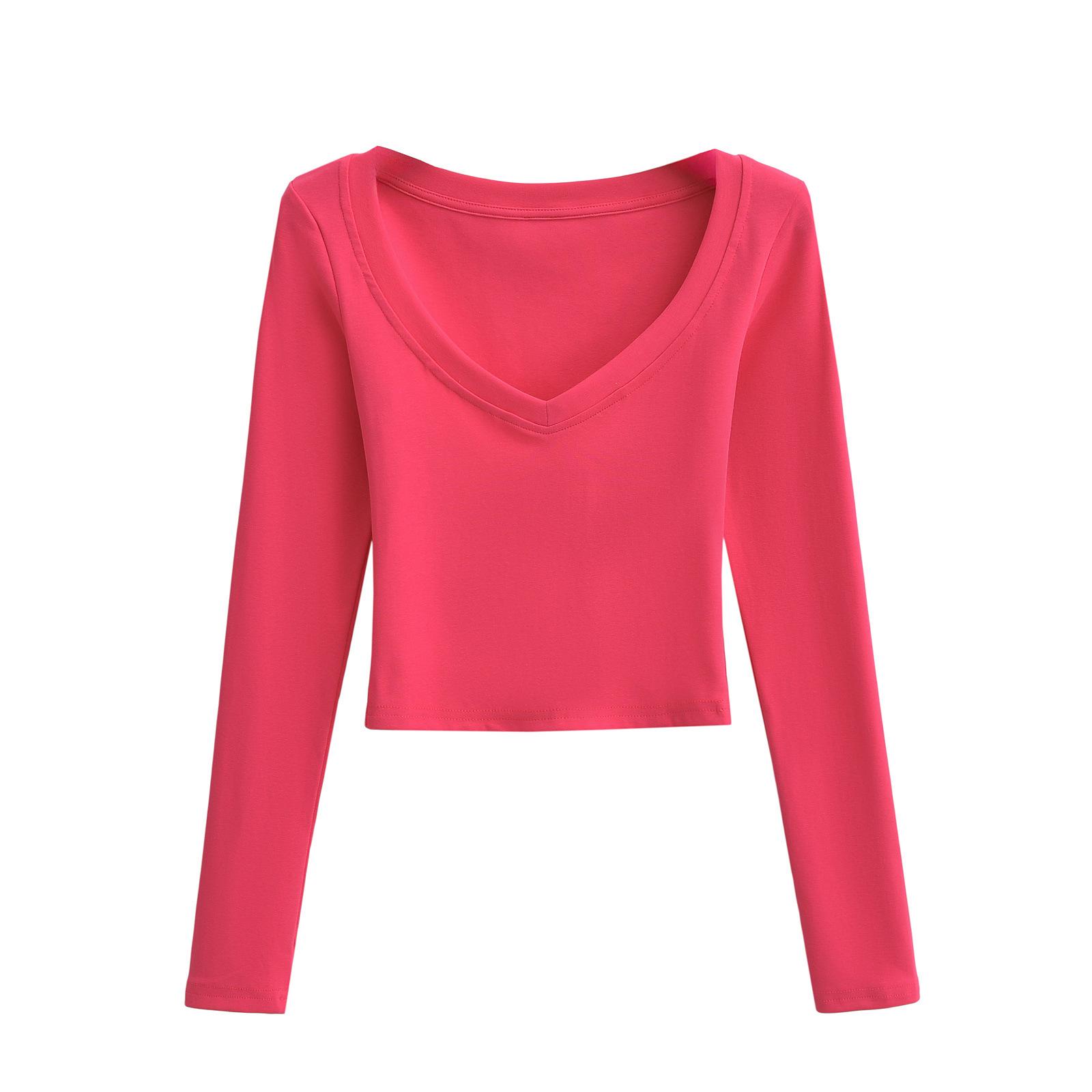Camiseta de manga larga sencilla de color liso con escote en V profundo y corte entallado para mujer de Spice Girls, otoño de 2024