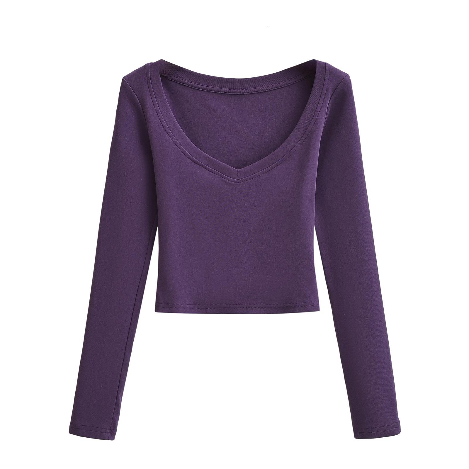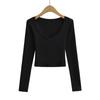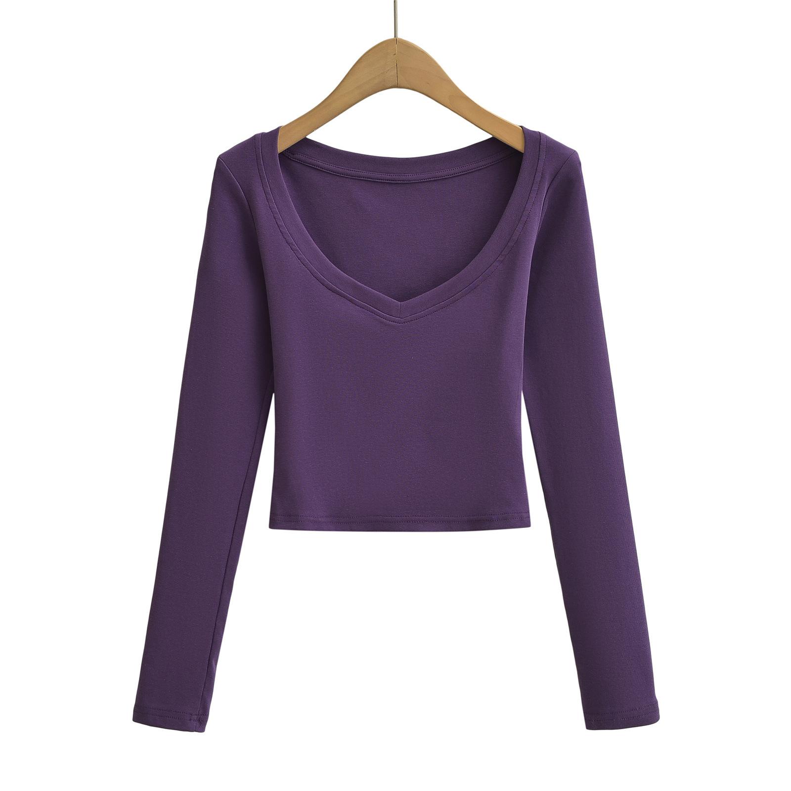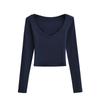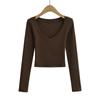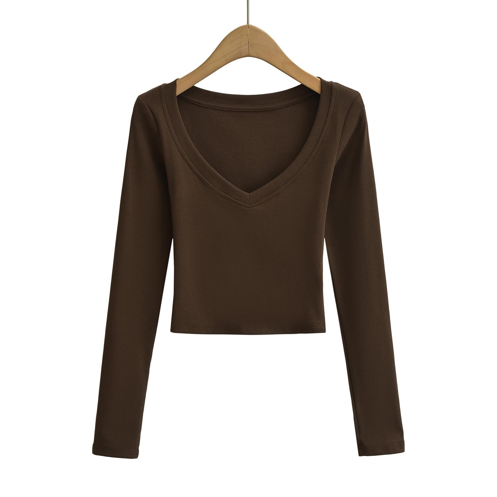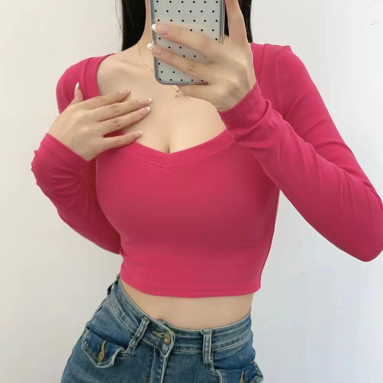 Camiseta de manga larga sencilla de color liso con escote en V profundo y corte entallado para mujer de Spice Girls, otoño de 2024