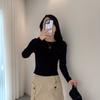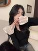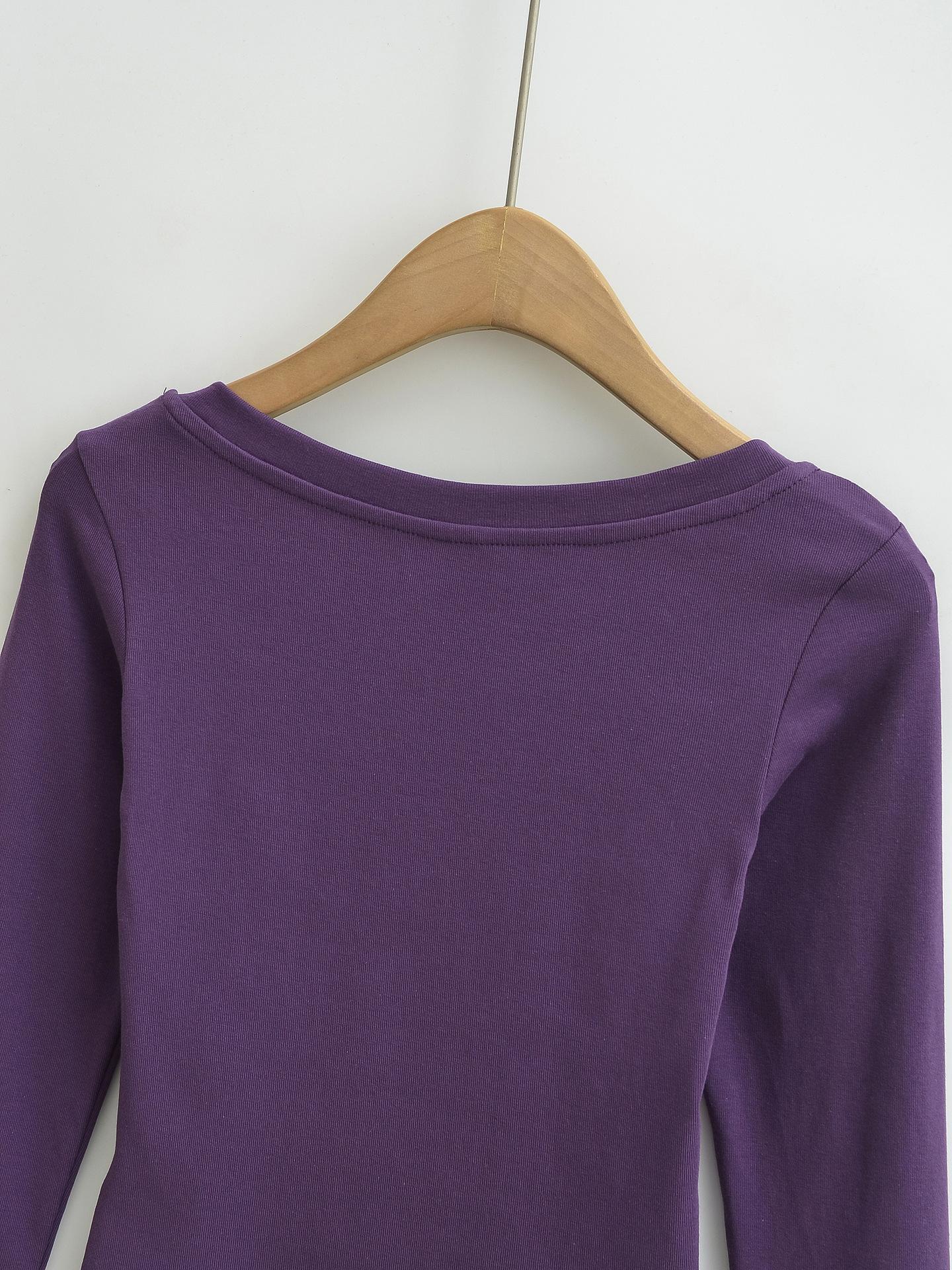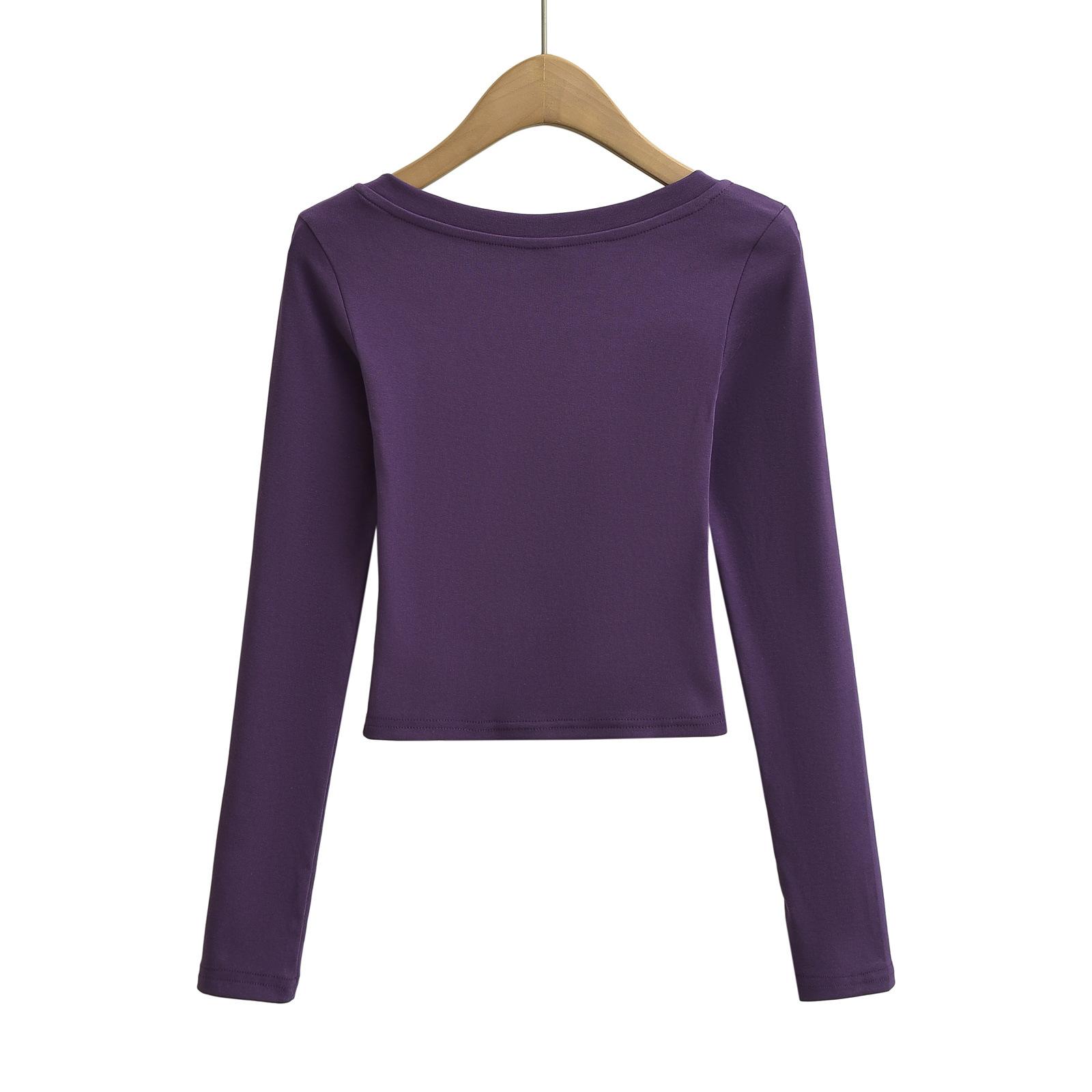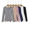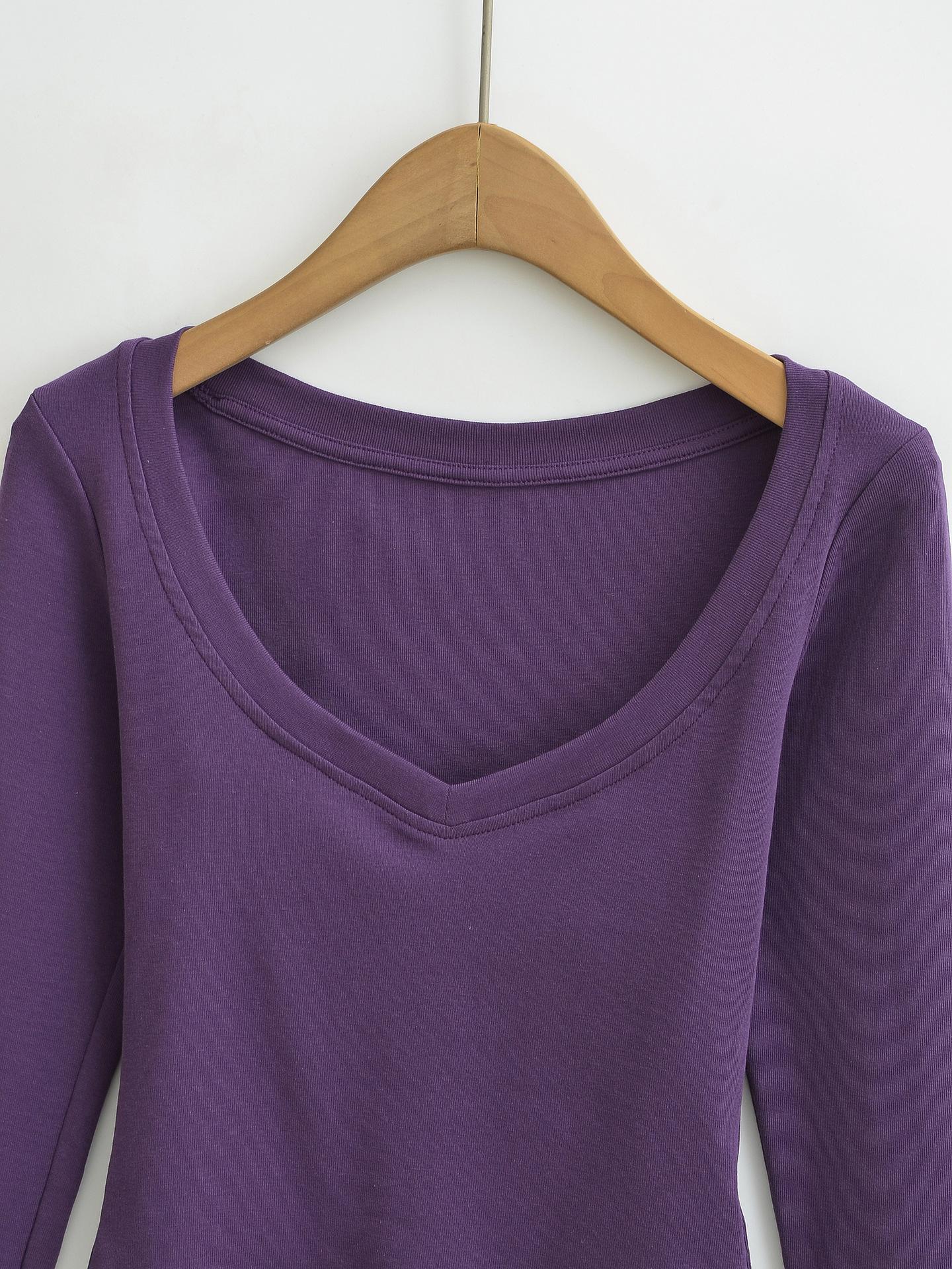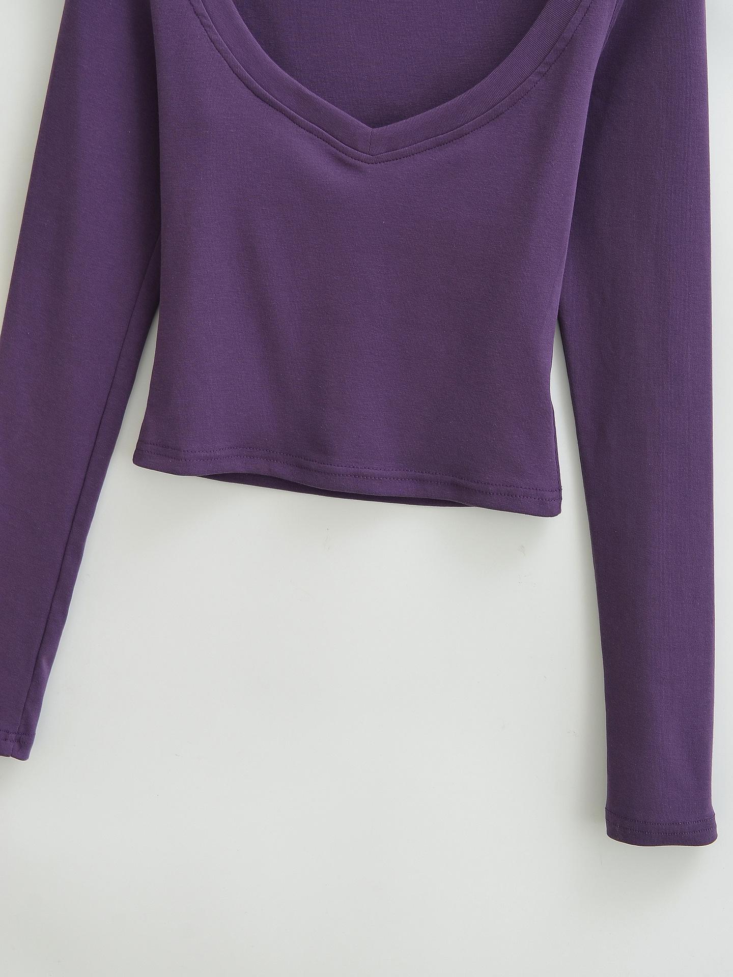 Camiseta de manga larga sencilla de color liso con escote en V profundo y corte entallado para mujer de Spice Girls, otoño de 2024