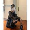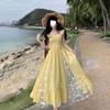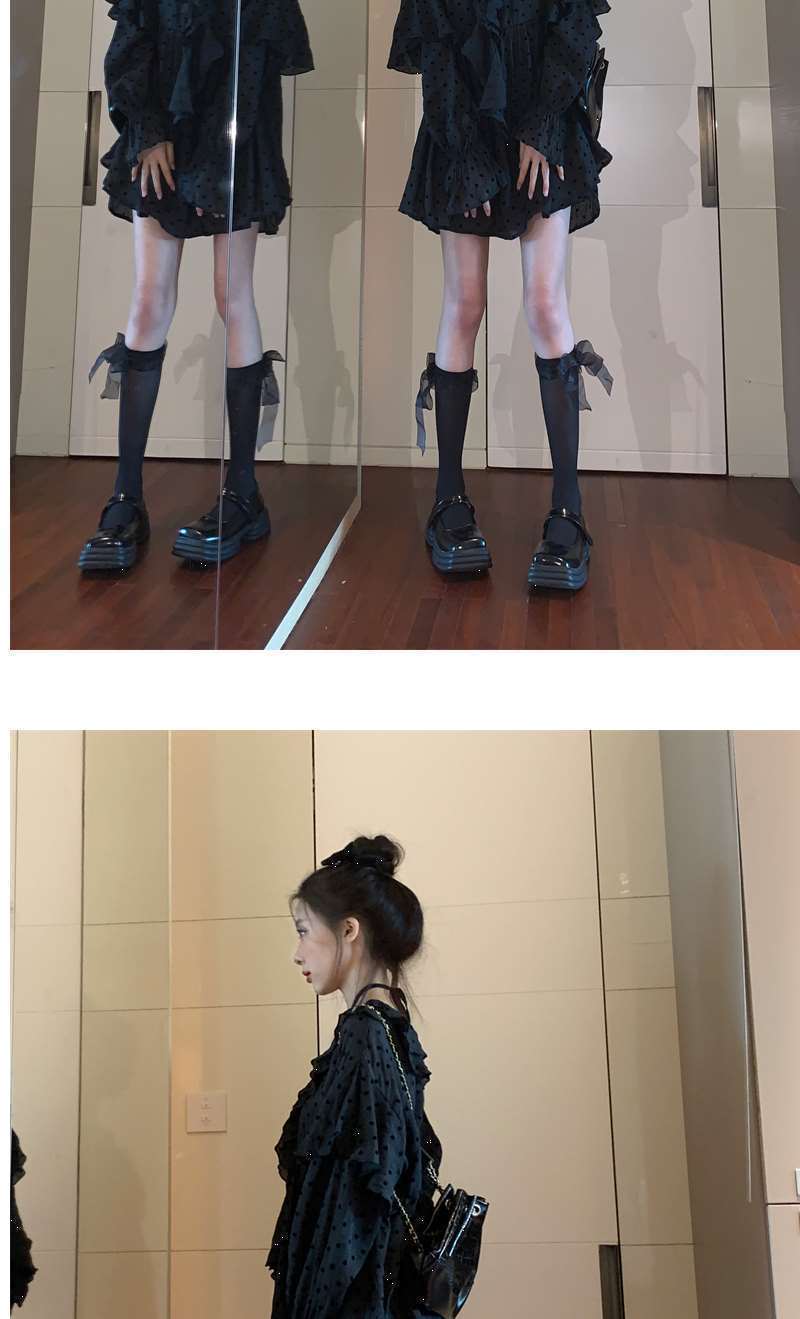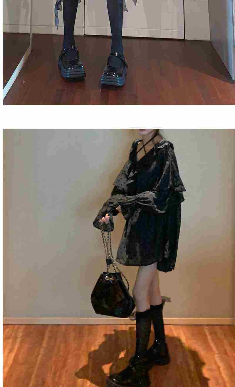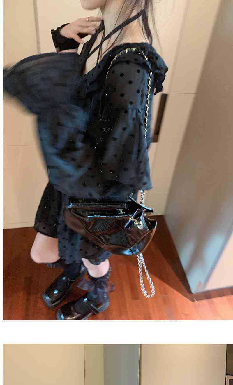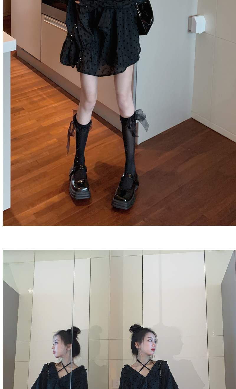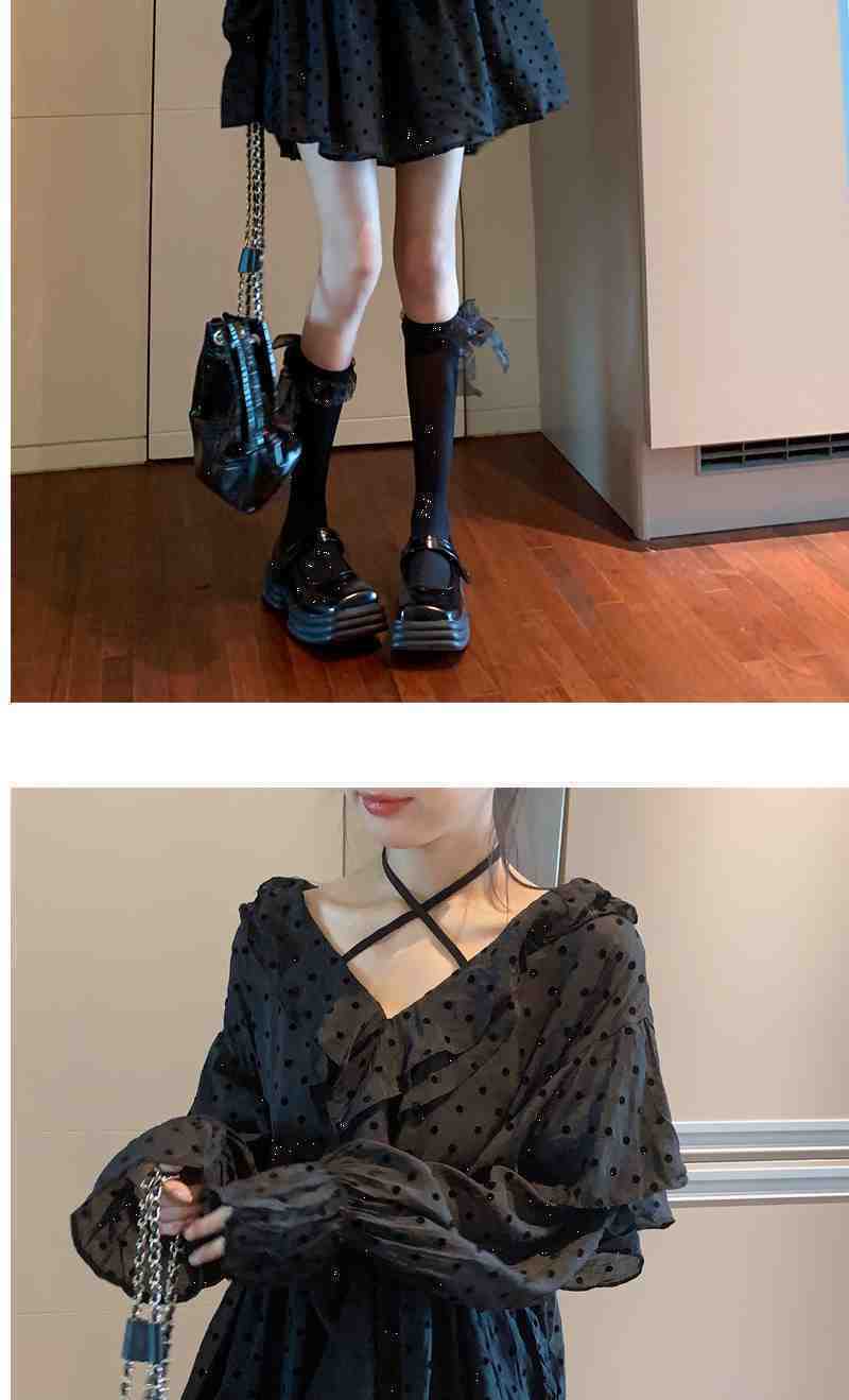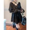 Diseño de cuello en V estilo francés pollae falda pequeña negra con volantes vestido de primavera nuevo dulce y picante cintura manga larga para mujer