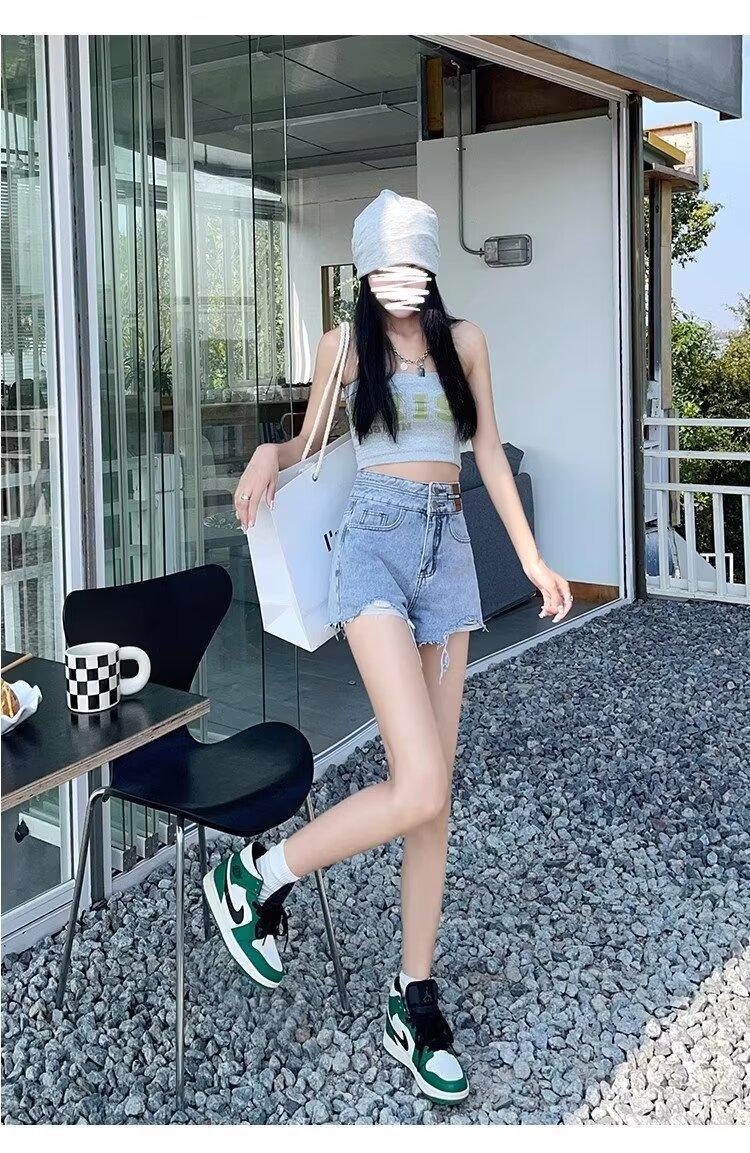 Pantalones vaqueros de corte A para mujer, novedad de verano 2024, diseño de chica sexy, pantalones cortos con cordón ajustable