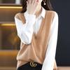 Suéter Tejido de Lana Pura Otoño e Invierno Nuevo Estilo Chaleco Tejido Cuello en V Sin Mangas Suelto Suéter Apilado Ropa Exterior Ropa Exterior Ropa Exterior Top