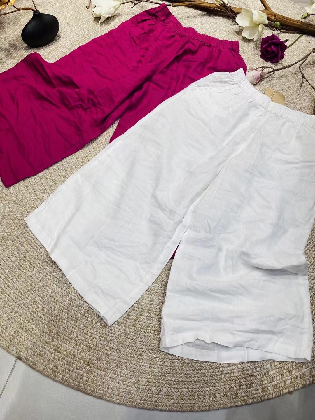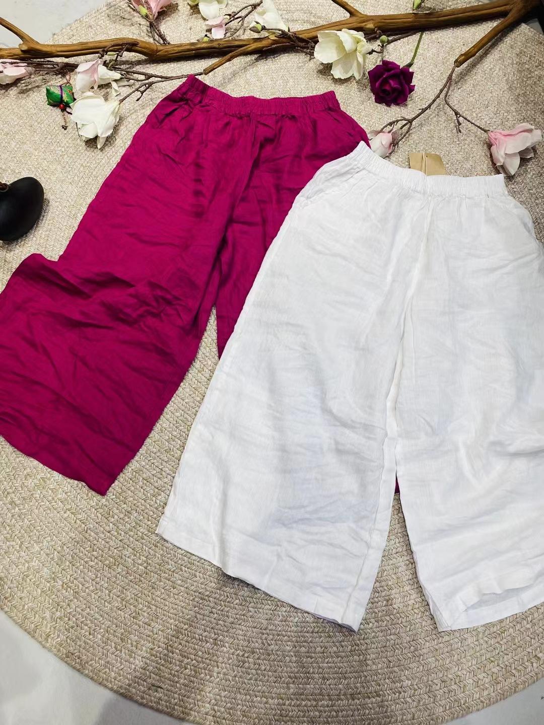 Pantalones de lino de cintura alta, estilo artístico, con pierna ancha, holgados, cómodos y adelgazantes, novedad de verano de 2024.