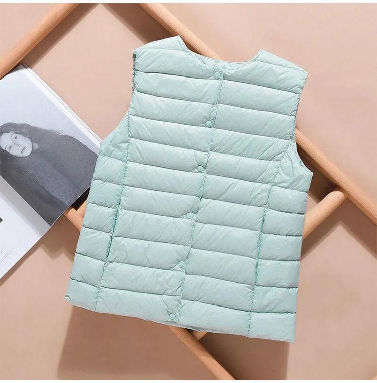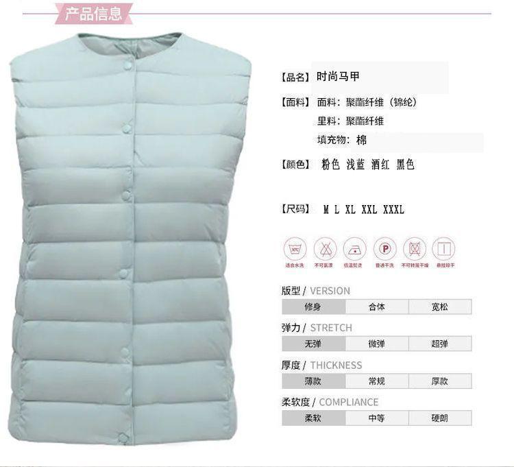 Chaleco Ligero de Algodón para Mujer Otoño e Invierno Corto 2024 Nueva Llegada Estilo Coreano Ajustado Moderno Cuello Redondo para Vestir Ropa de Mujer